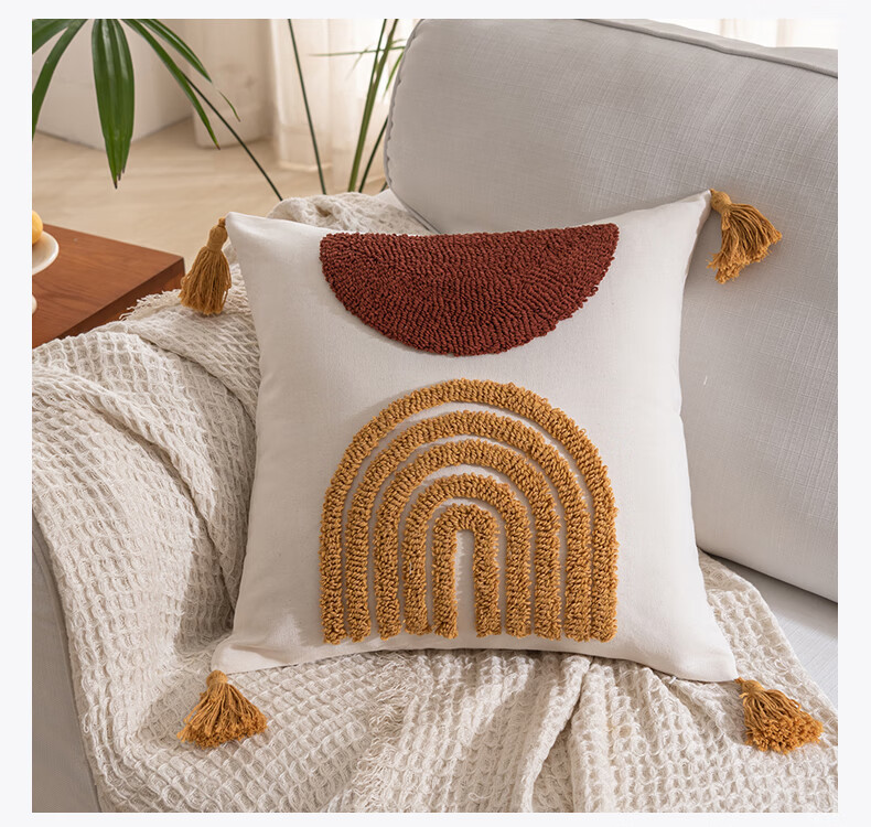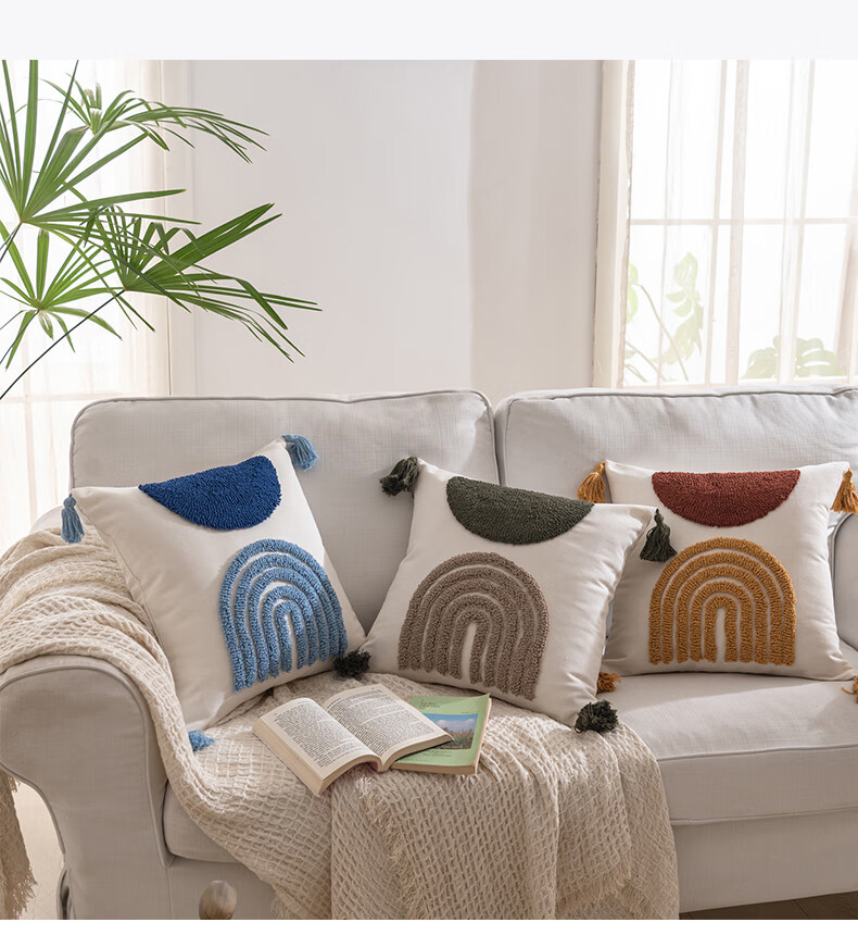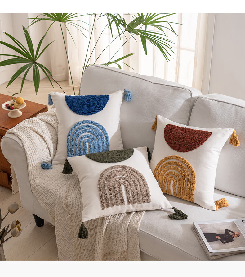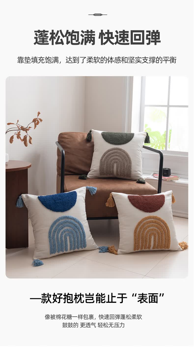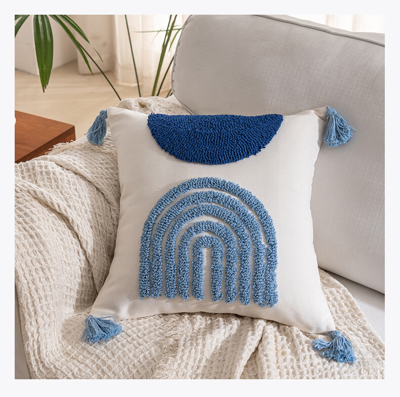 【精选厂家】北欧风绣花抱枕办公室沙发客厅腰枕靠背垫床头靠枕汽 蓝【北欧绣花流苏抱枕】 45x45cm【单抱枕套】