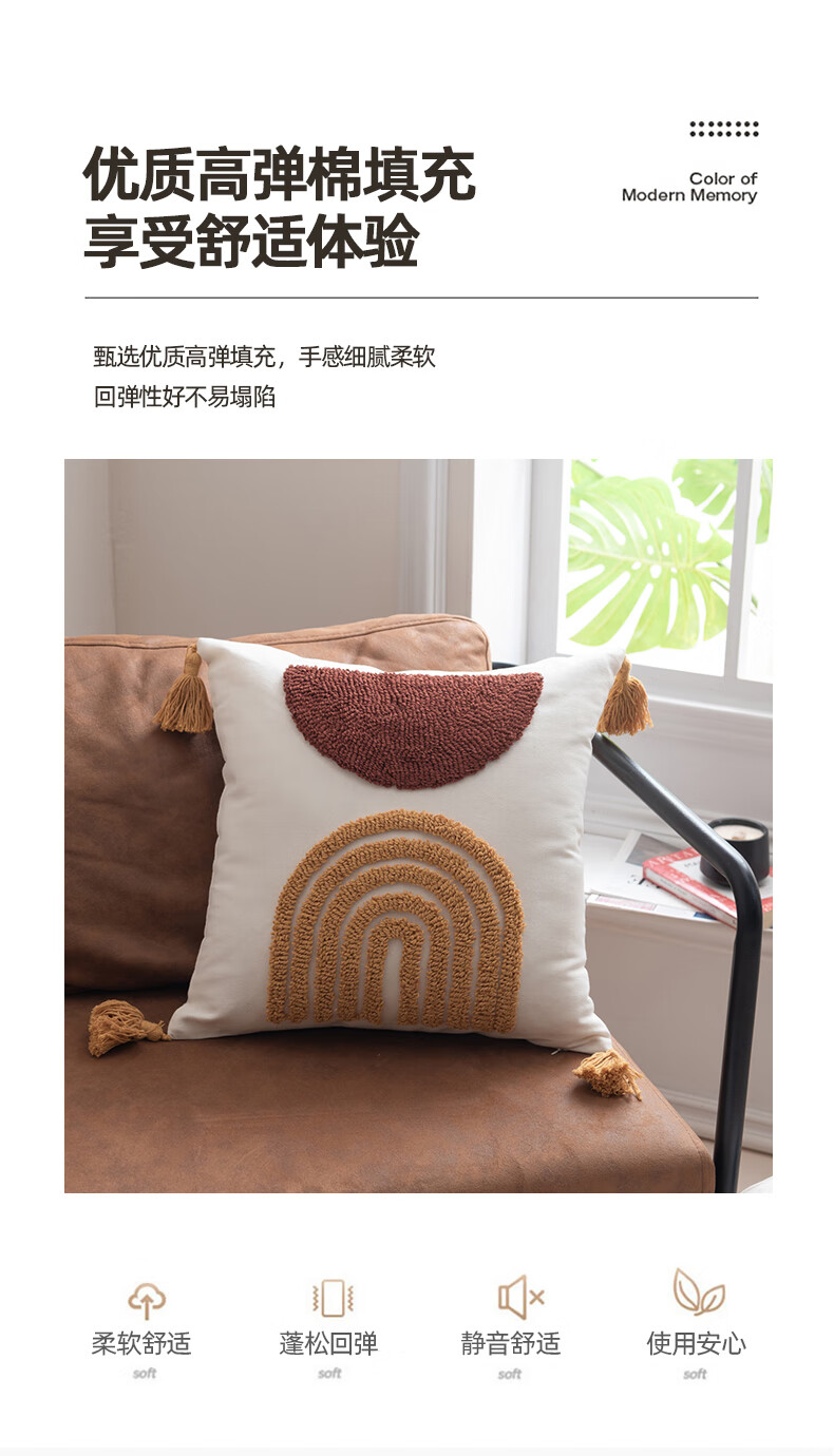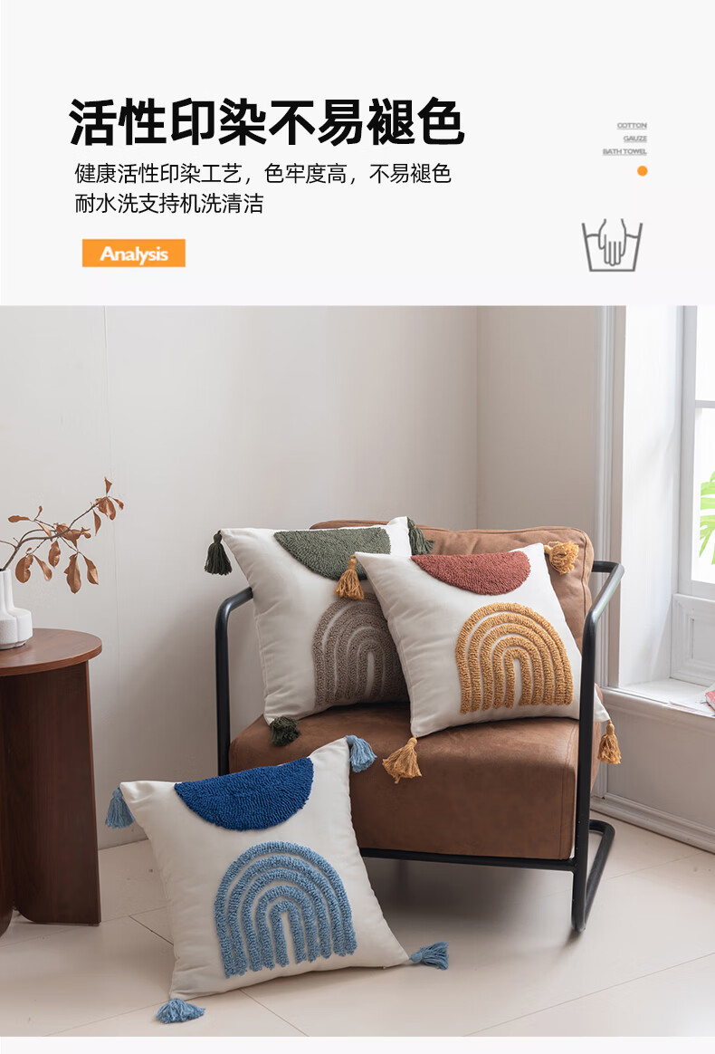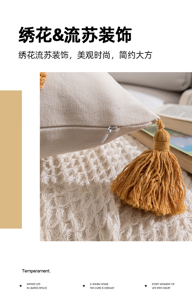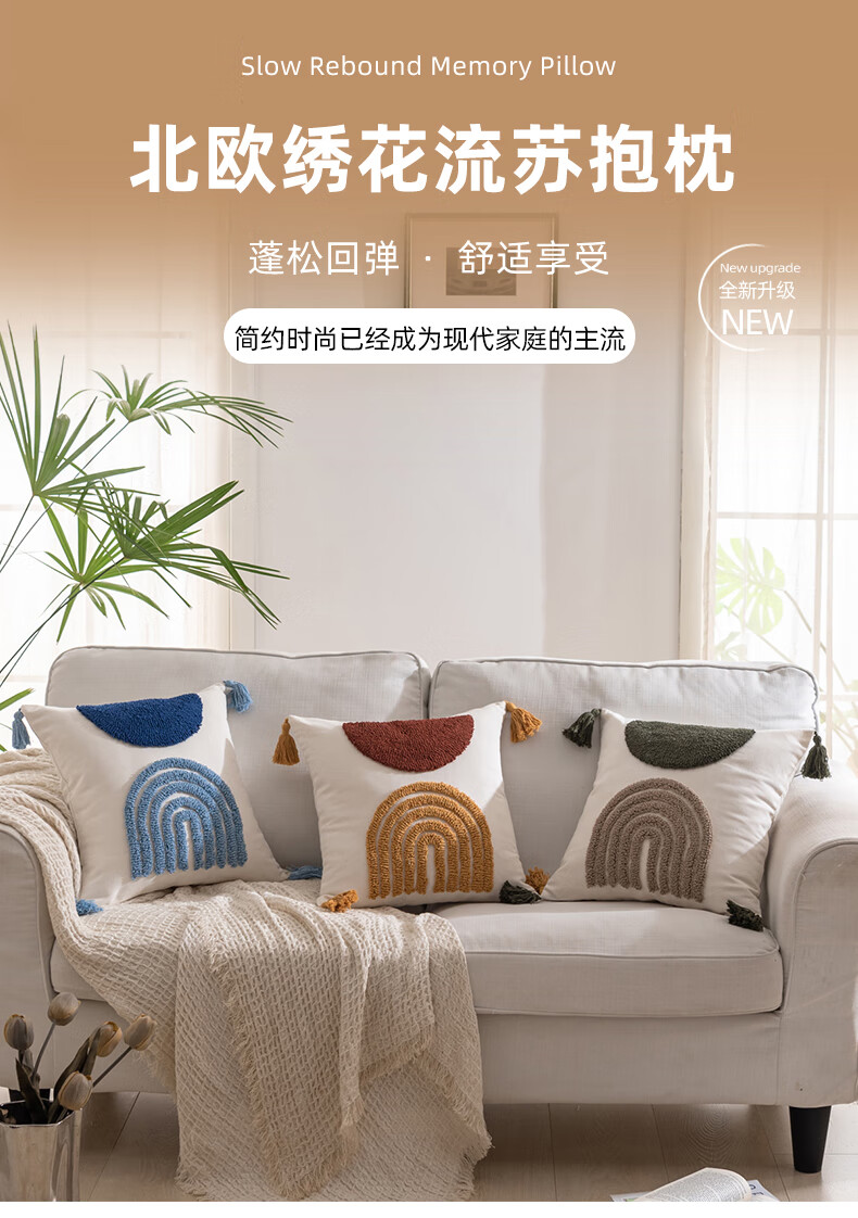 【精选厂家】北欧风绣花抱枕办公室沙发客厅腰枕靠背垫床头靠枕汽 蓝【北欧绣花流苏抱枕】 45x45cm【单抱枕套】