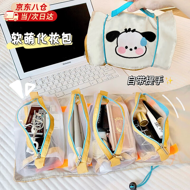 铂呐苓洗漱收纳包化妆手提折叠包便携装护肤品外出旅行出差可爱大容量包 卡通狗化妆包【流汗狗】
