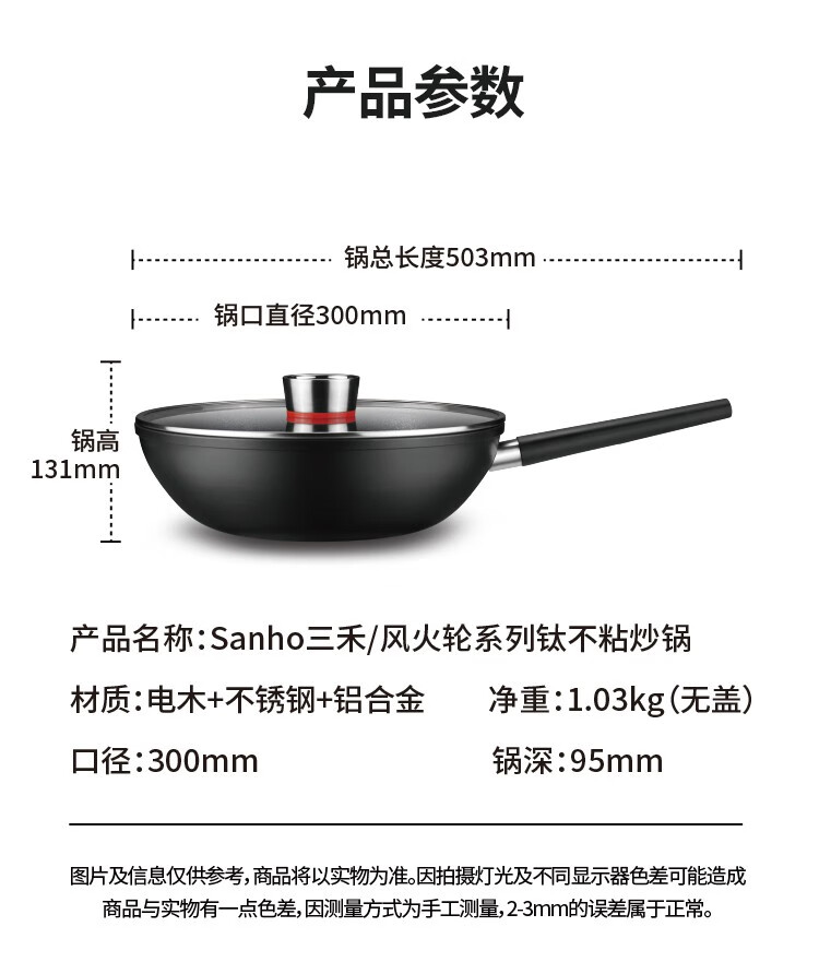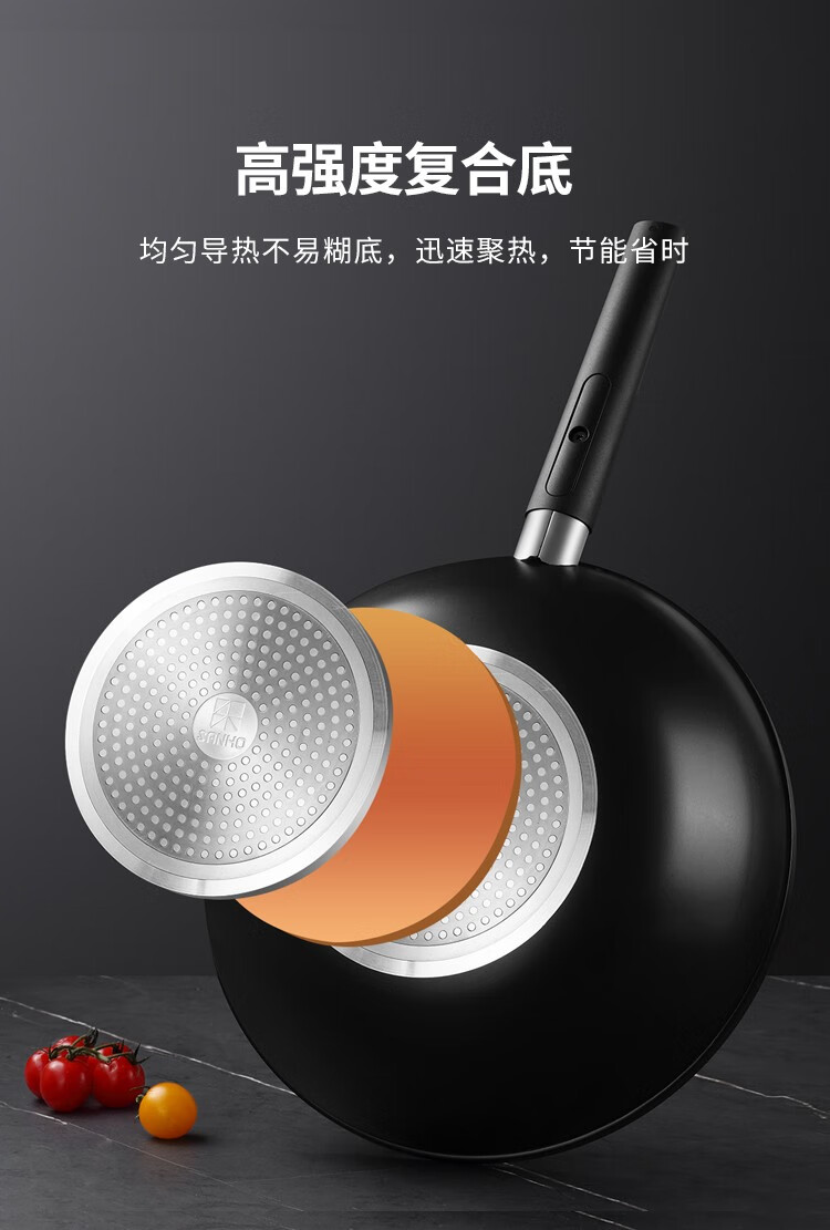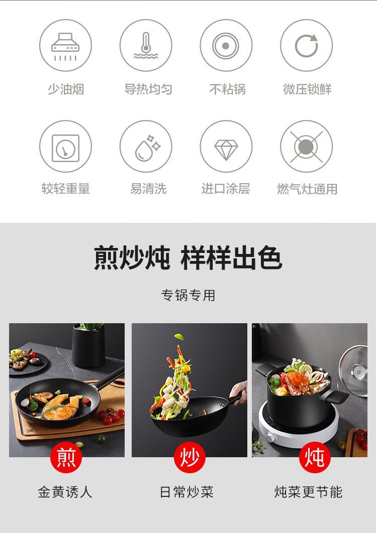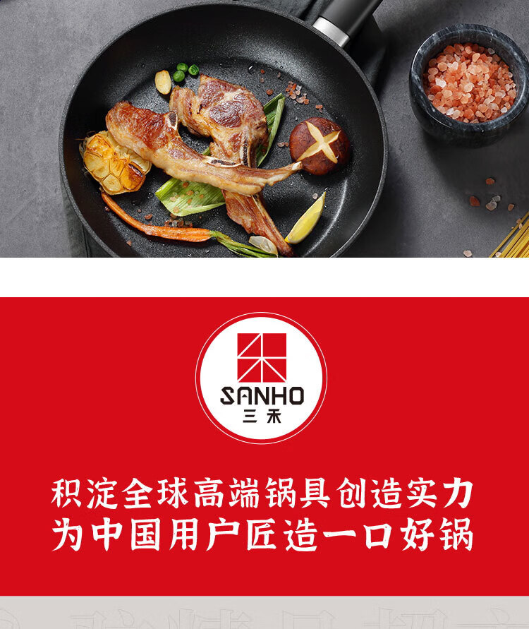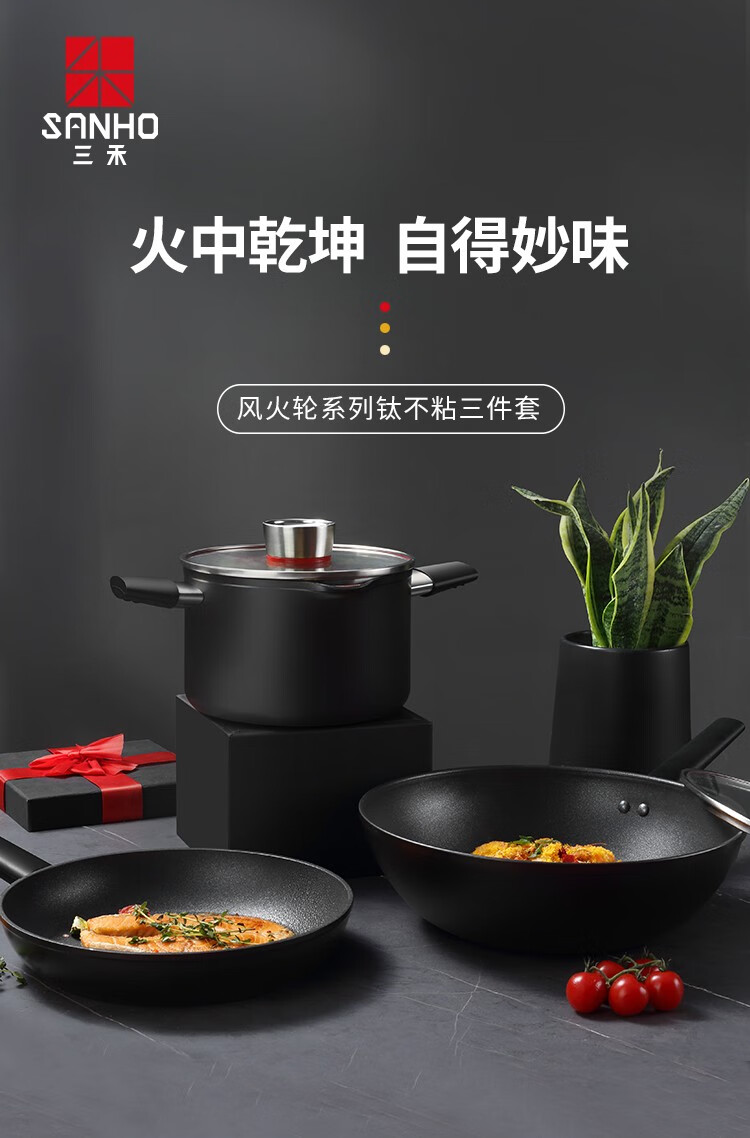 三禾风火轮系列炒锅炖锅煎锅钛不粘三件套进口抗菌涂层不粘锅 【钛不粘】风火轮三件套炒锅+煎锅+汤锅 30cm