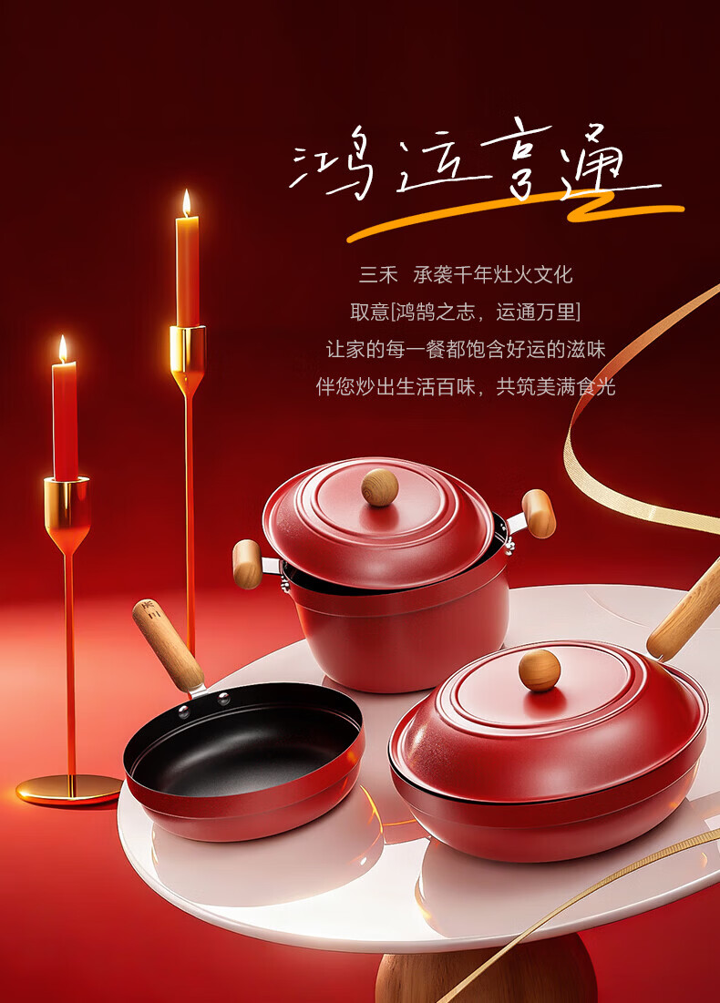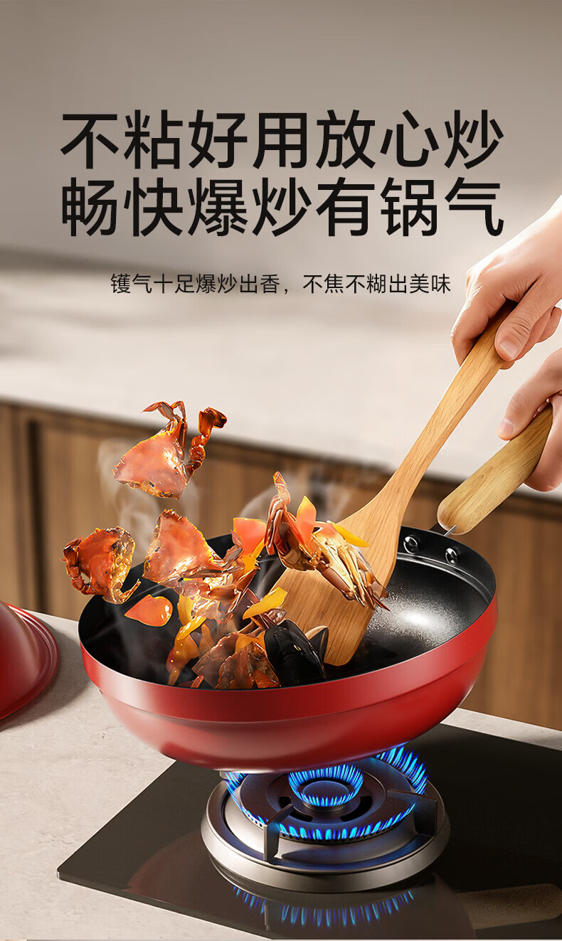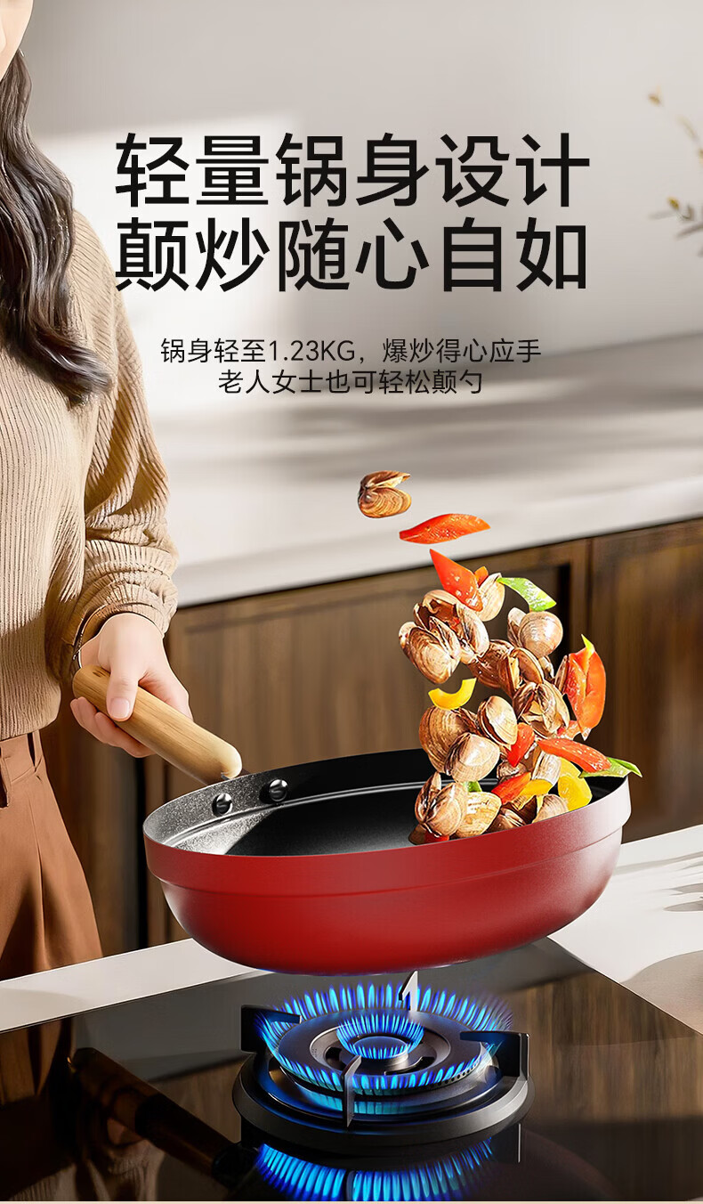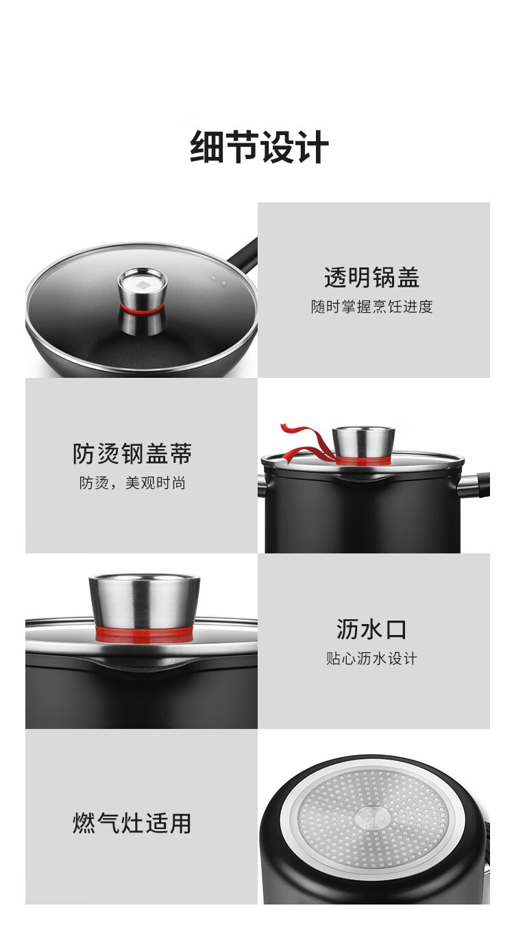 三禾风火轮系列炒锅炖锅煎锅钛不粘三件套进口抗菌涂层不粘锅 【钛不粘】风火轮三件套炒锅+煎锅+汤锅 30cm