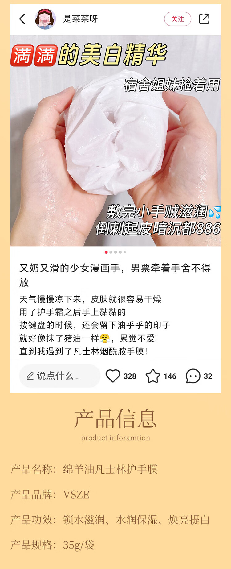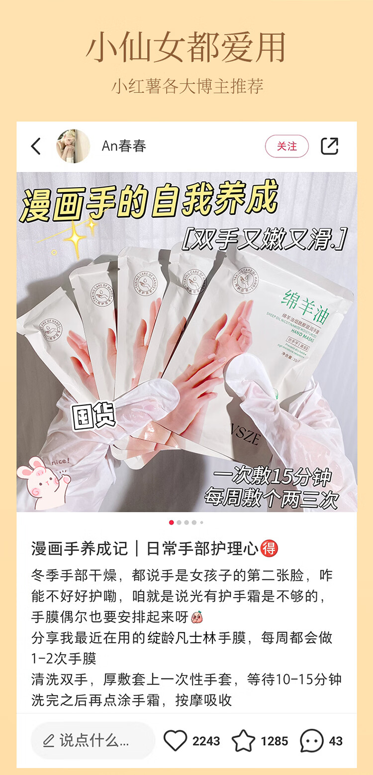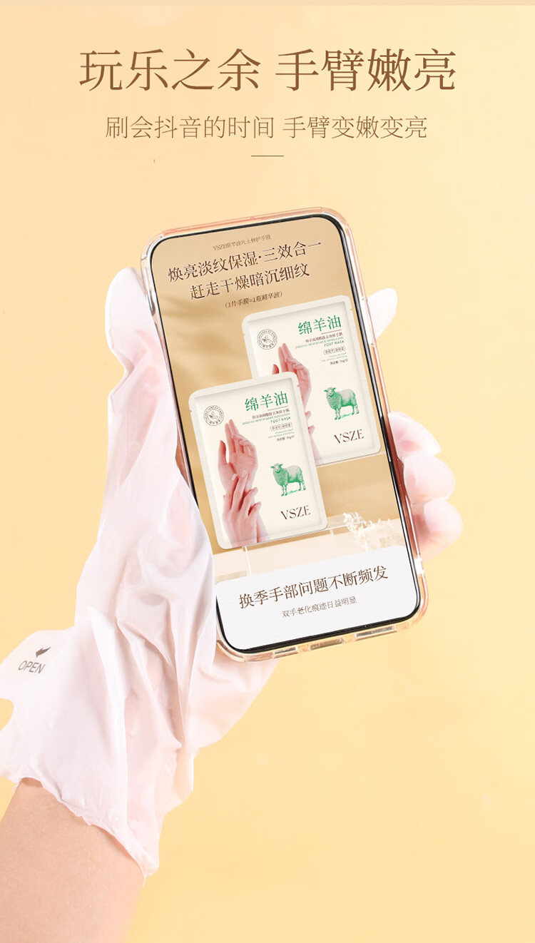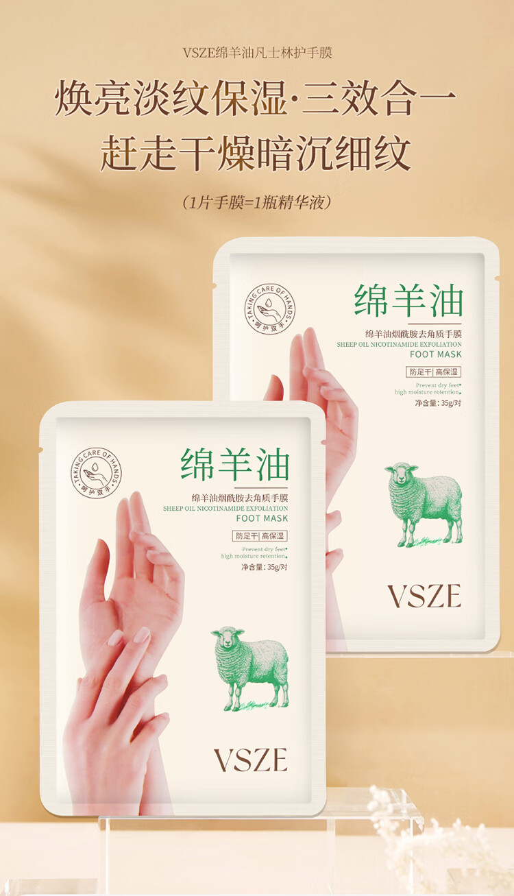 VSZE绵羊油烟酰胺嫩滑手部护理死皮粗糙干燥肌肤干裂居家学生女手膜 【滋养手部】绵羊油烟酰胺手膜*3片