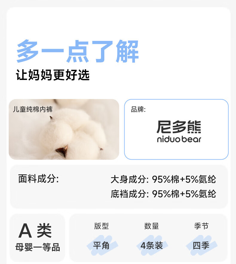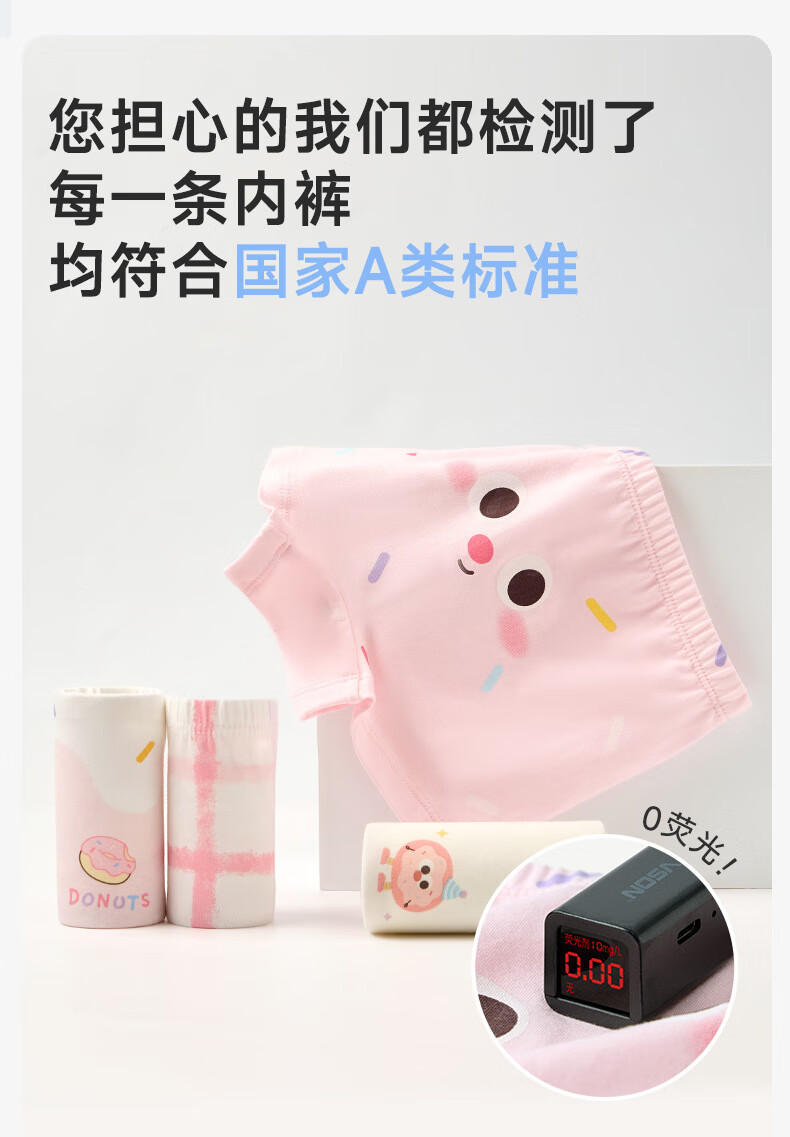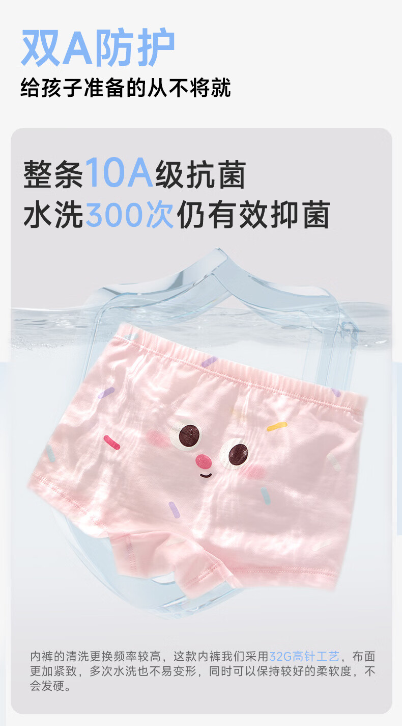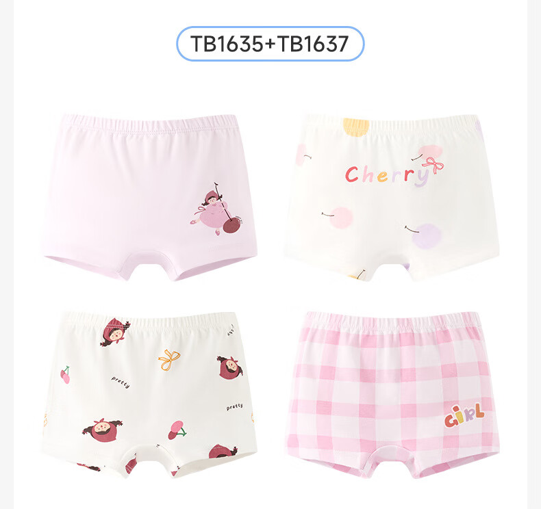 尼多熊儿童内裤女童纯棉宝宝四角裤平角短裤全棉中大童100%女孩不夹屁屁 樱桃女孩 【A类精梳棉 10A抗菌】 4条 150 (2XL) 【建议体重50-60斤】