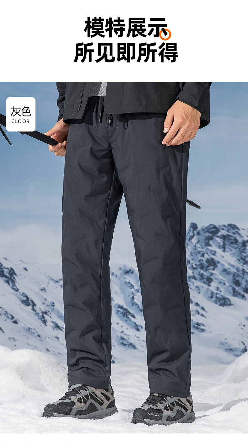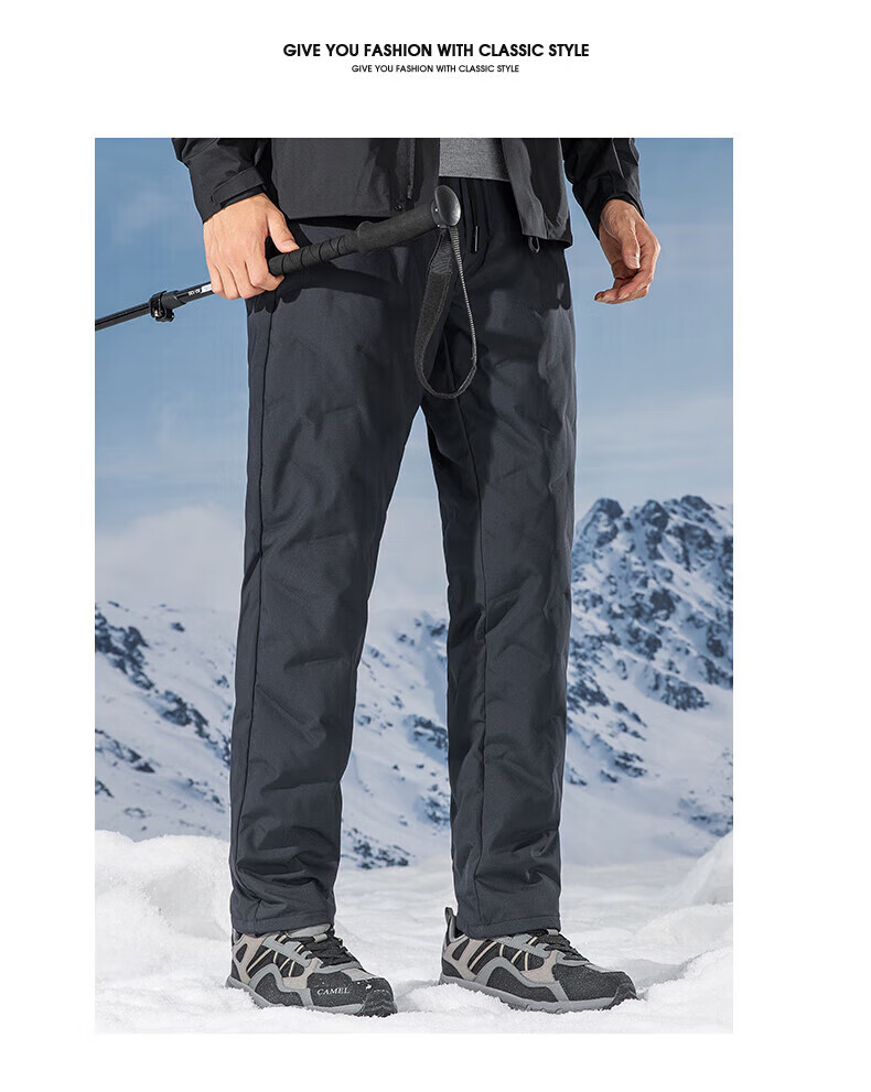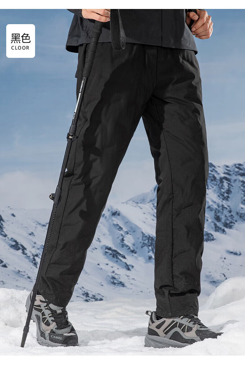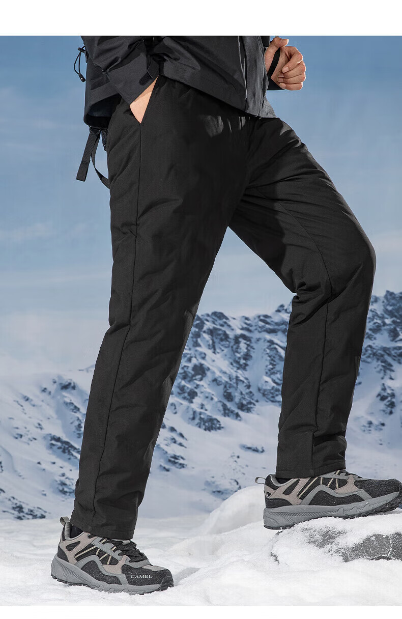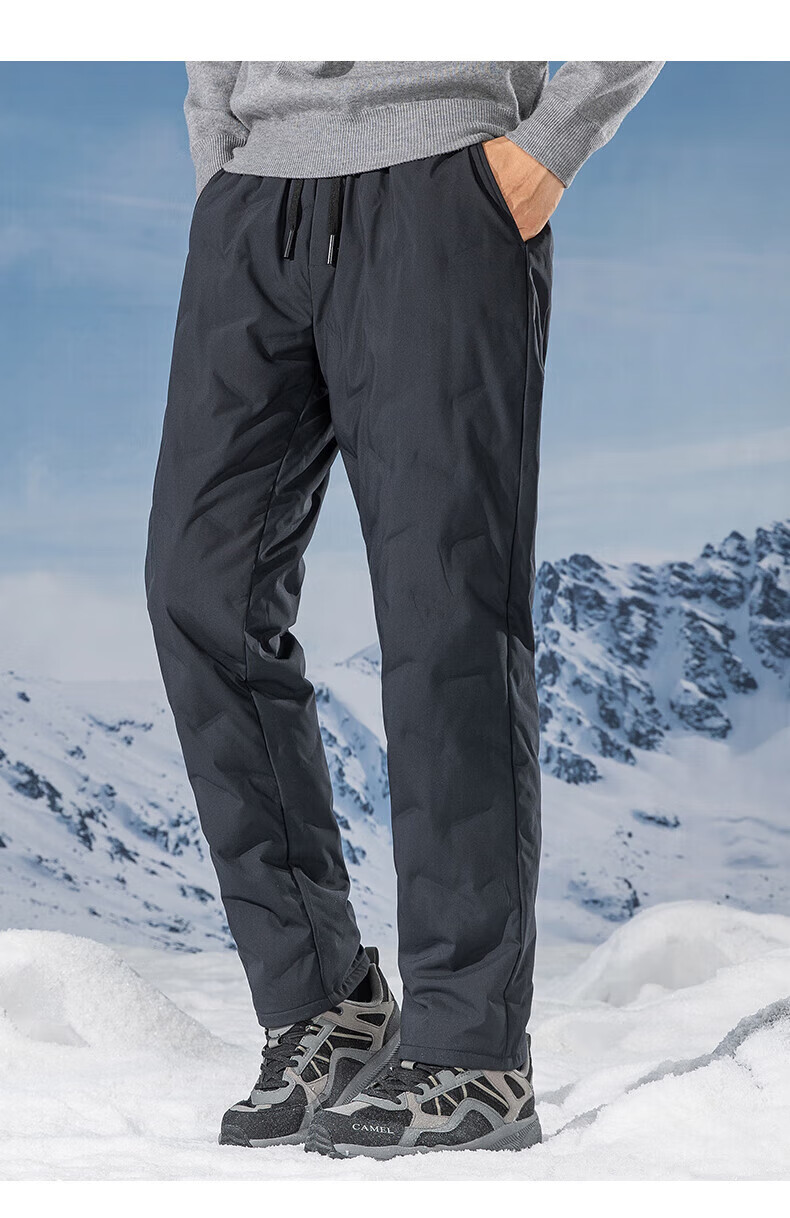 鸭鸭(YAYA)男士羽绒裤直筒加厚松紧腰弹力保暖中青年冬季新年防寒休闲裤子 黑色 XL 180(建议130-150斤)