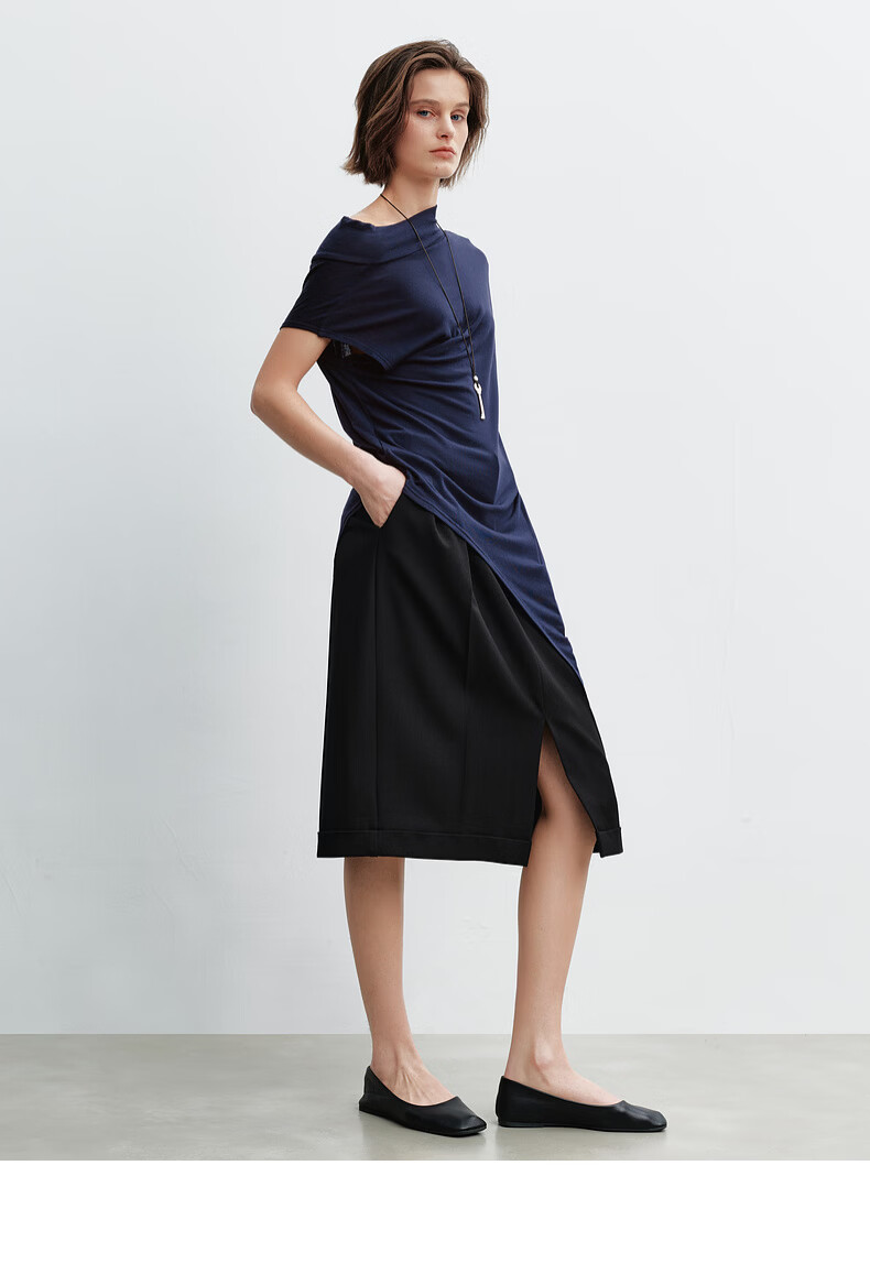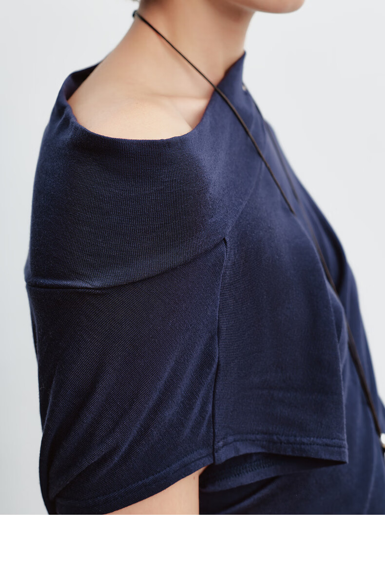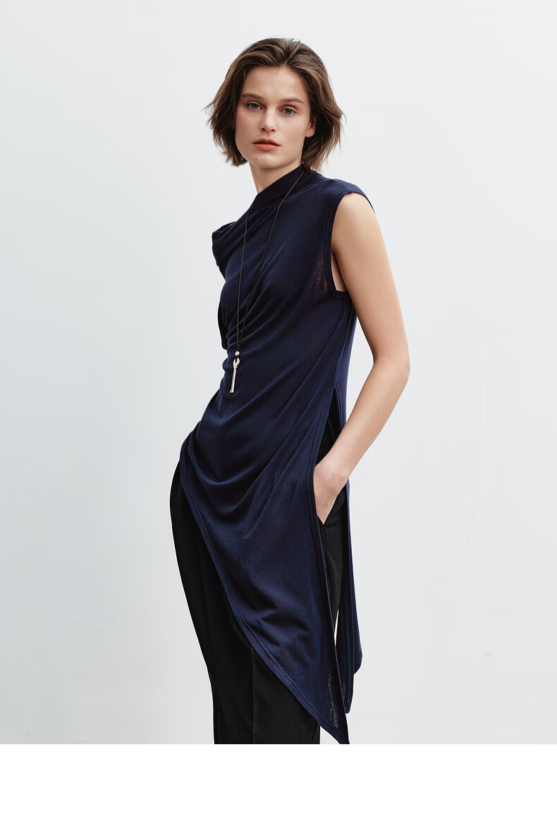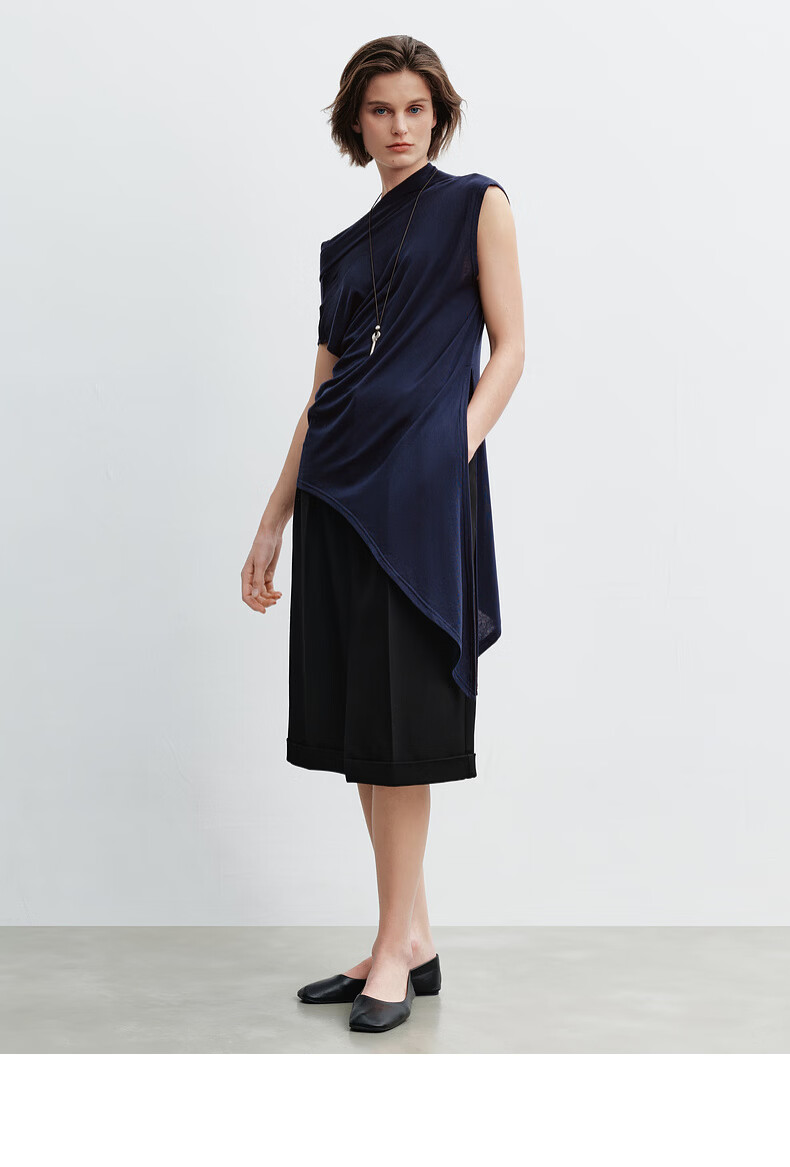 H's莱赛尔T恤女26年春季新款感觉设计感不对称荡领无袖背心上衣 藏青 S