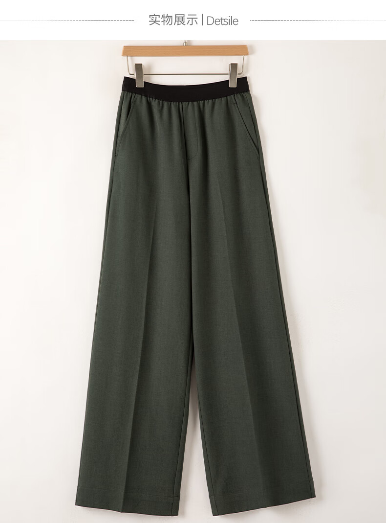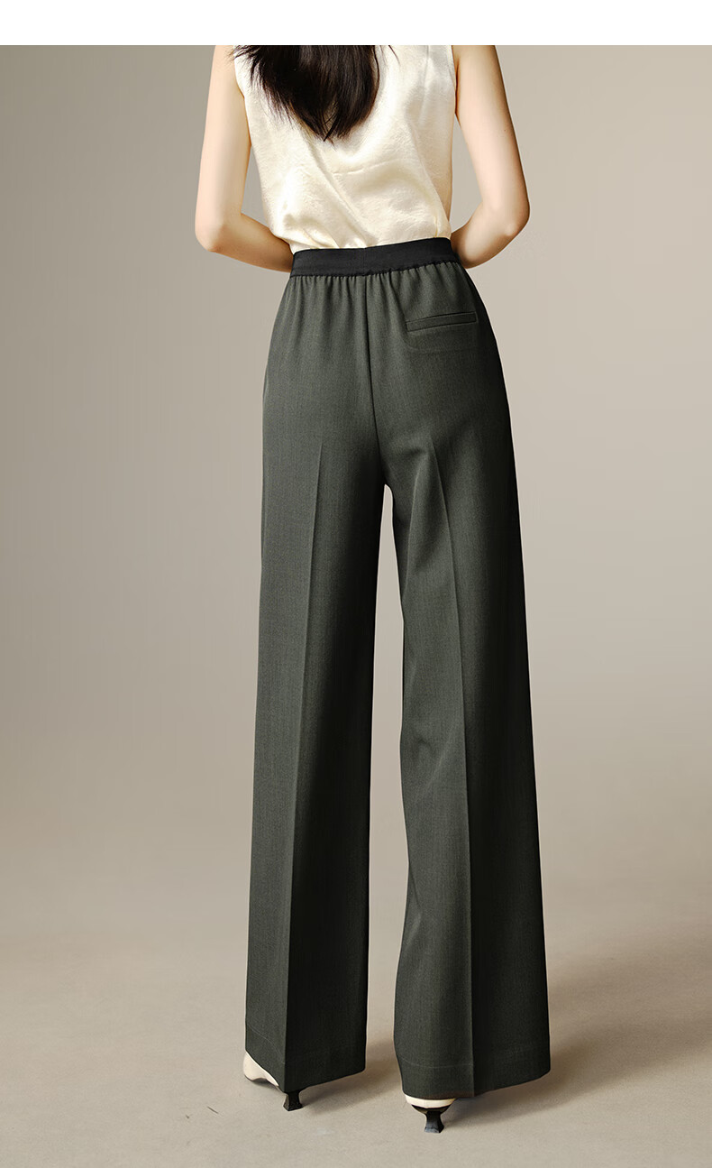 晚白【断码清仓】2026春款气质通勤纯色裤子松紧高腰显瘦阔腿休闲裤女 铁灰绿 28