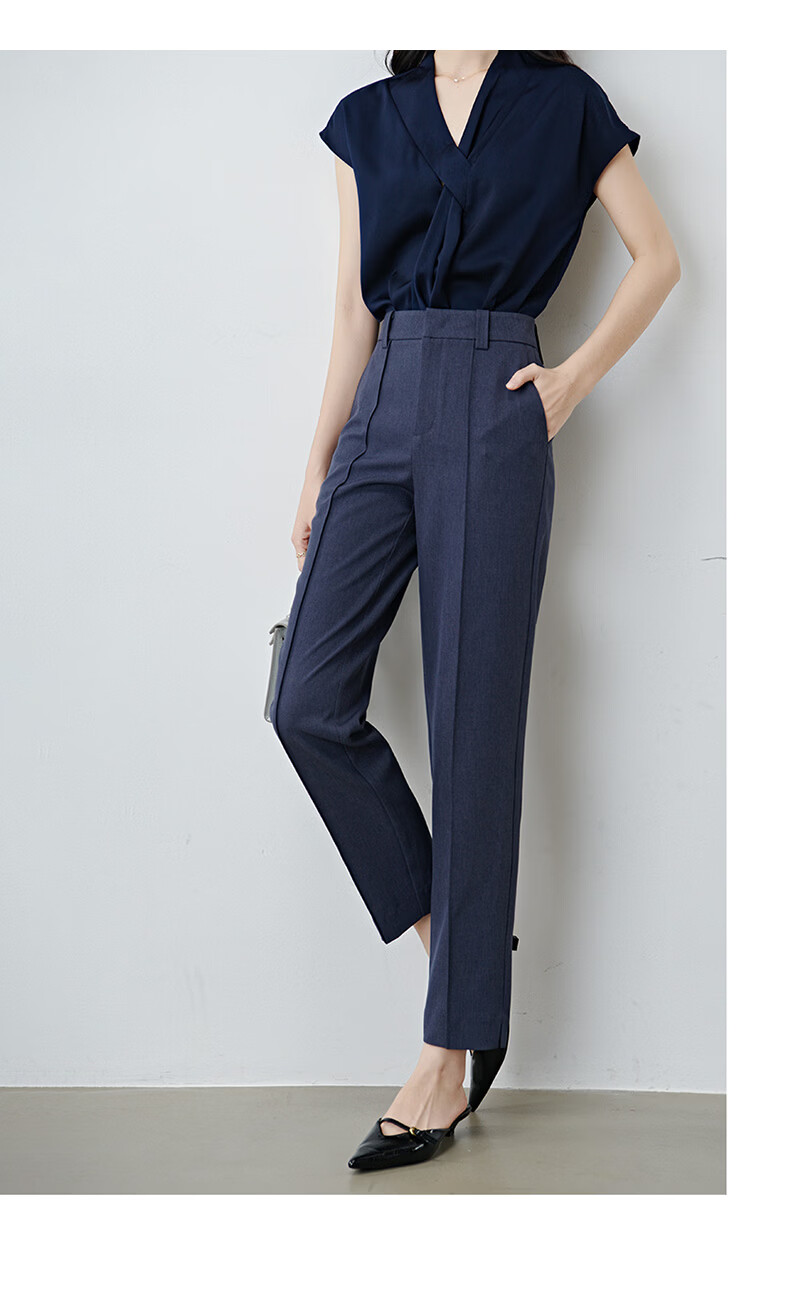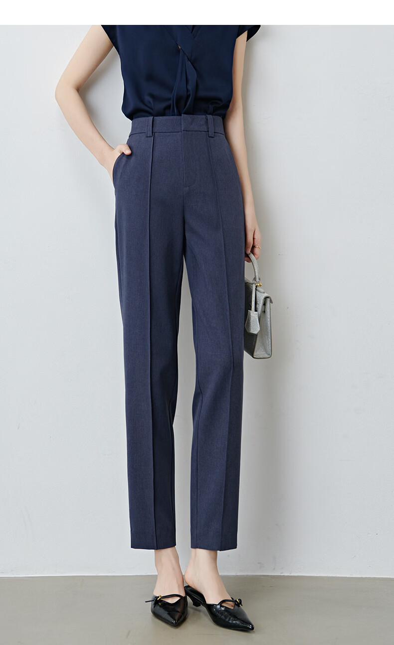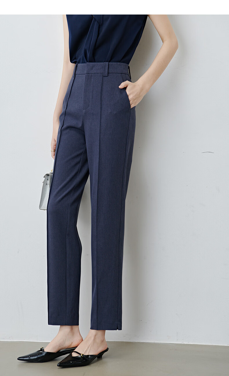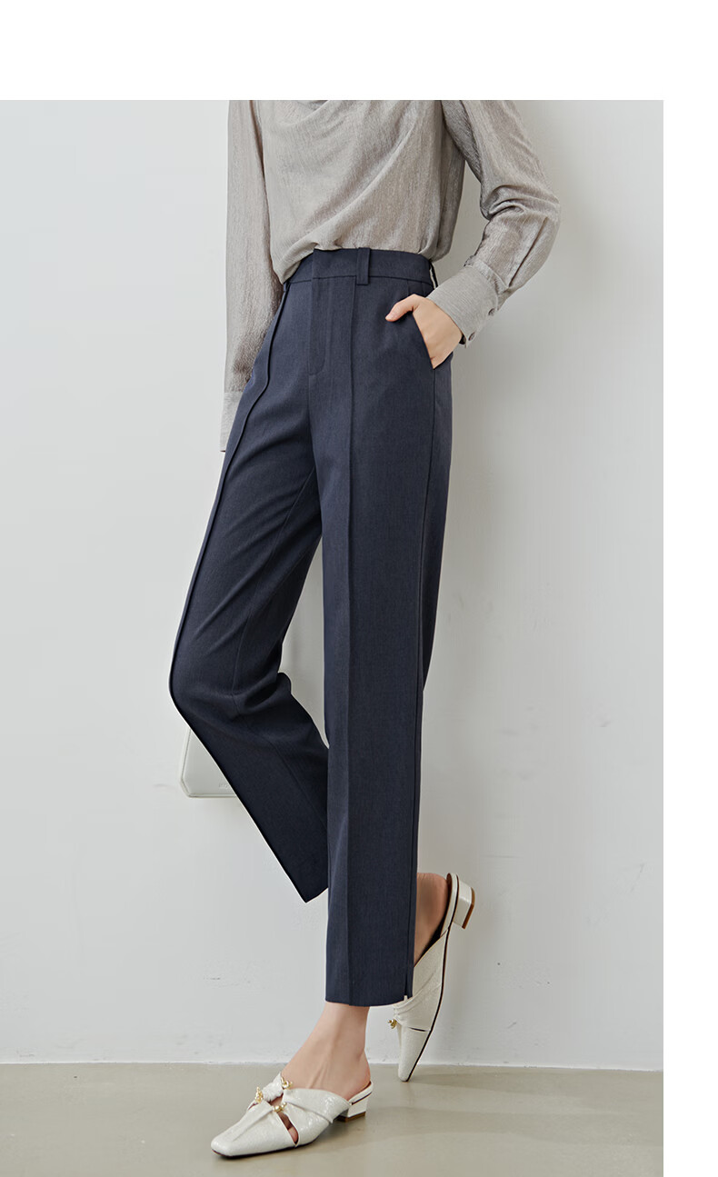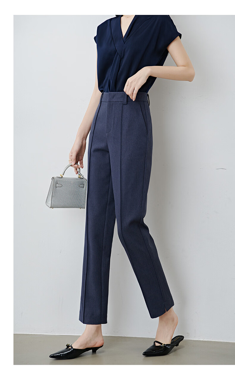 晚白【新品】2026春款经典高腰早8神裤挺括利落正式场合通勤烟管裤女 蓝灰色 26