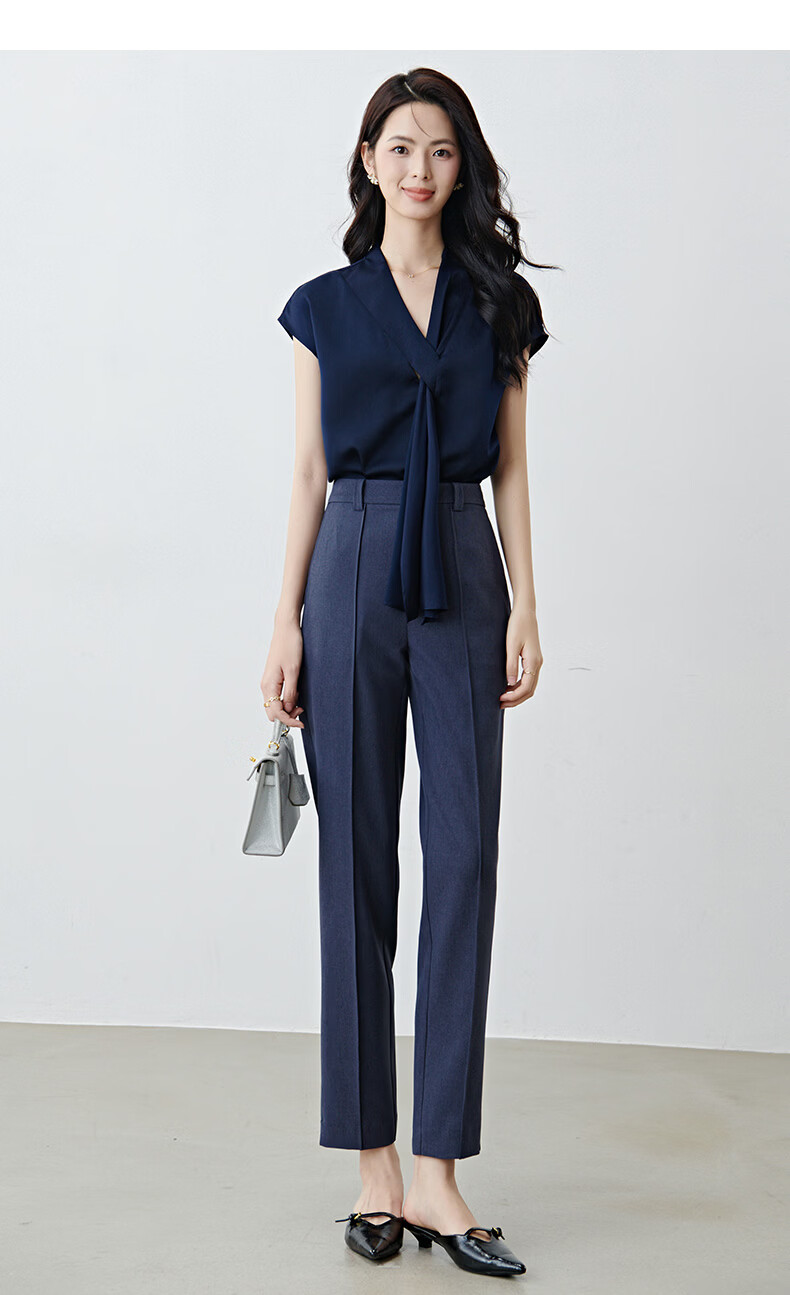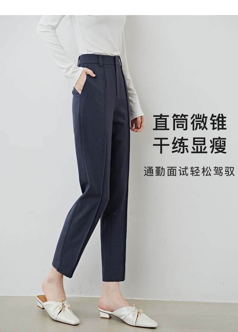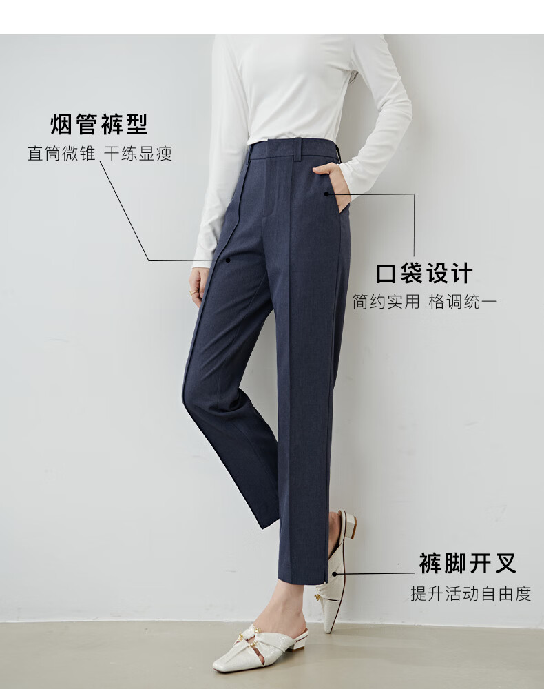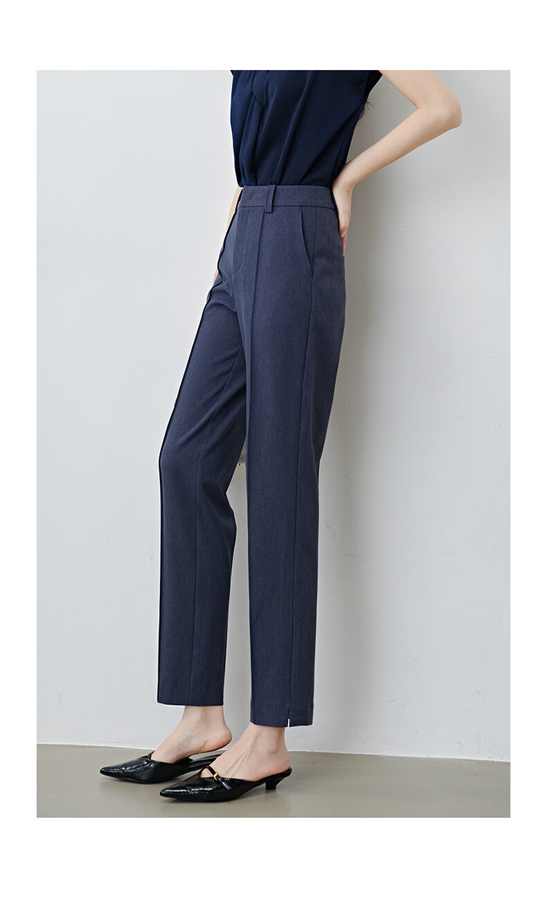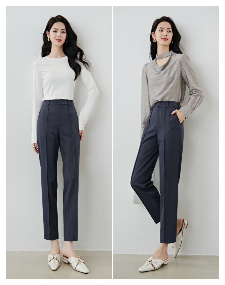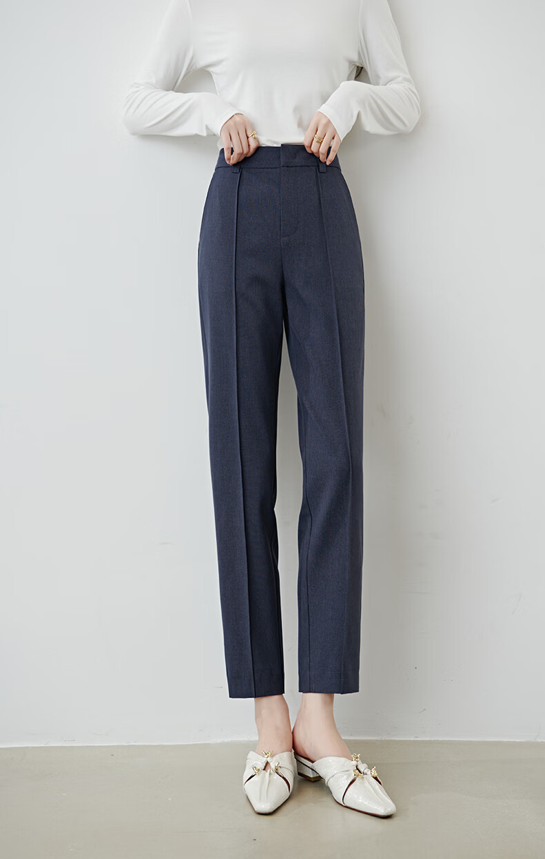 晚白【新品】2026春款经典高腰早8神裤挺括利落正式场合通勤烟管裤女 蓝灰色 26