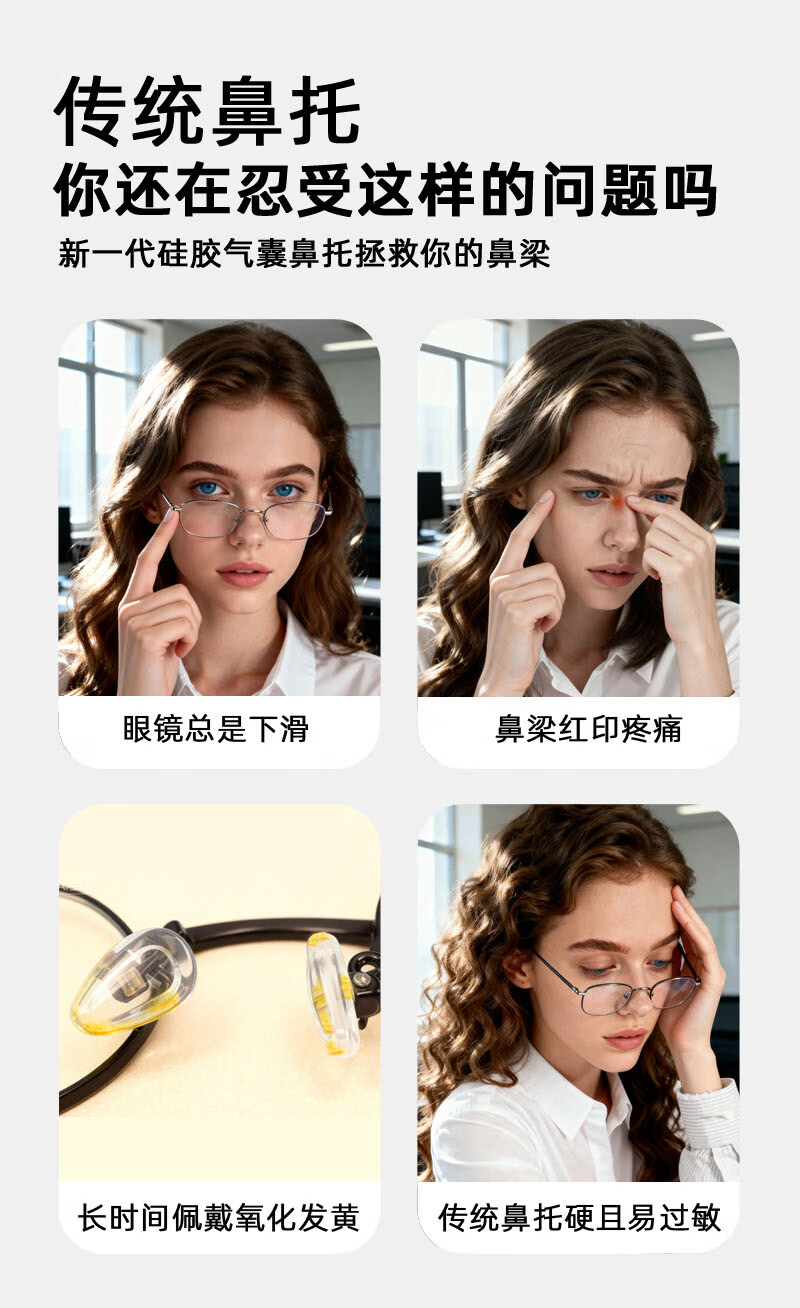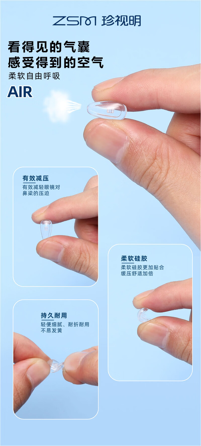珍视明眼镜鼻托硅胶无痕透气防滑落防压痕舒适眼镜配件超软支架气囊鼻托