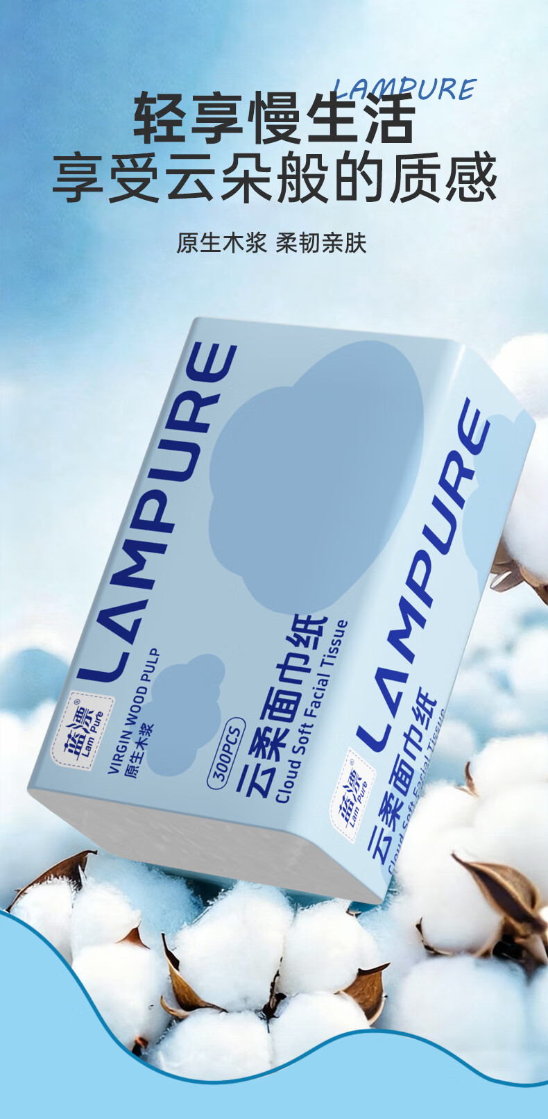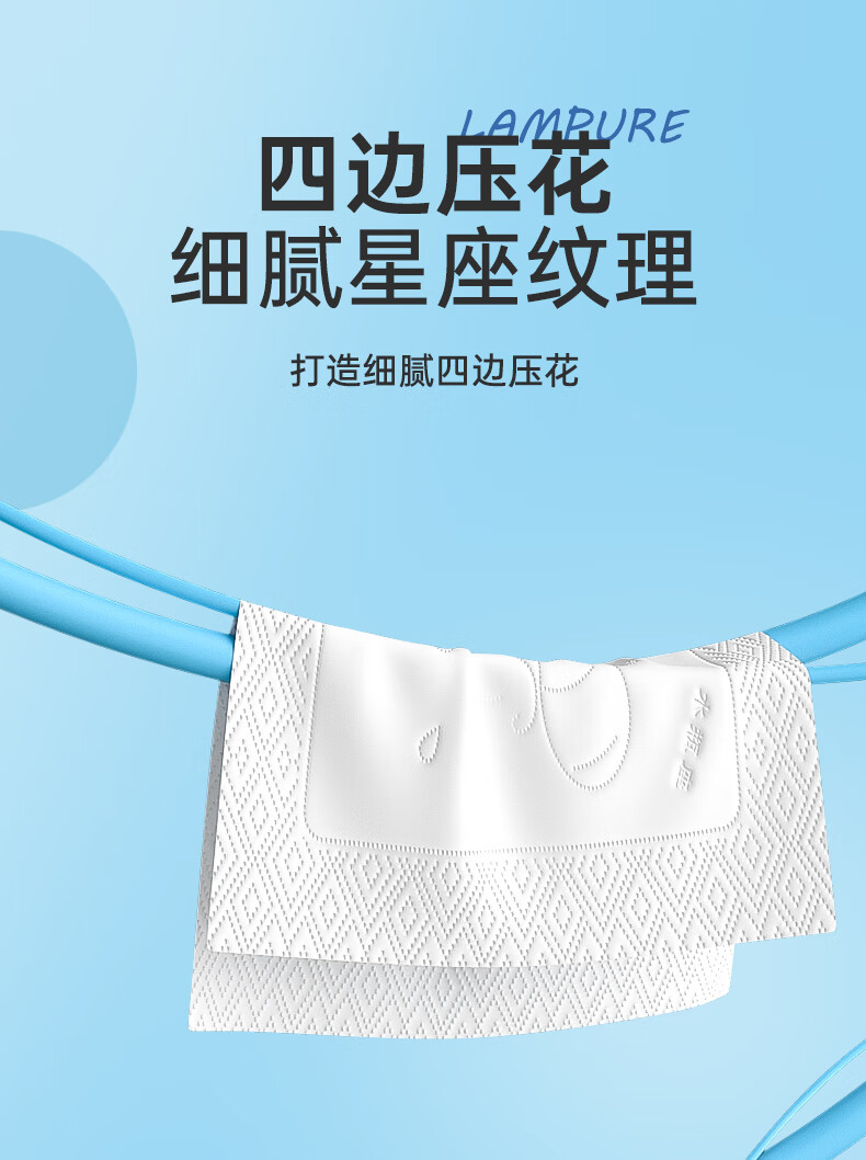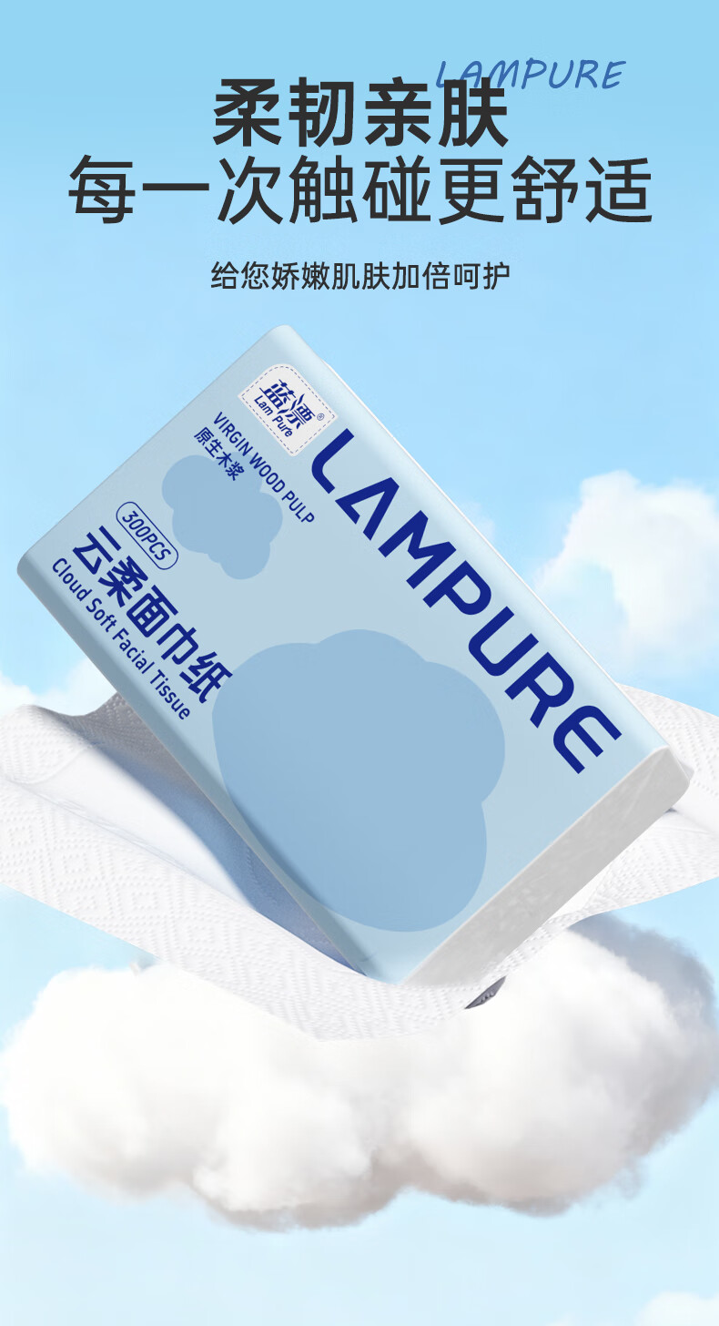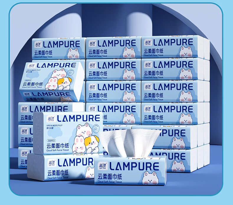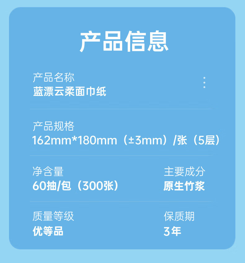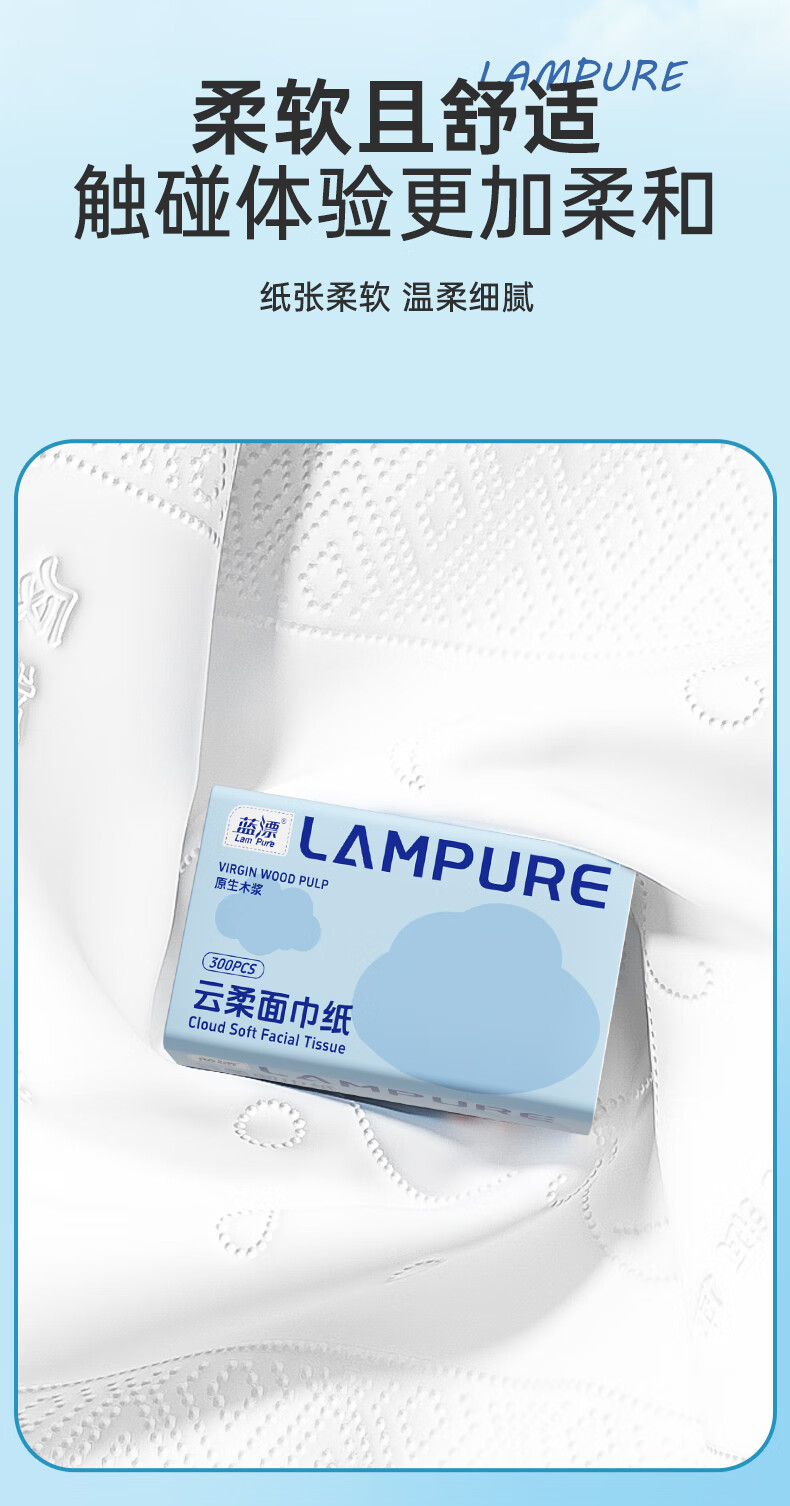 蓝漂纸巾面巾纸抽纸 5层加厚60抽 原生木浆 紧致四边压花锁边 5层 300张*5包