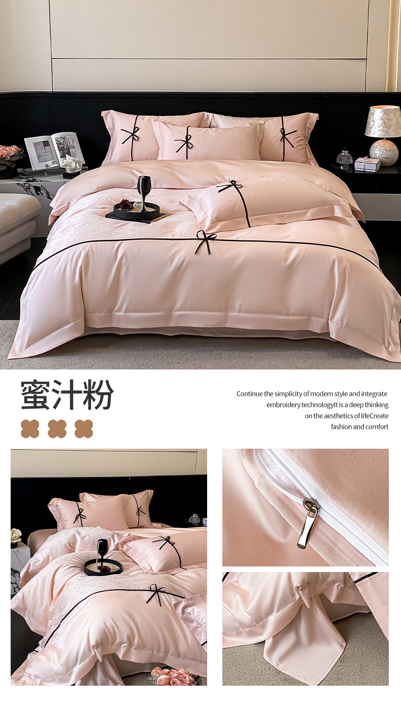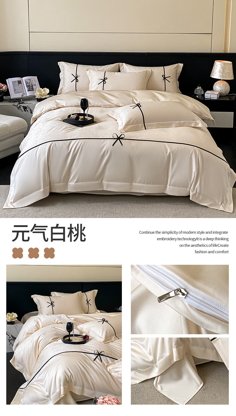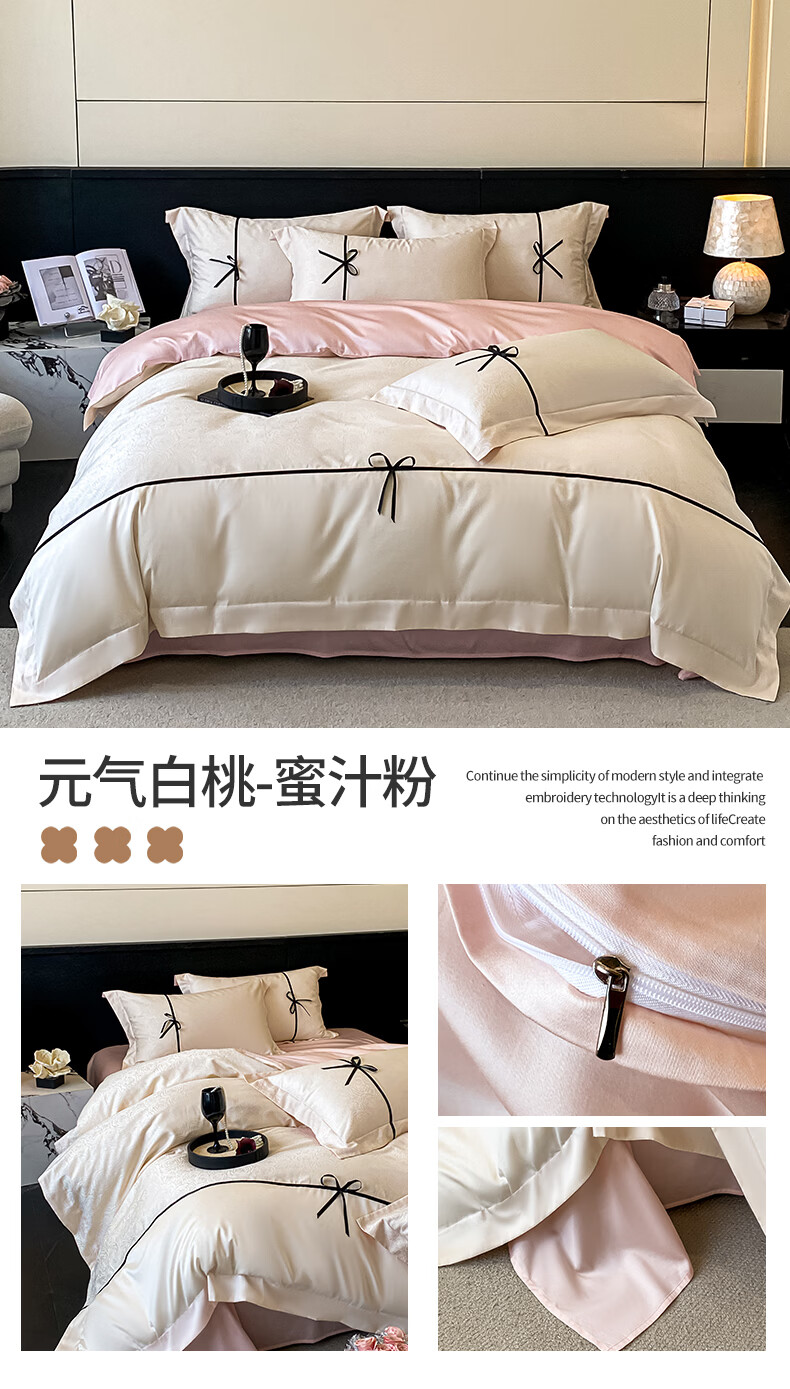 无印良品兰精天丝床上四件套高级轻奢2026新款床单被套裸睡床笠款床上用品 克拉拉-元气白桃【高端轻奢天丝棉】 1.8m 床笠款 四件套-被套200x230cm