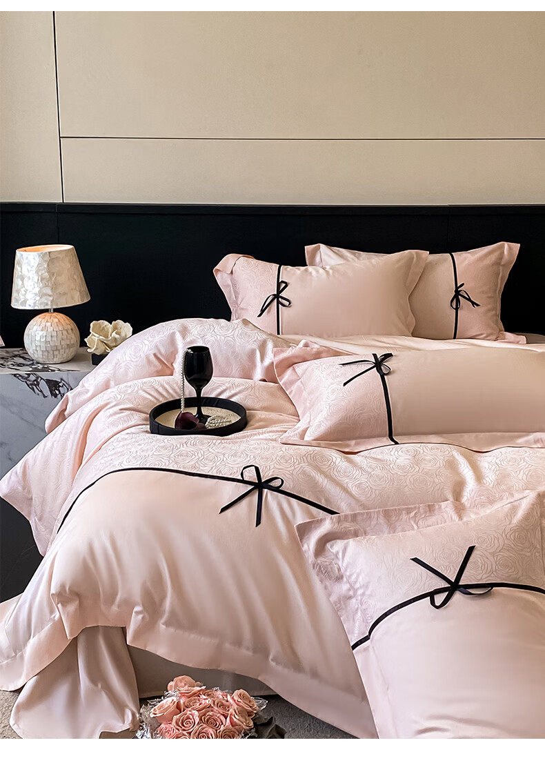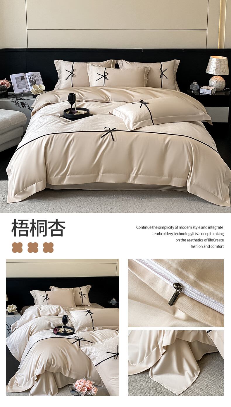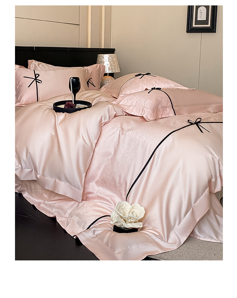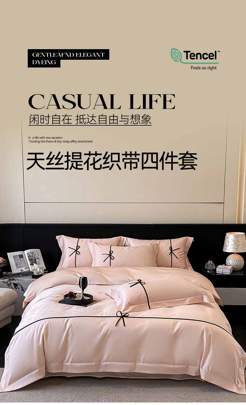 无印良品兰精天丝床上四件套高级轻奢2026新款床单被套裸睡床笠款床上用品 克拉拉-元气白桃【高端轻奢天丝棉】 1.8m 床笠款 四件套-被套200x230cm