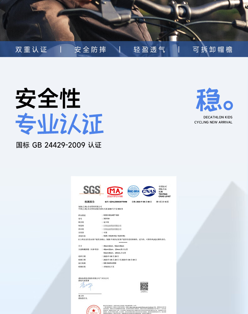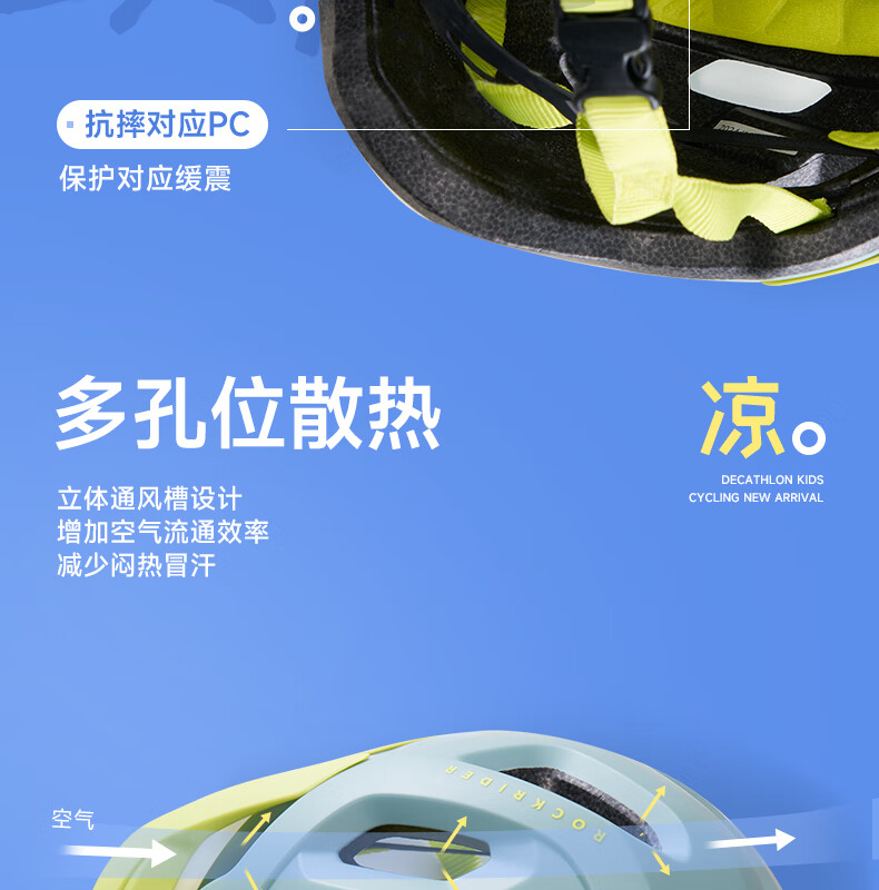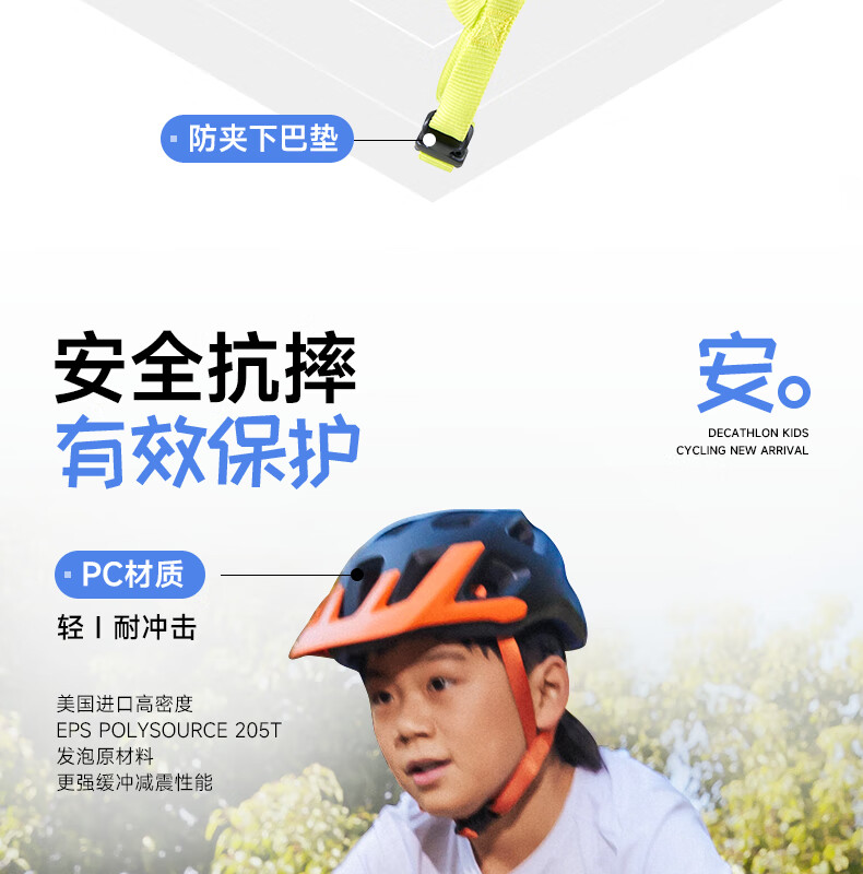 迪卡侬骑行头盔儿童自行车防护装备头盔55-59cm-5397622