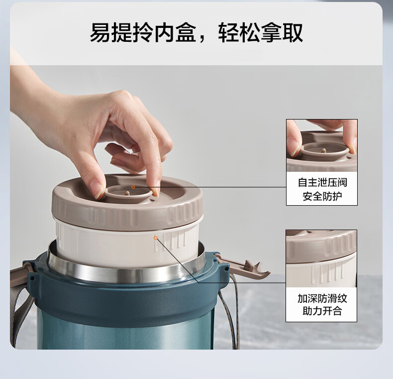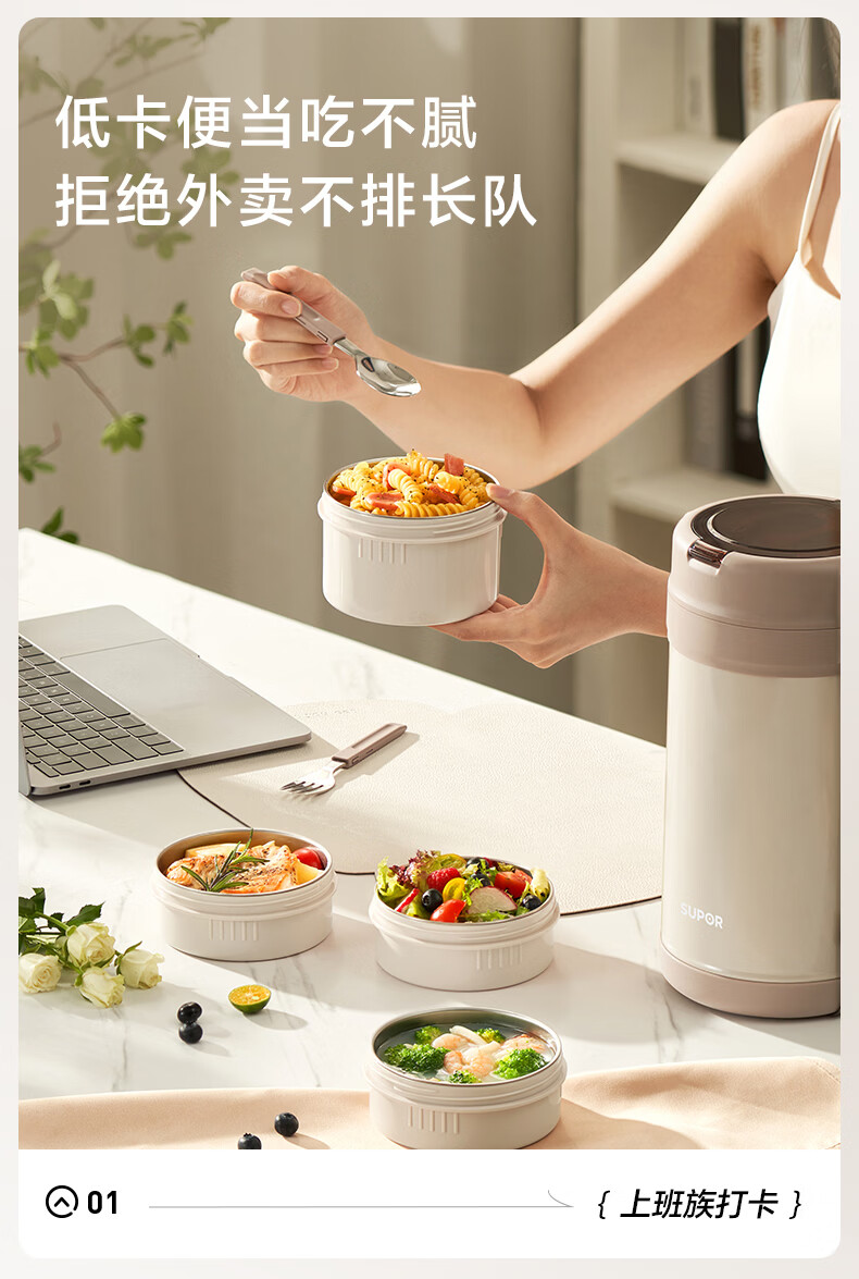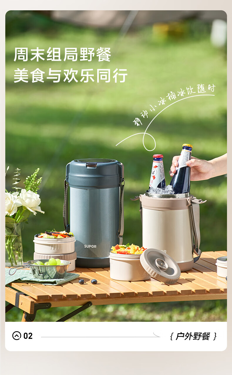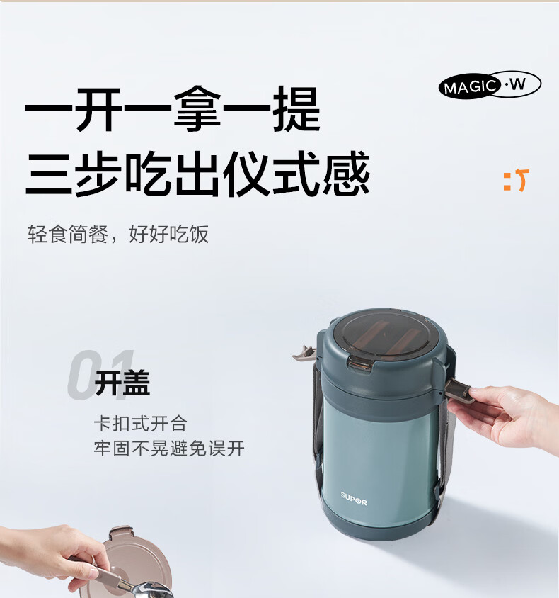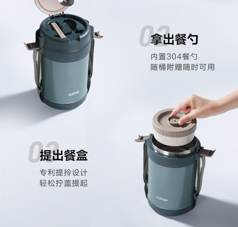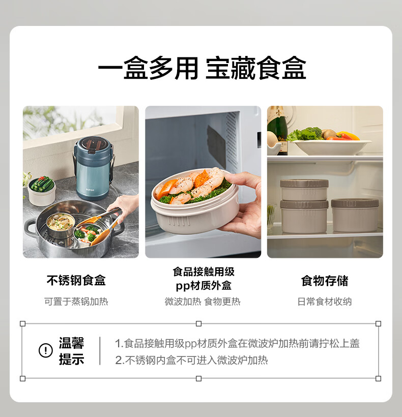 苏泊尔(SUPOR)保温提锅饭桶家用超长保温上班族大容量学生便携多层便当盒 沉香褐2.2L-3层+保温包