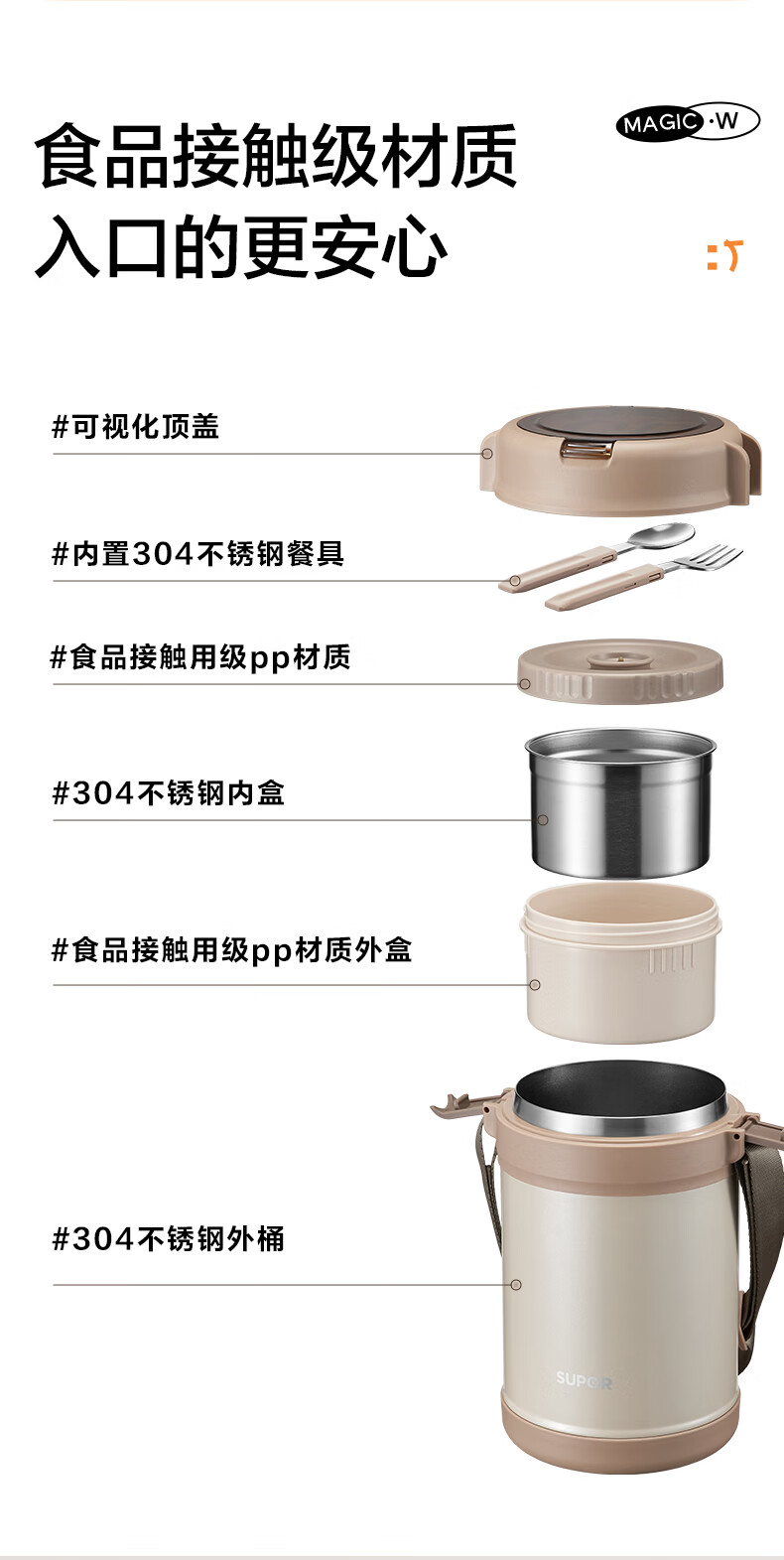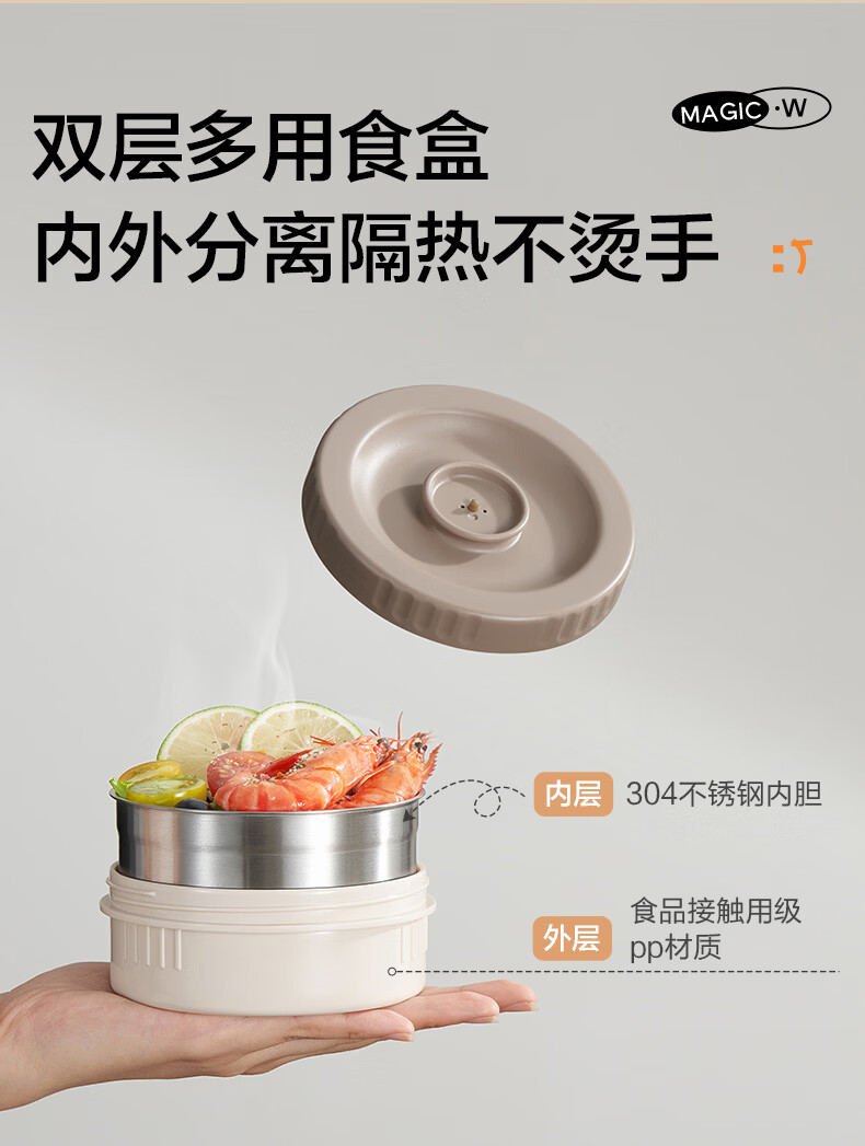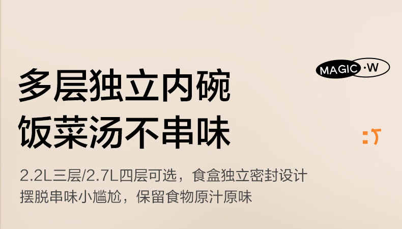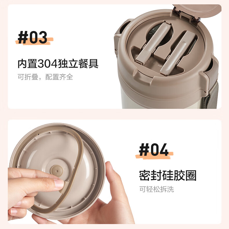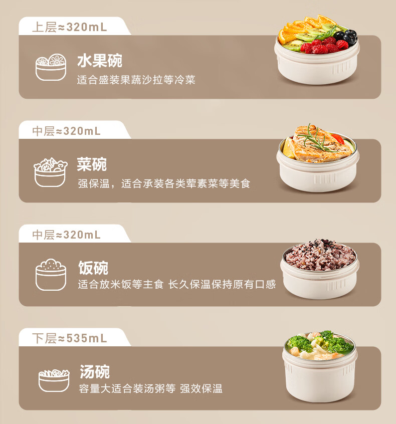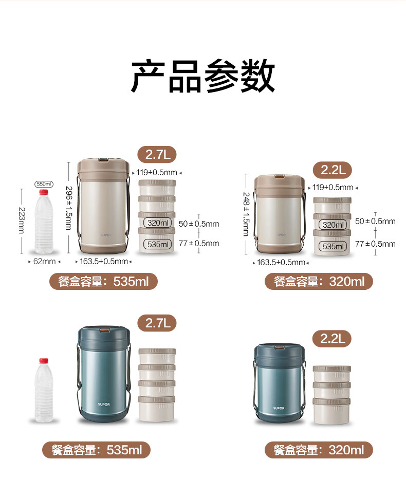 苏泊尔(SUPOR)保温提锅饭桶家用超长保温上班族大容量学生便携多层便当盒 沉香褐2.2L-3层+保温包