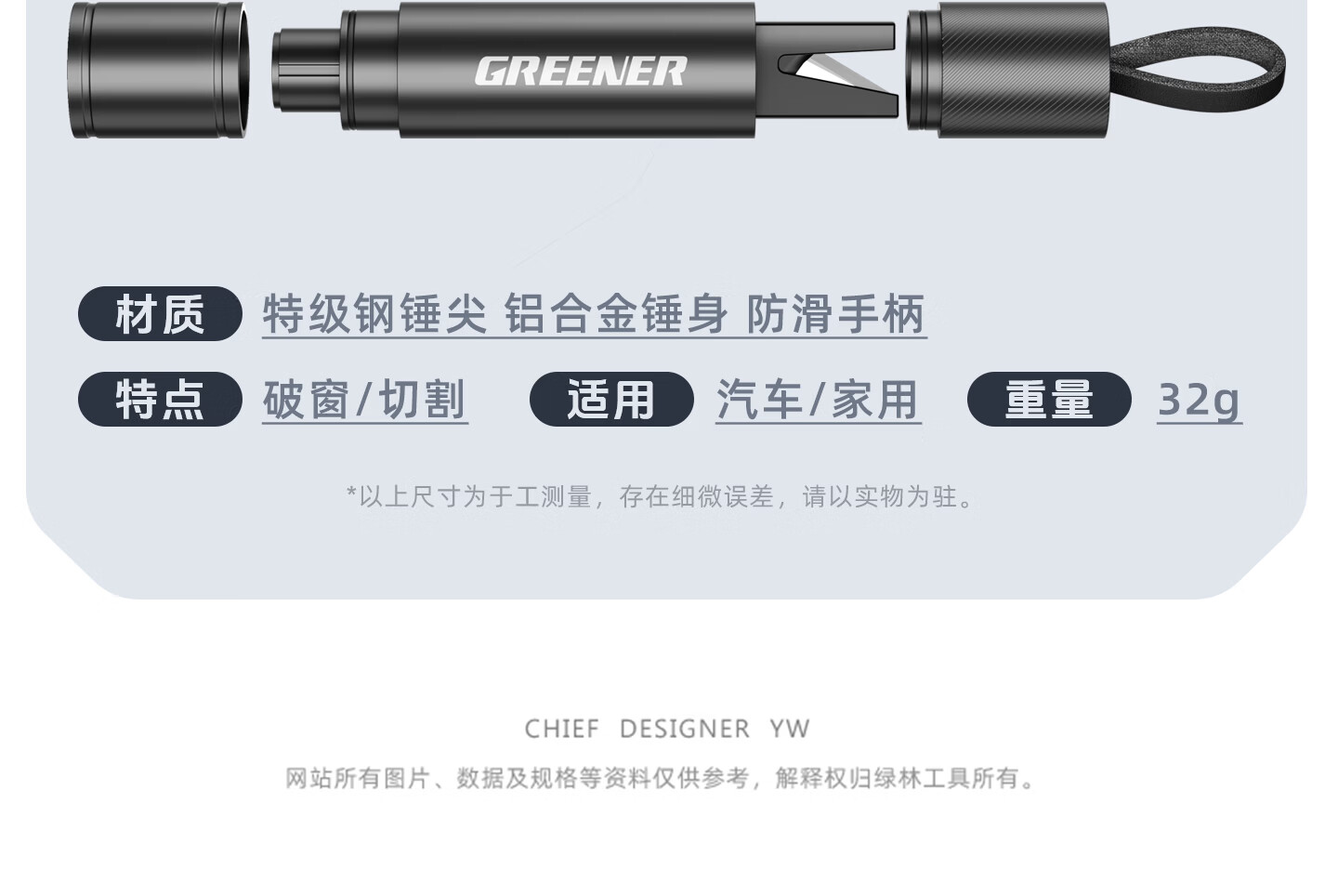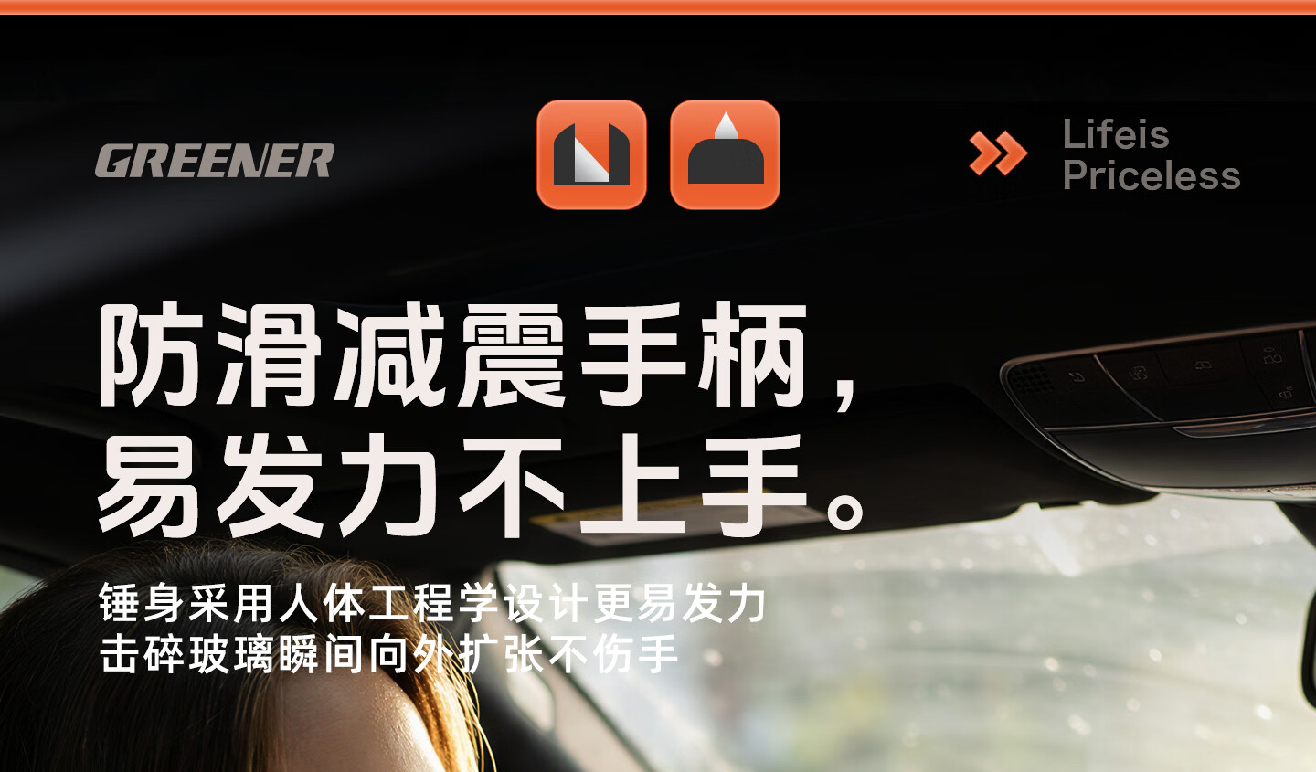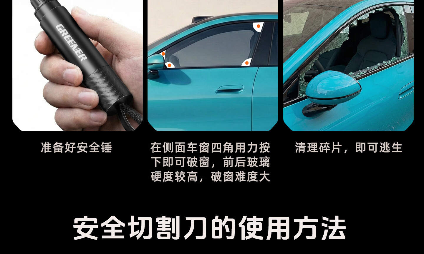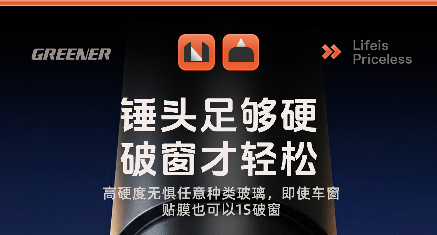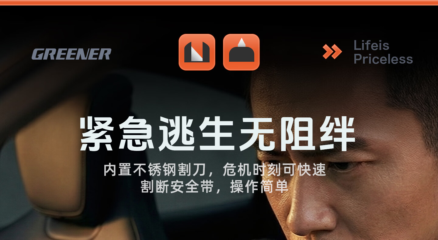 绿林(GREENER)绿林安全锤汽车破窗神器逃生四合一玻璃逃生锤多功能带割刀车用 【1秒破窗 电车专用】带隐藏式割刀