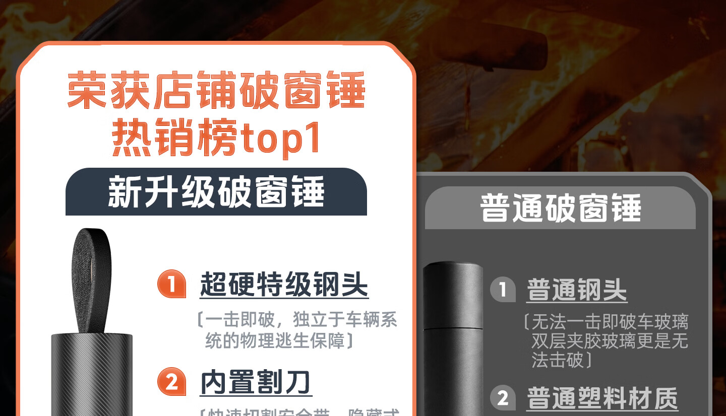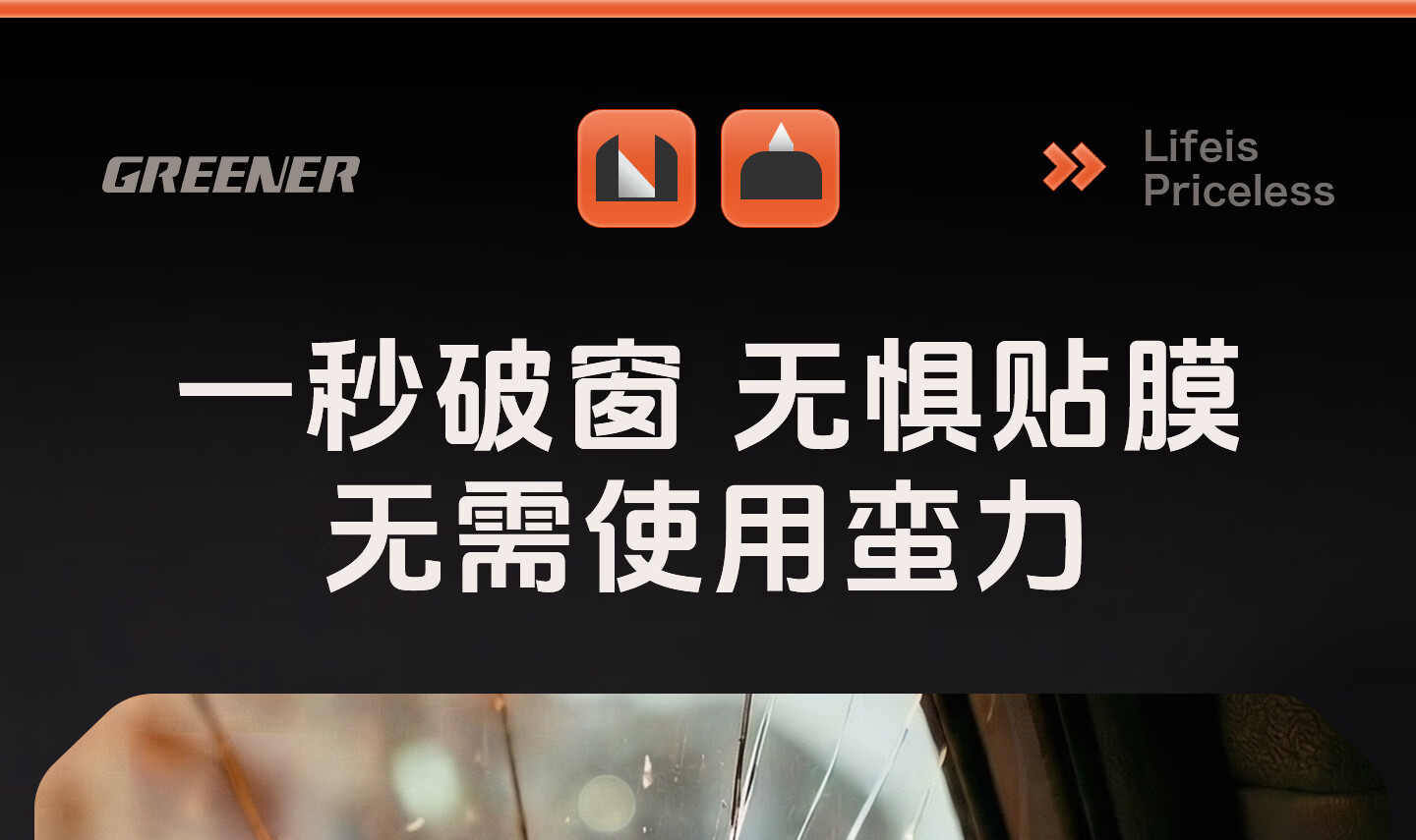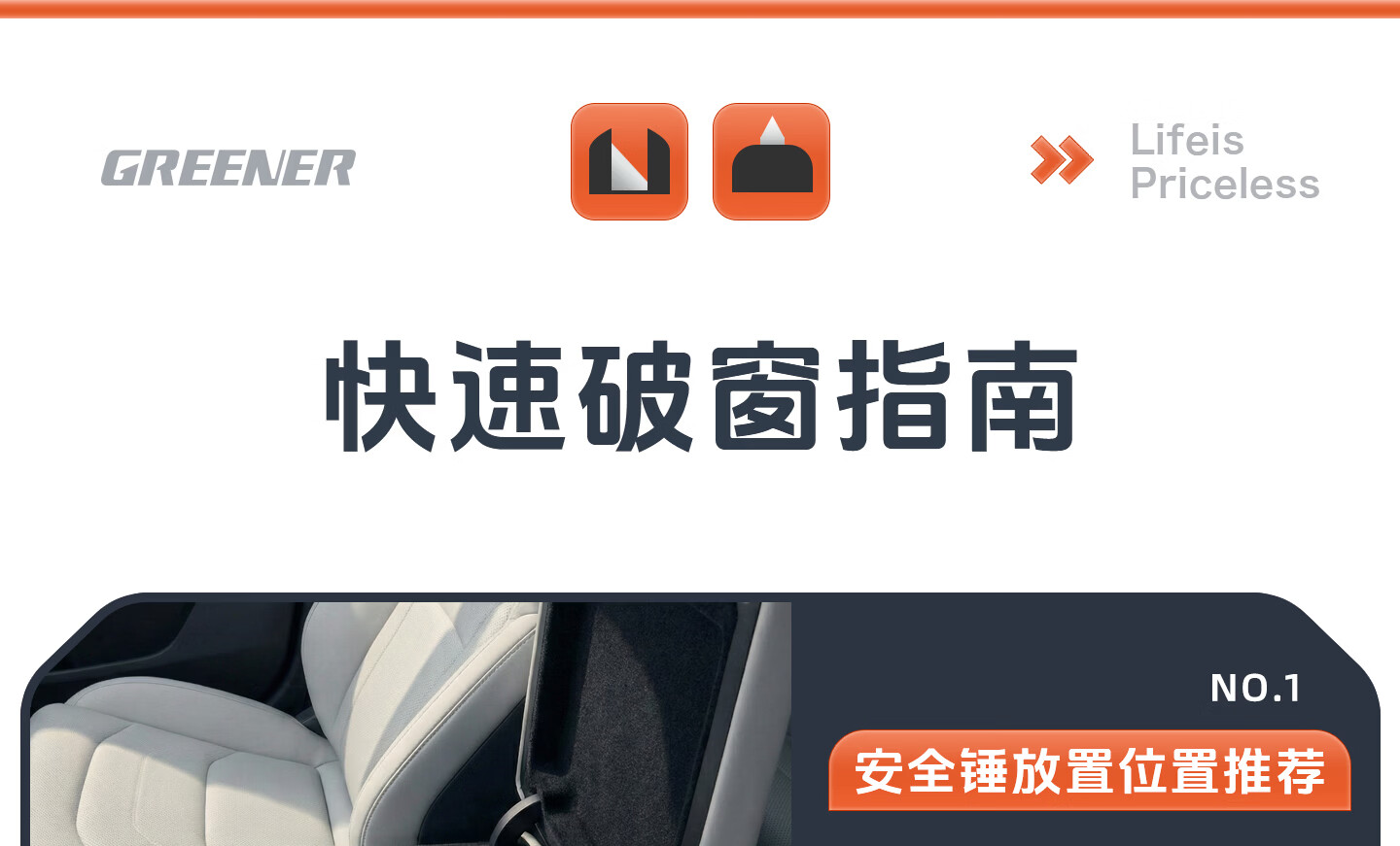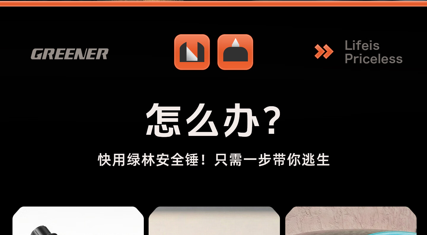 绿林(GREENER)绿林安全锤汽车破窗神器逃生四合一玻璃逃生锤多功能带割刀车用 【1秒破窗 电车专用】带隐藏式割刀