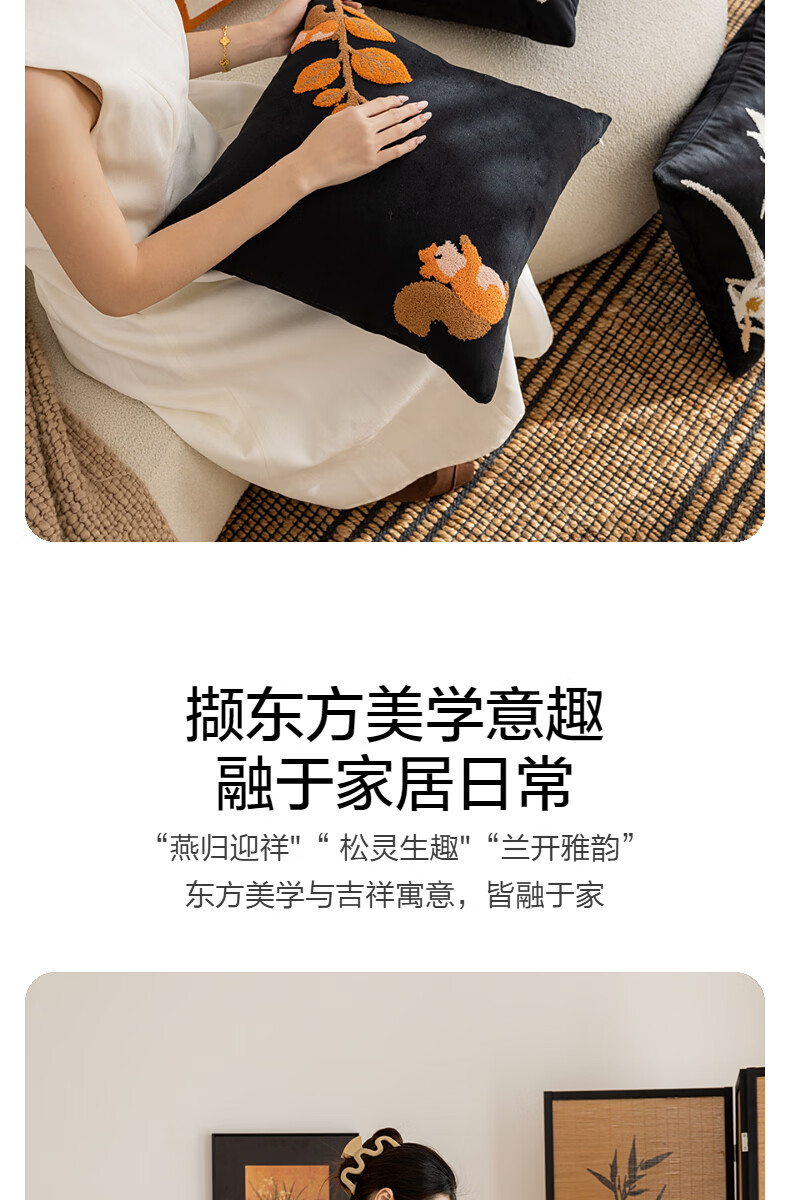 水星家纺东方织境靠垫 东方织境靠垫(松鼠) 45cm*45cm