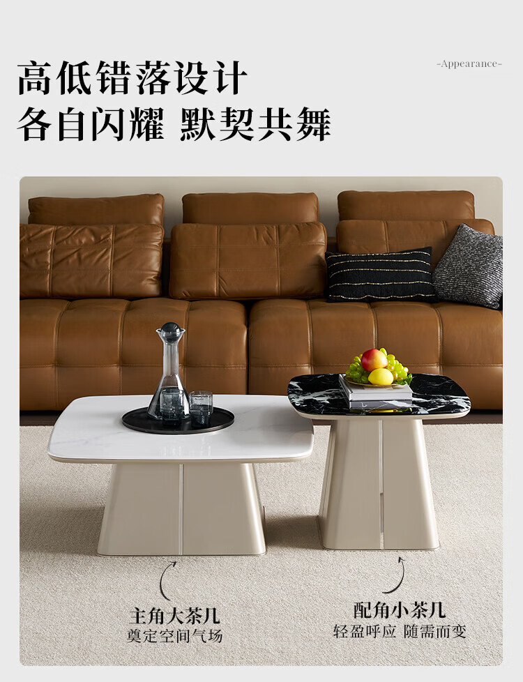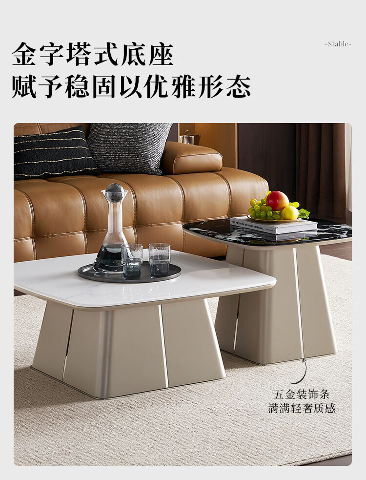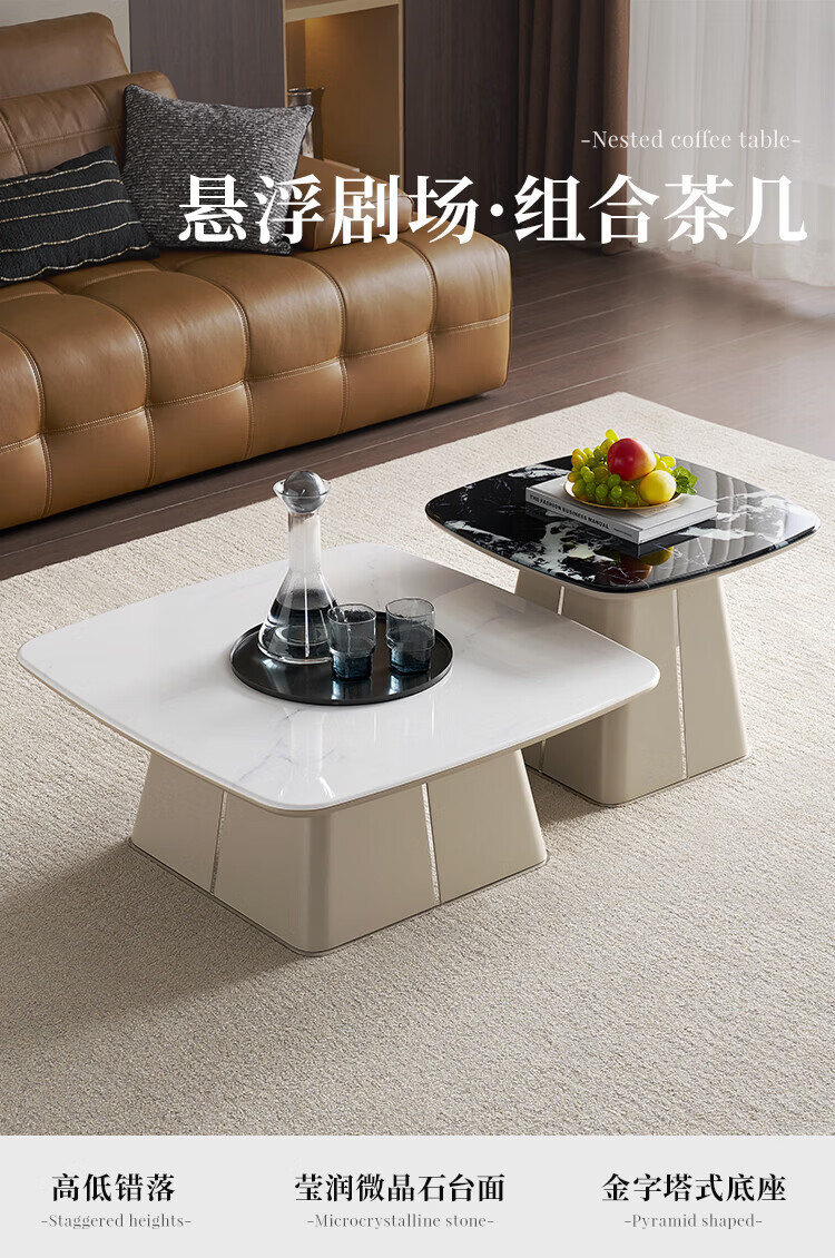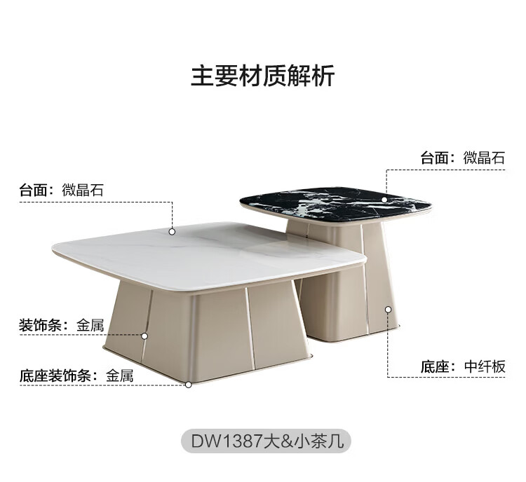 全友(QUANU)【迷瞪直播间】DW1387悬浮剧场组合茶几微晶石台面大小茶几边几 【微晶石】小茶几