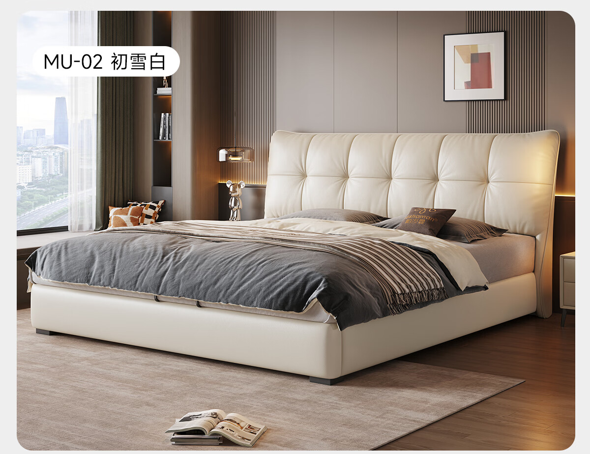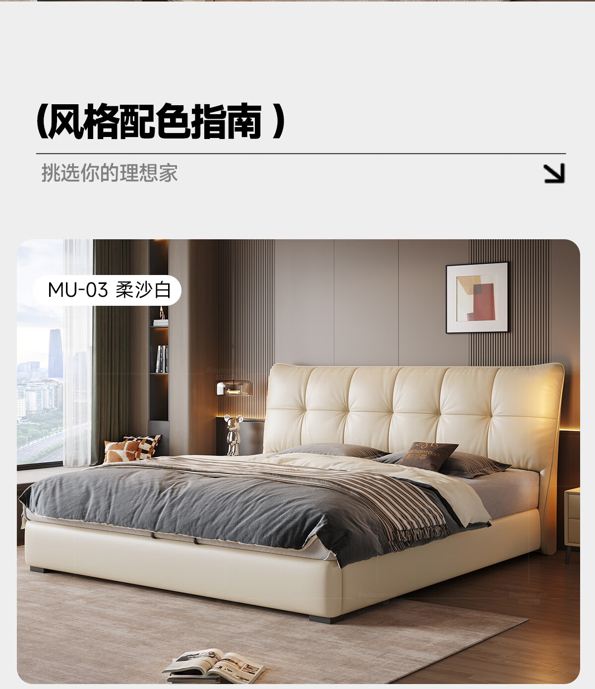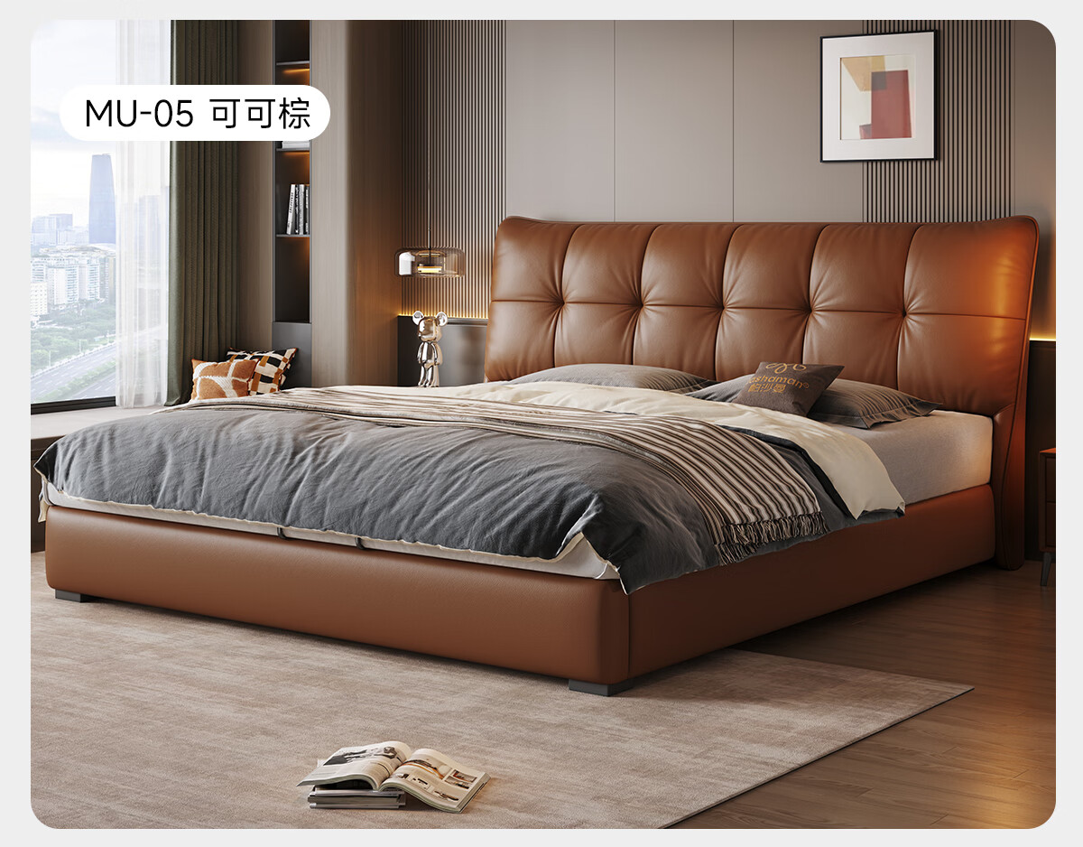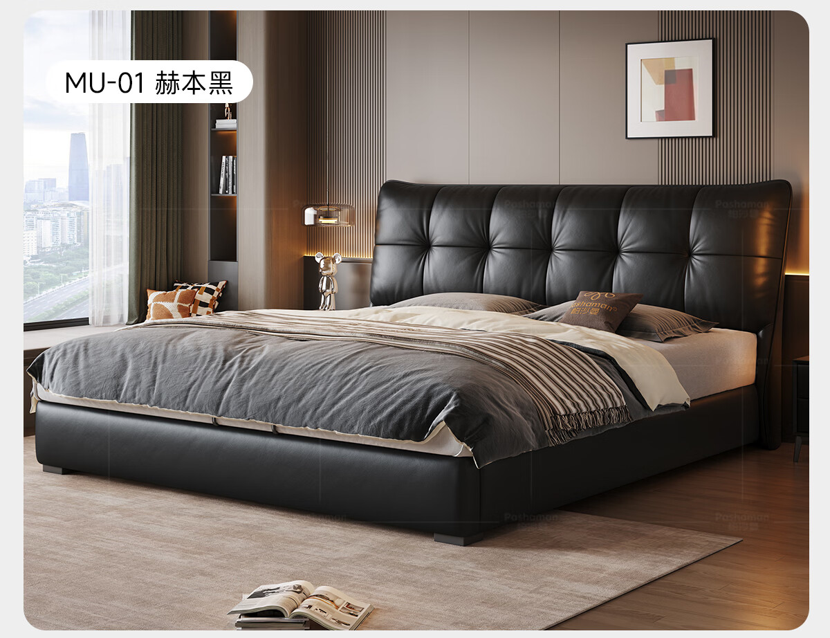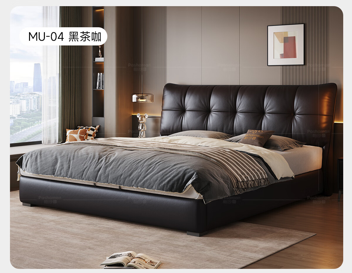帕沙曼国货补贴意式床1米8现代简约风真皮床主卧靠背大床双人床8351CP-R 【15CM钢木排骨架】单床 框架结构1500mm*2000mm