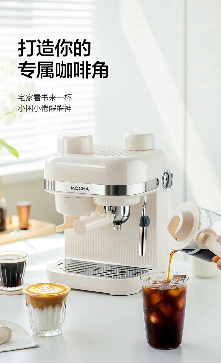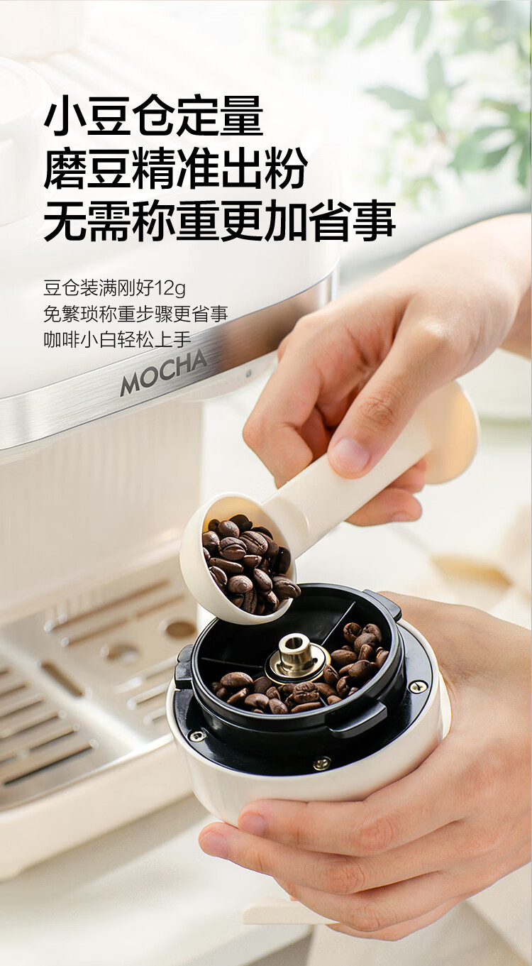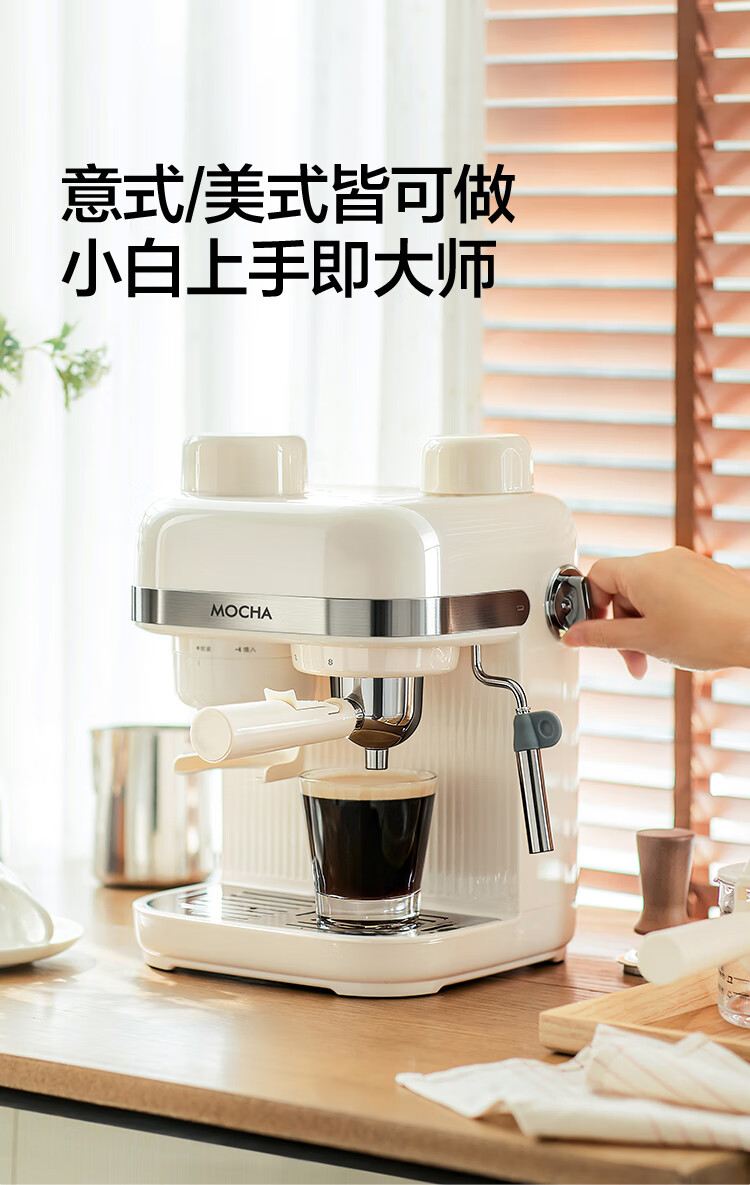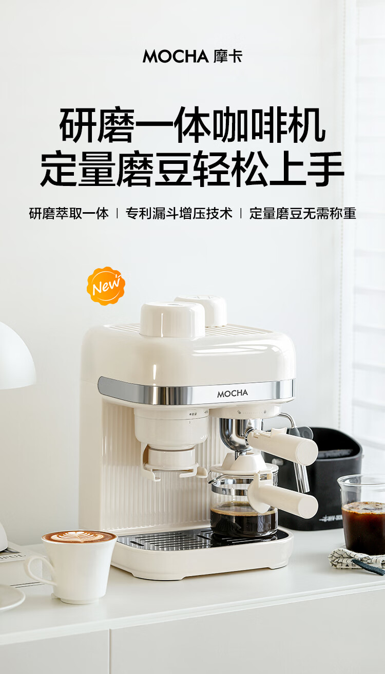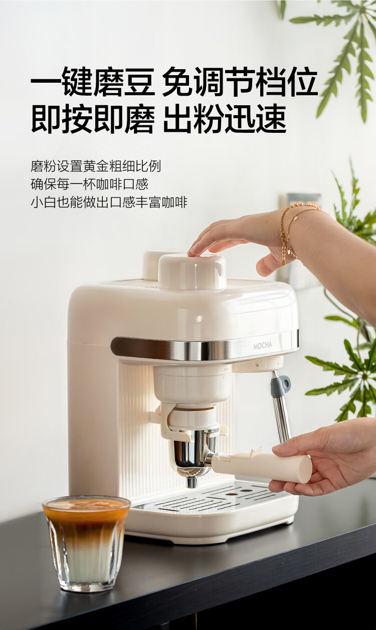 摩卡咖啡机 研磨一体机半自动意式美式家用小型磨豆2025新款萃取机 豆乳白