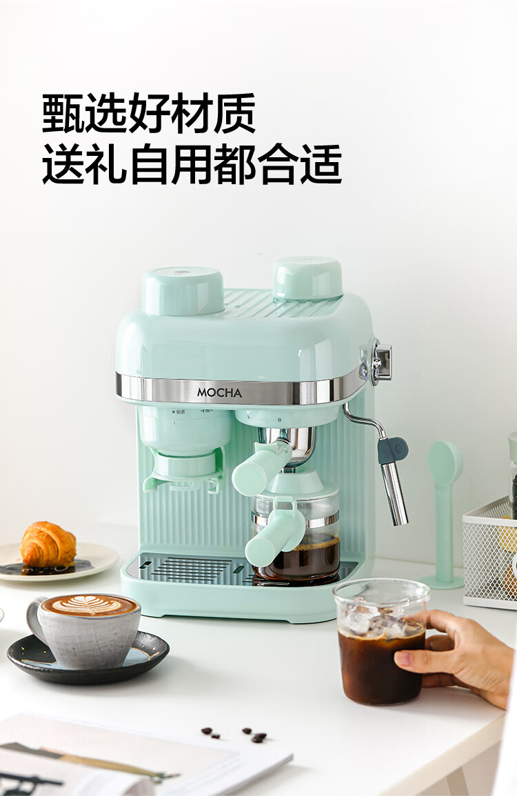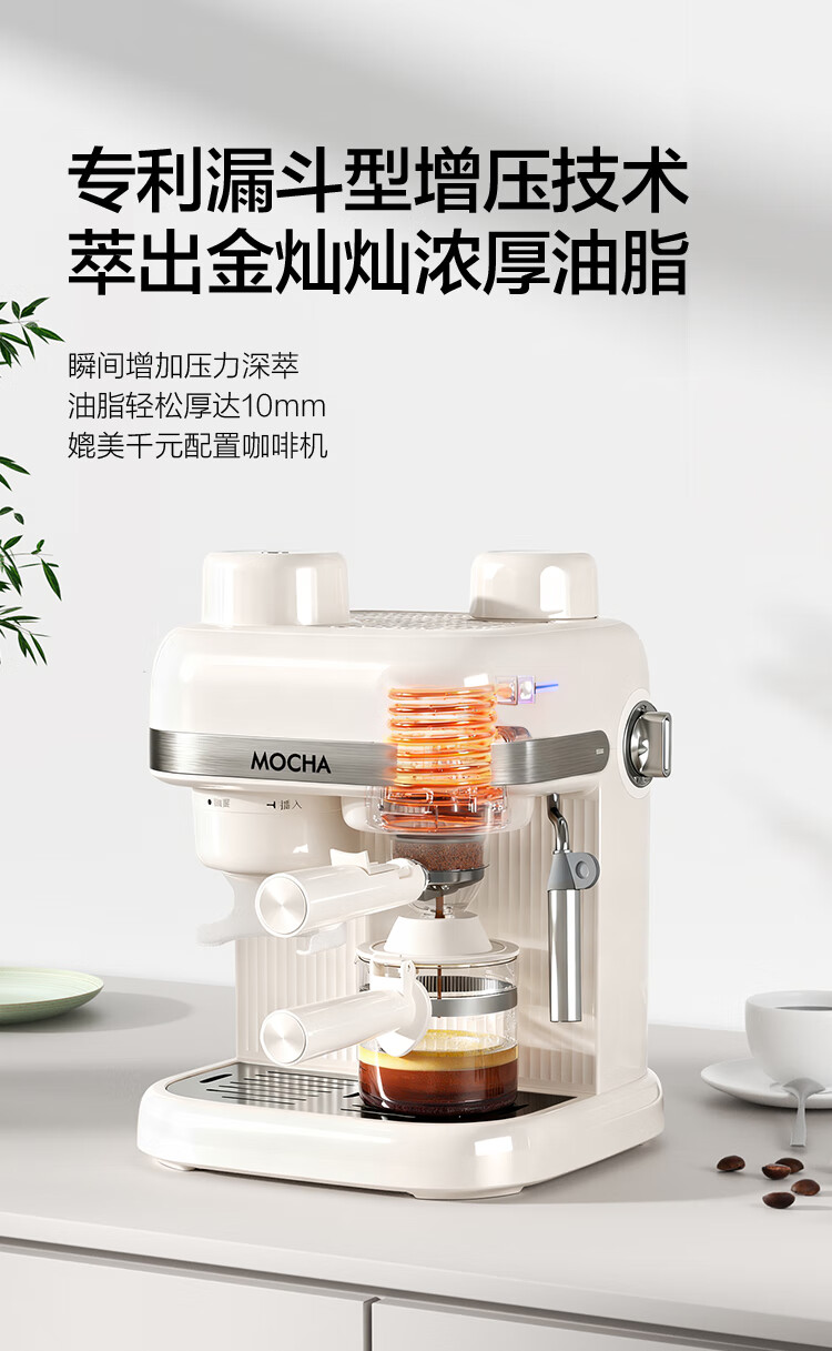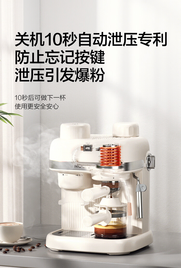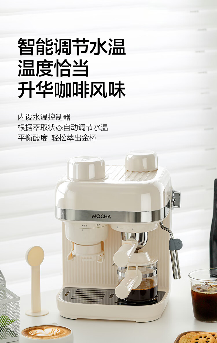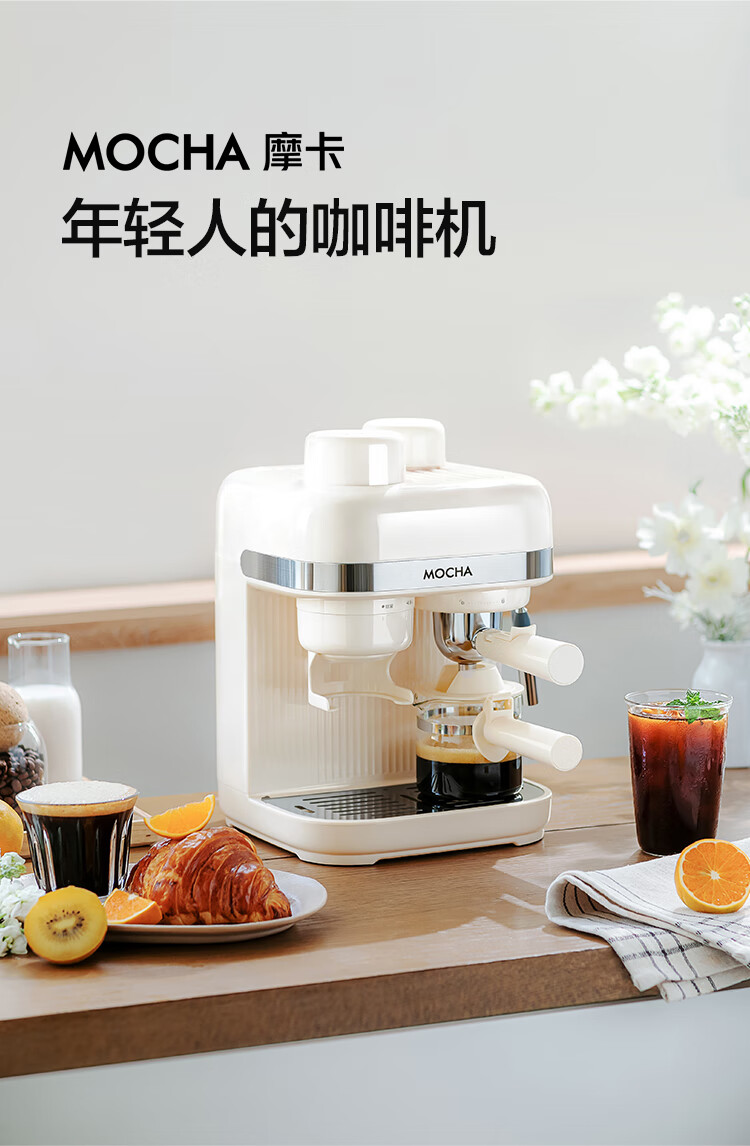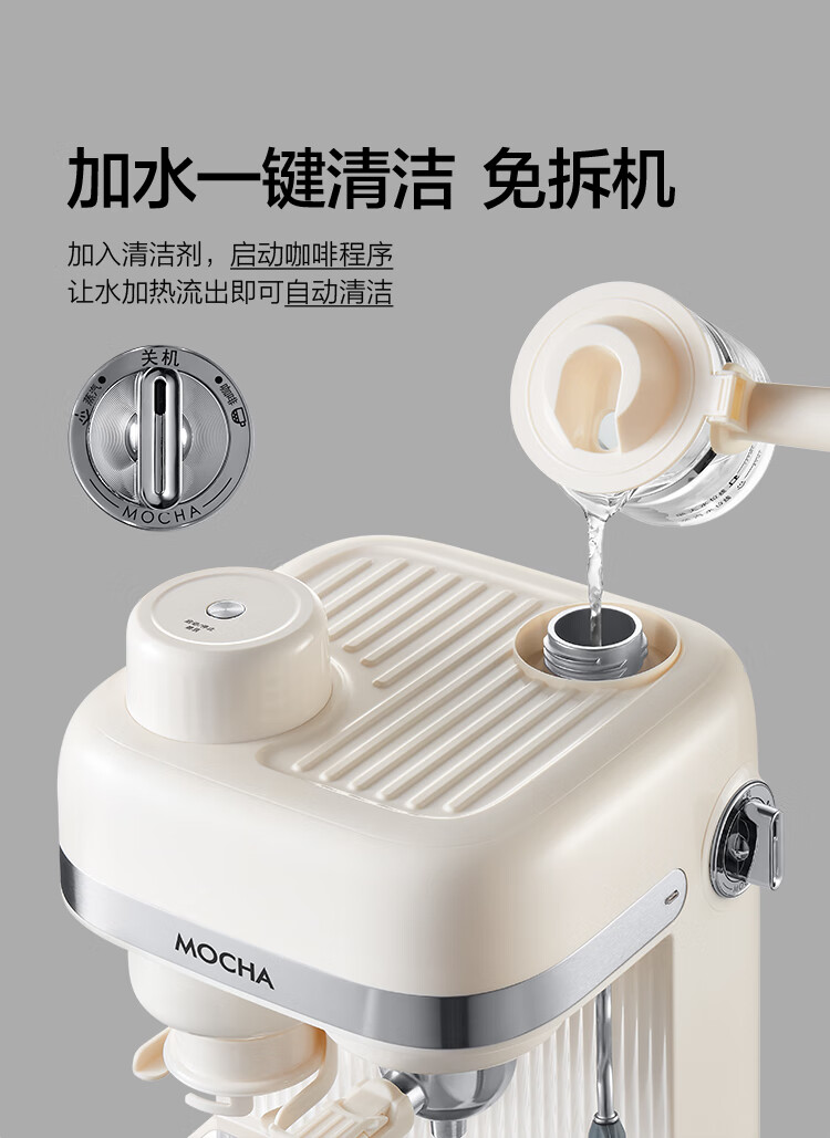 摩卡咖啡机 研磨一体机半自动意式美式家用小型磨豆2025新款萃取机 豆乳白