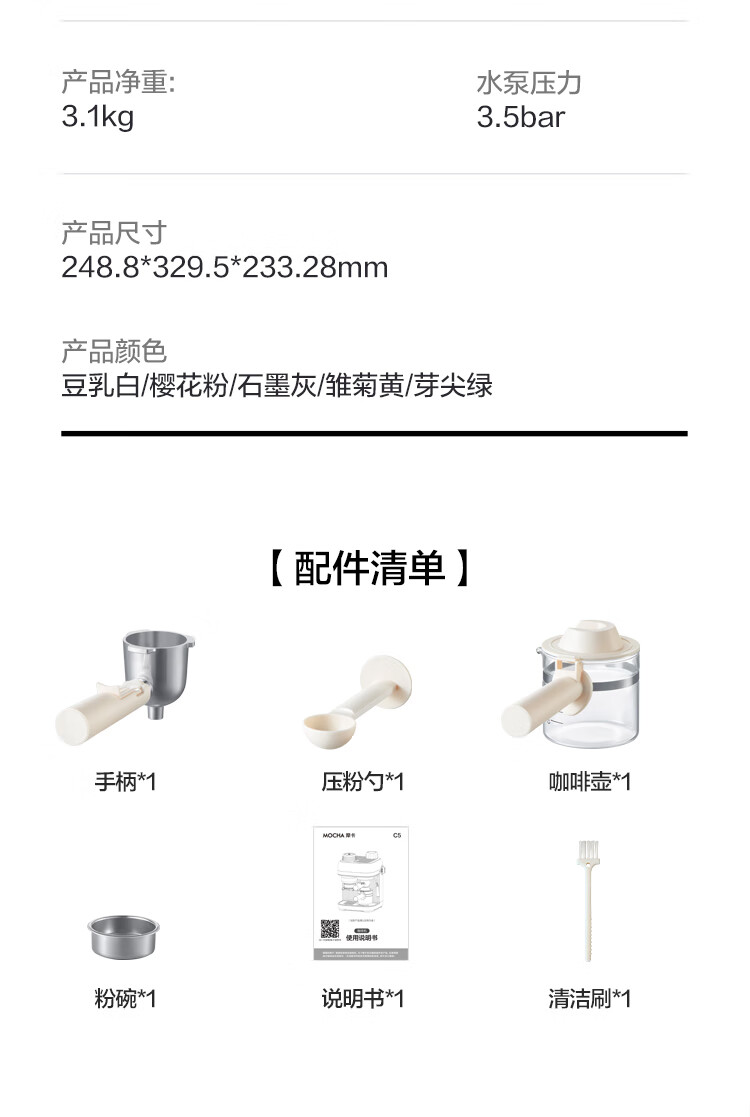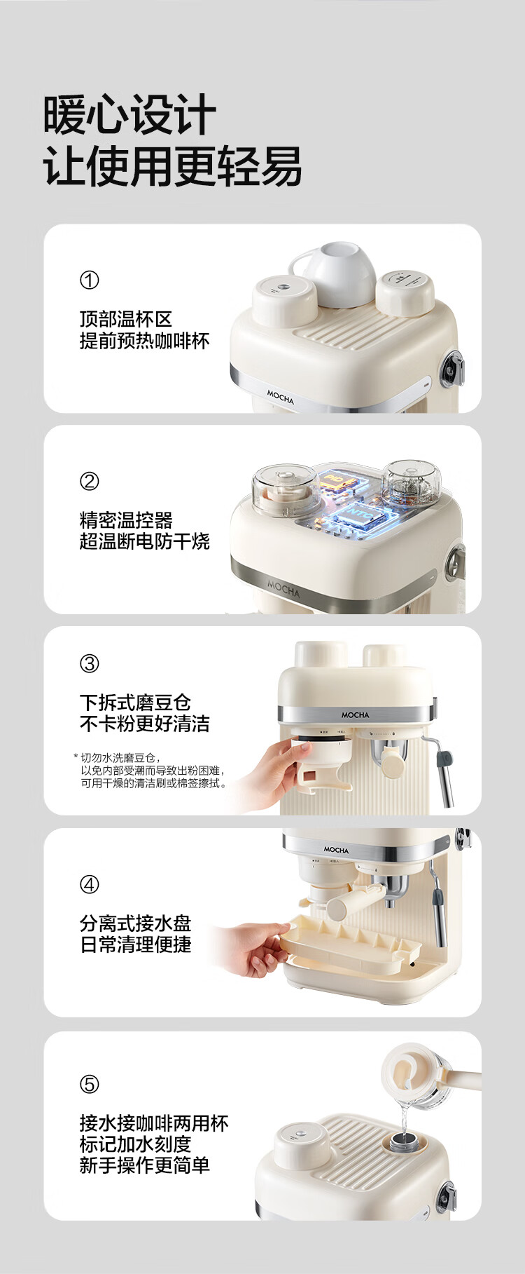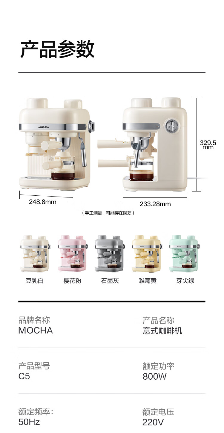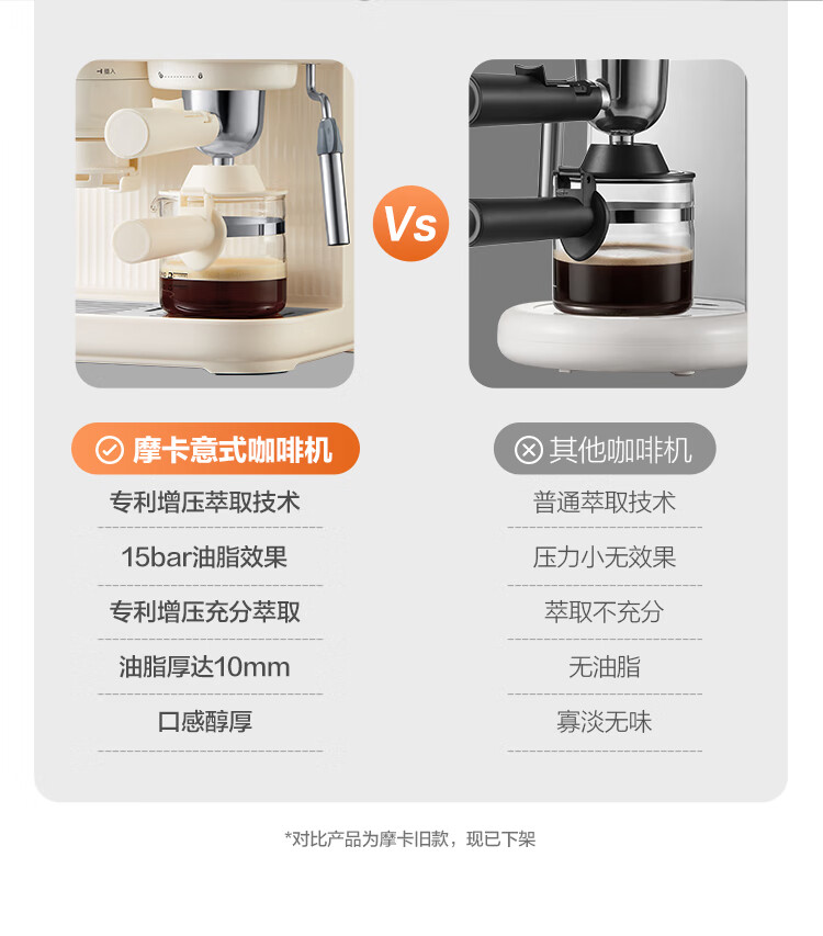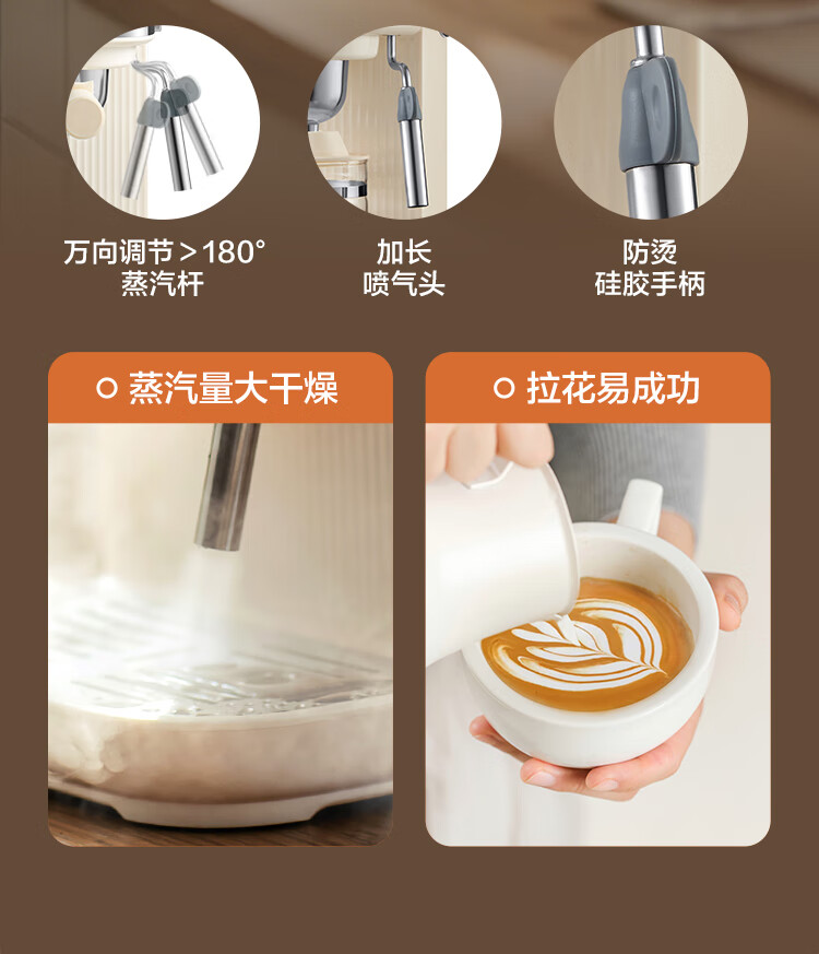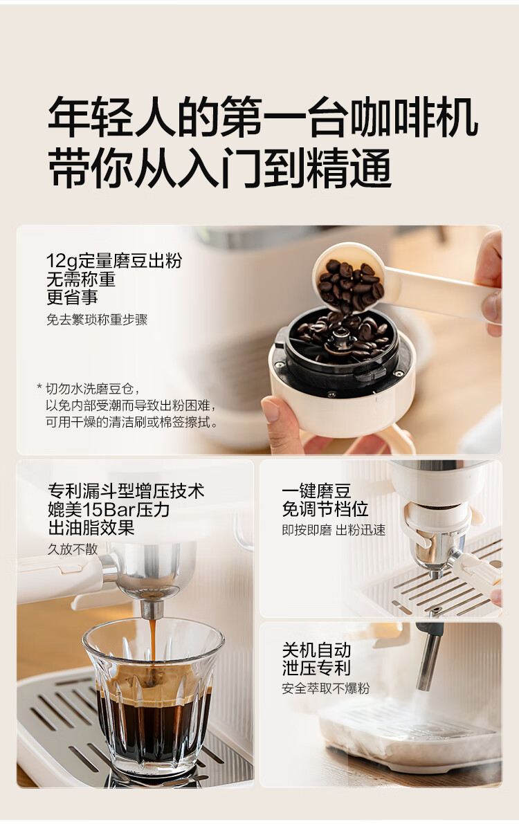 摩卡咖啡机 研磨一体机半自动意式美式家用小型磨豆2025新款萃取机 豆乳白
