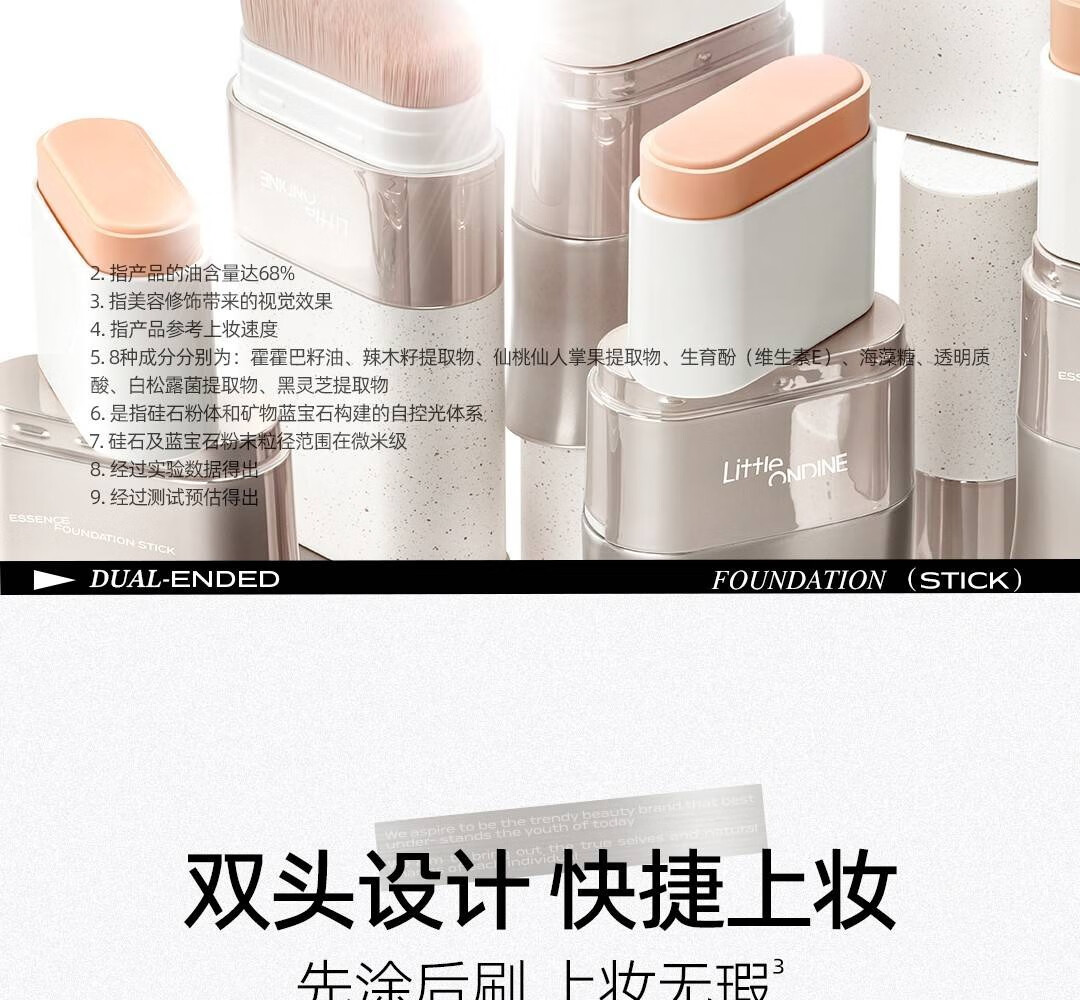 小奥汀(littleondine)粉底膏沁润精华粉底棒双头带刷头橡皮擦遮瑕持妆提亮不卡粉 【W02自然色】适合暖调自然肤色