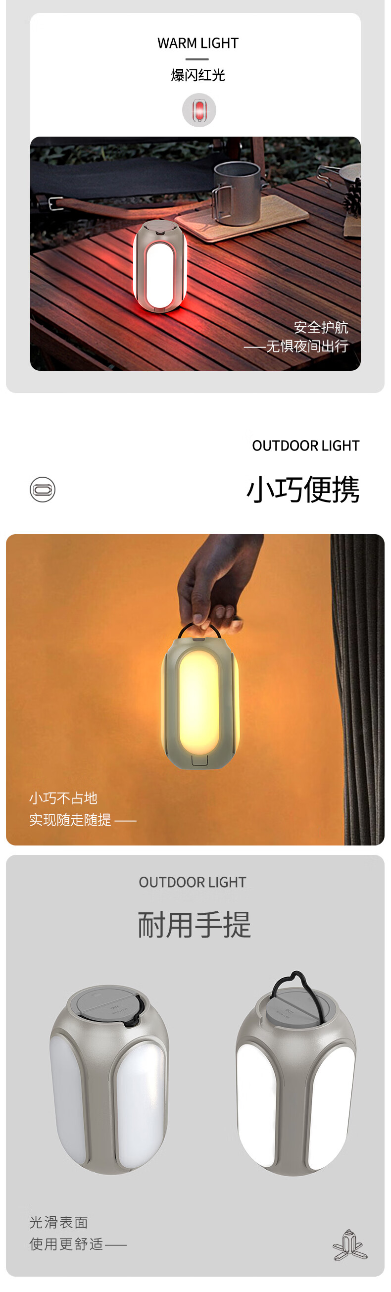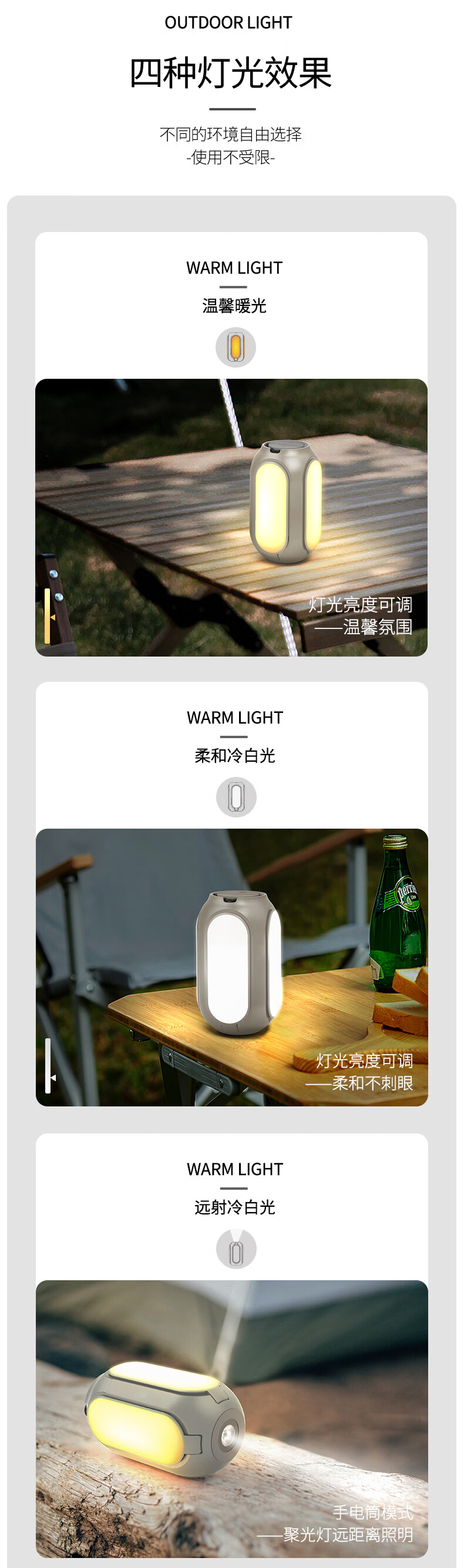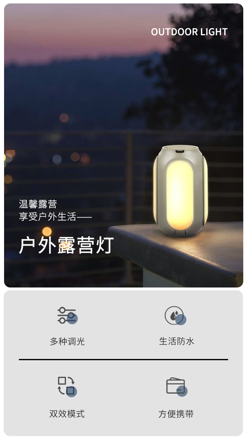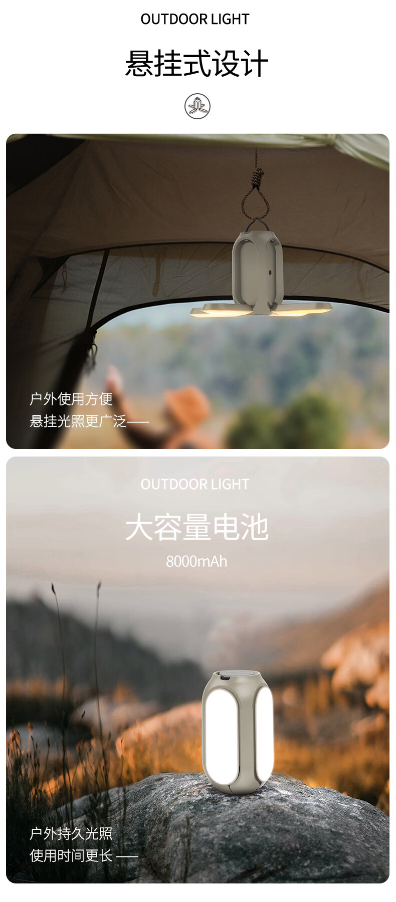 轻磁户外露营灯大容量长续航无级调节亮度白暖光可连接支架照明手电筒 灰色