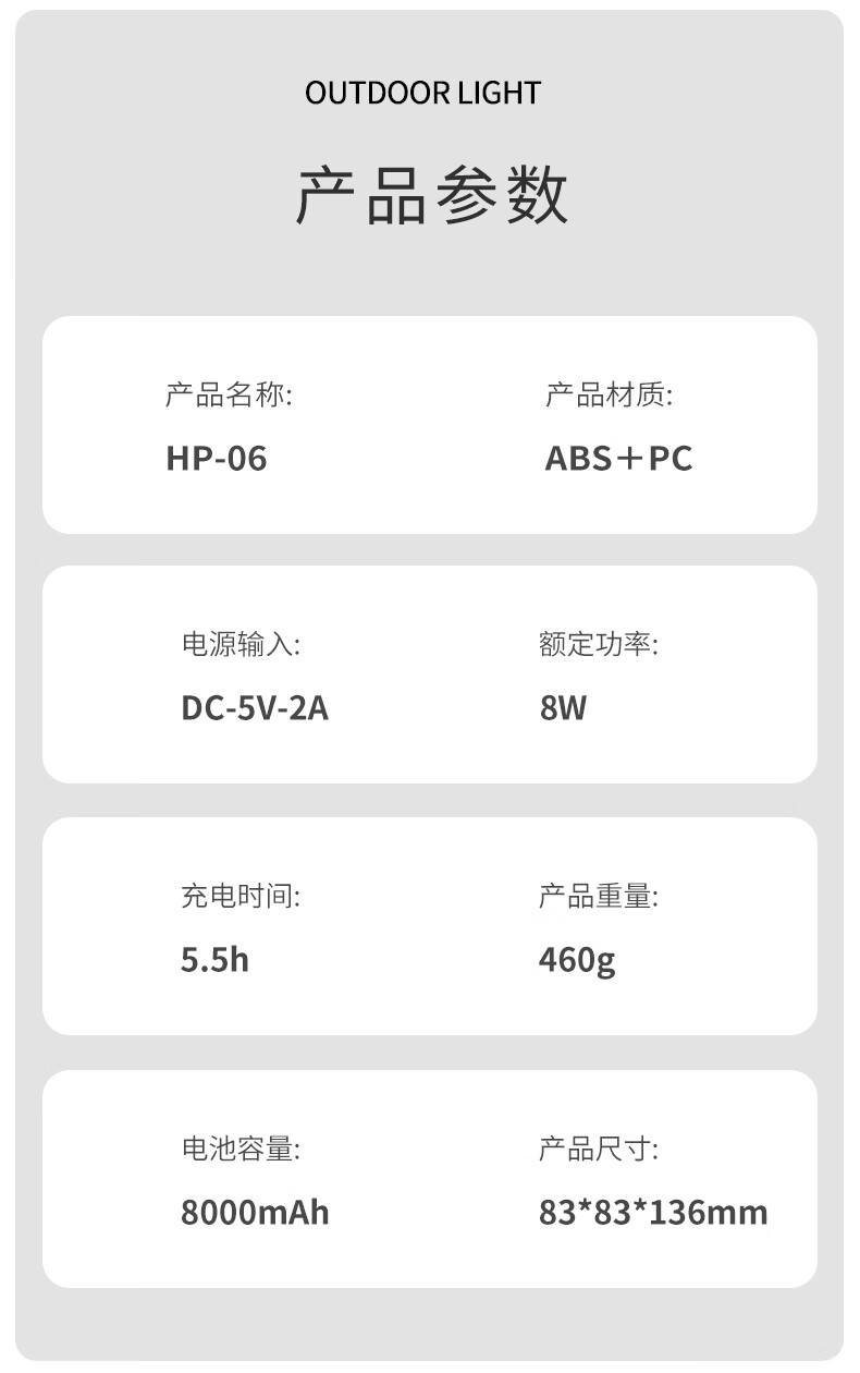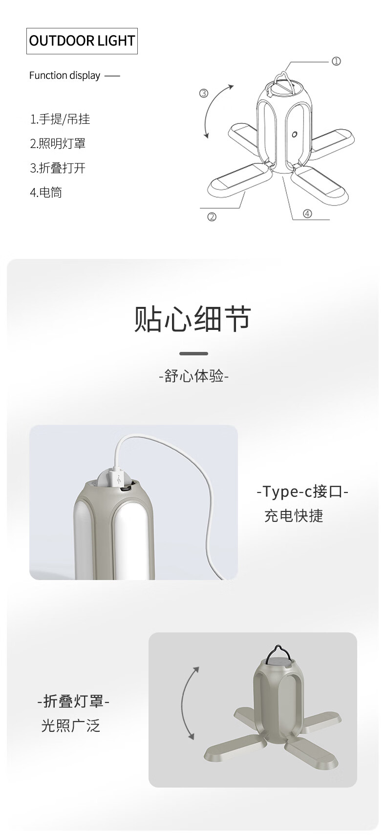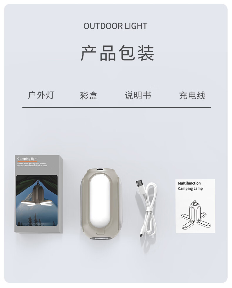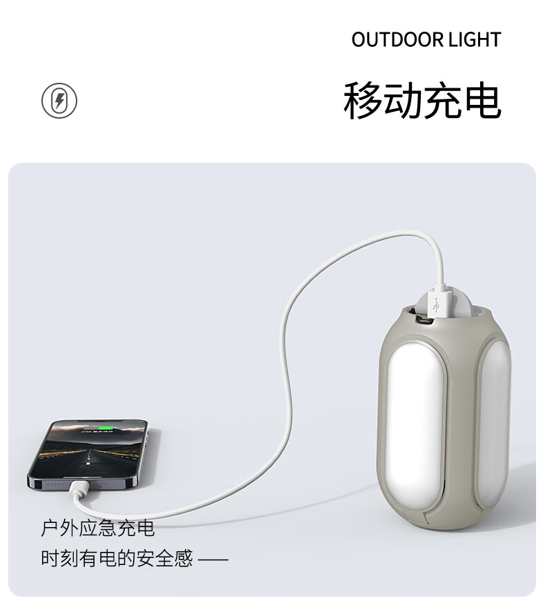 轻磁户外露营灯大容量长续航无级调节亮度白暖光可连接支架照明手电筒 灰色