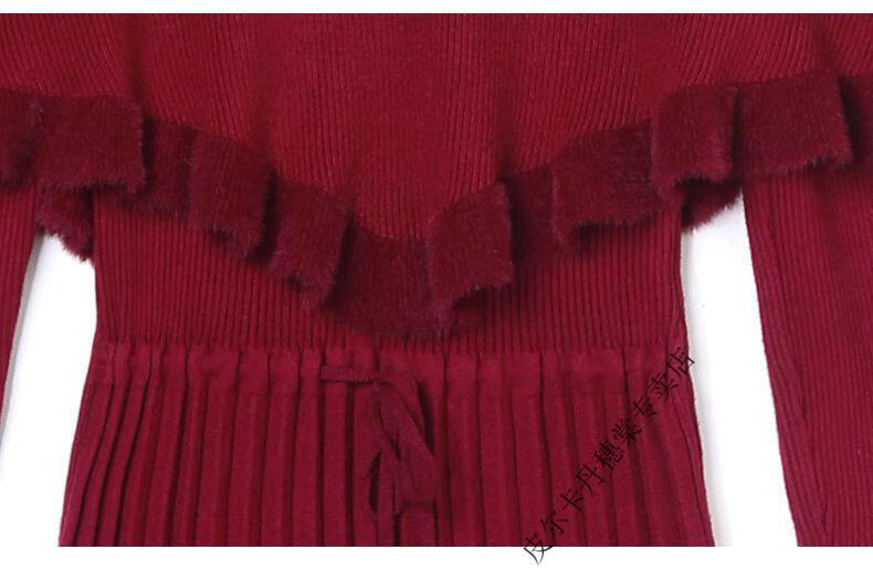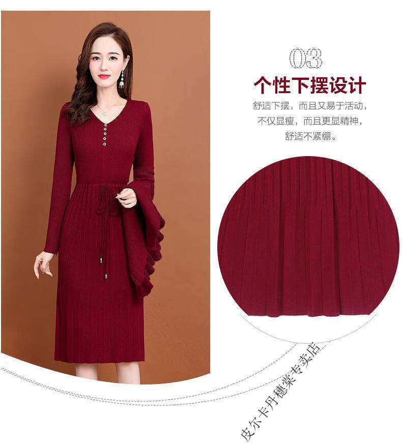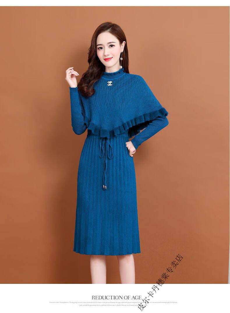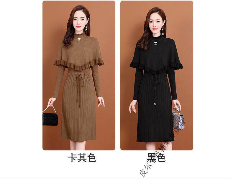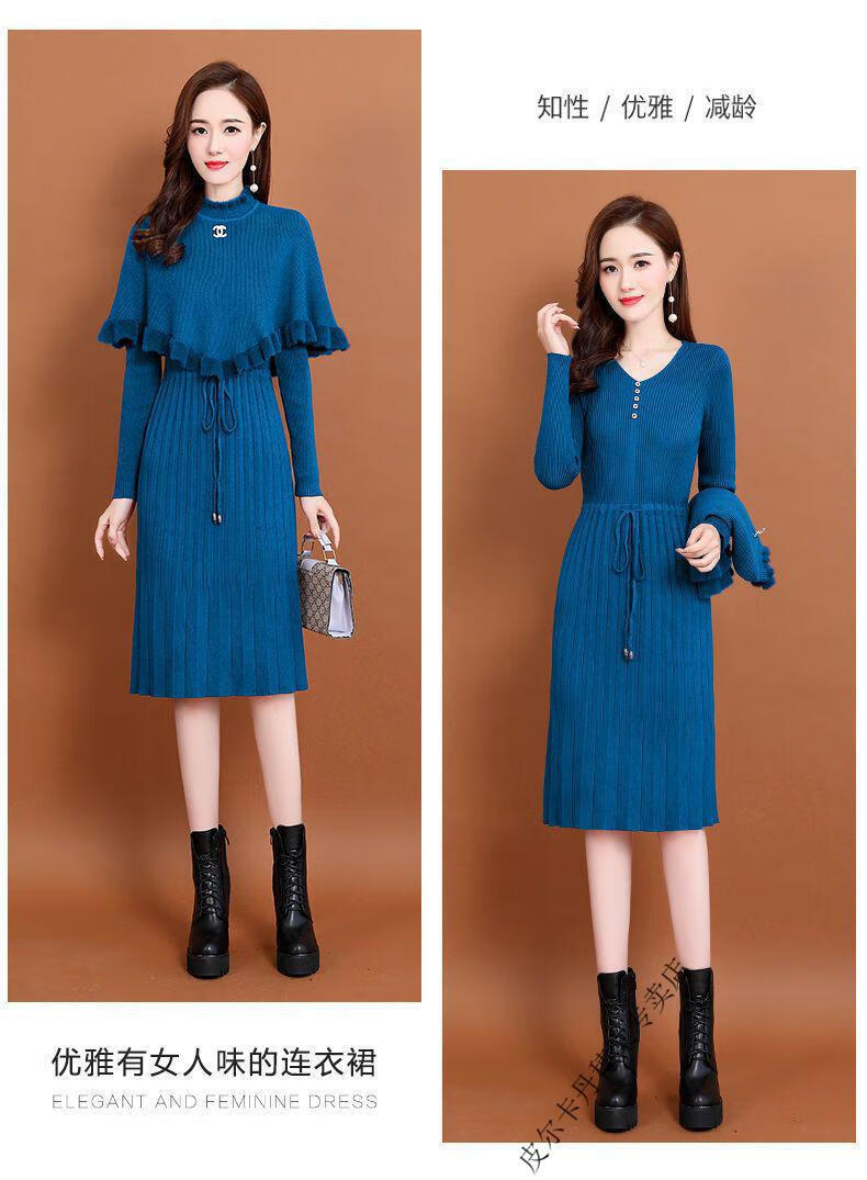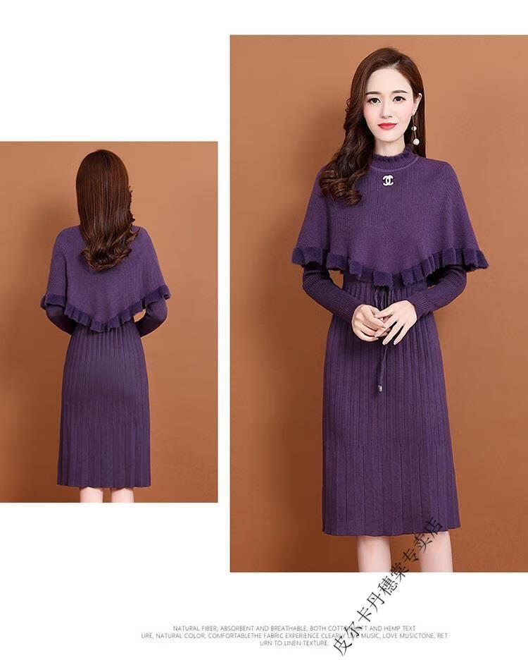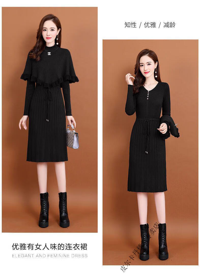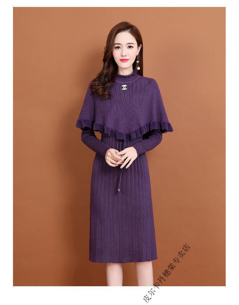 皮尔卡丹羊毛针织连衣裙女加绒加厚2026新款两件j套秋冬季斗篷气质修身显 酒红色 3XL 建议135-150斤