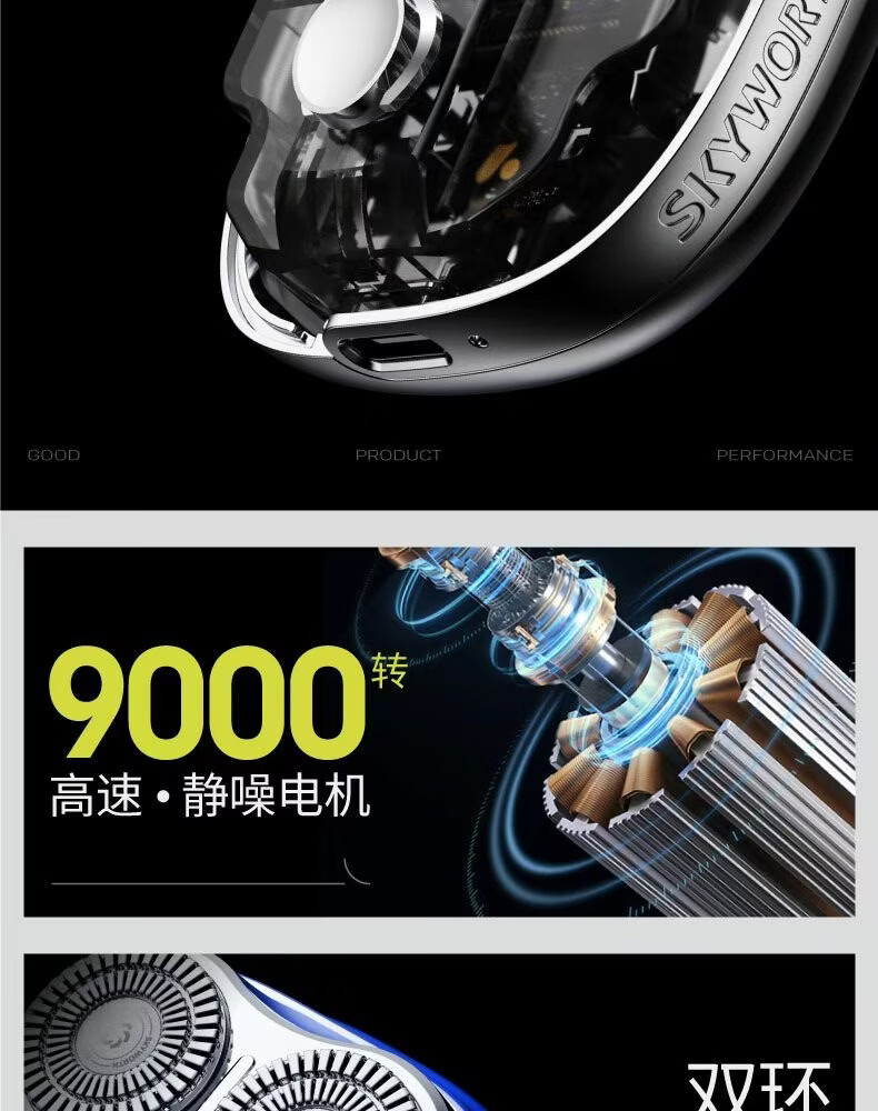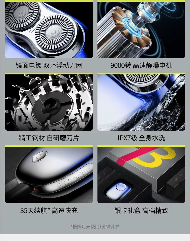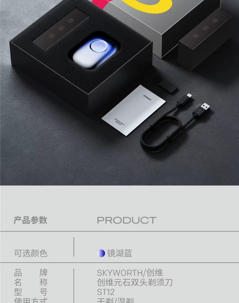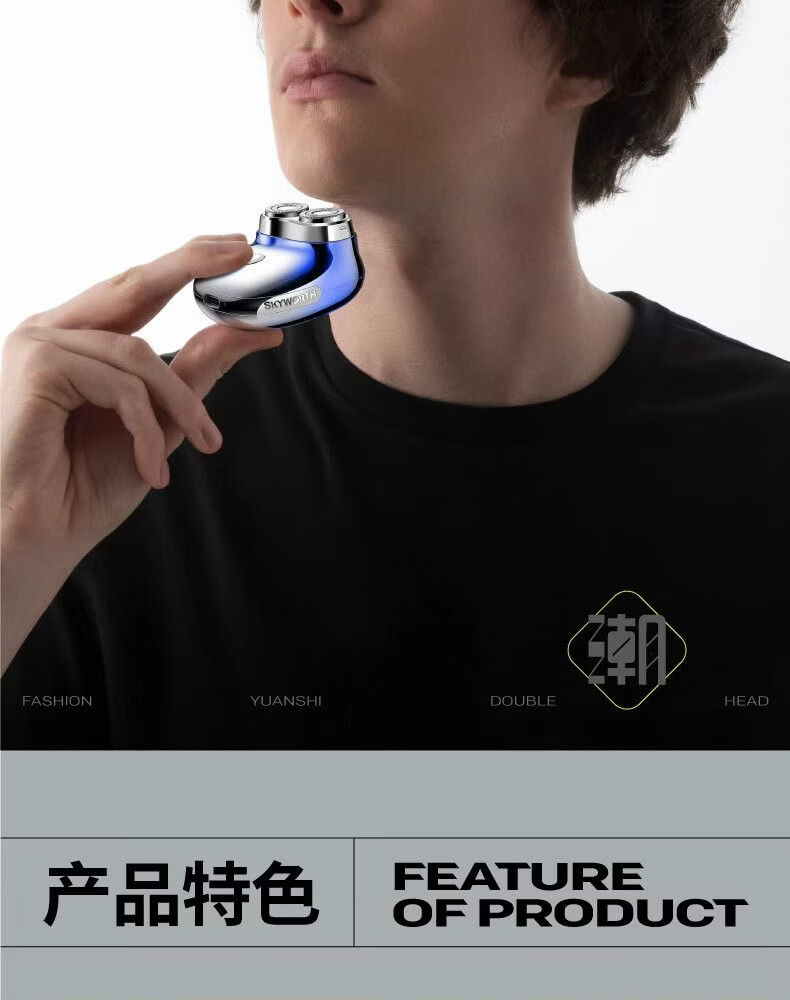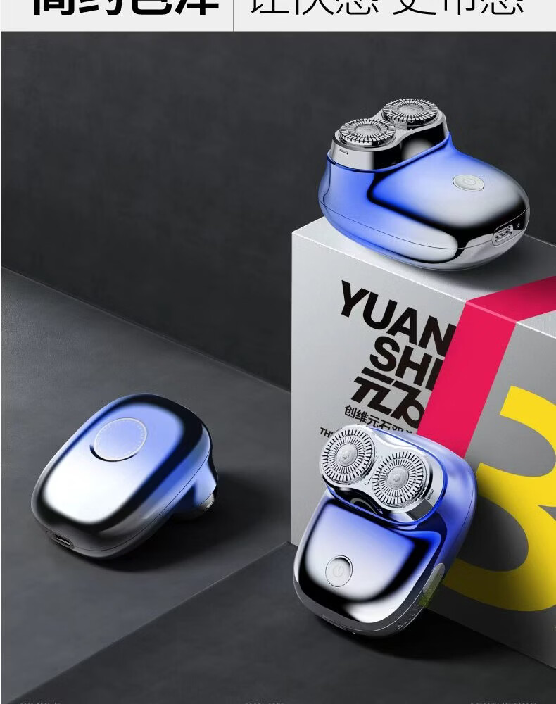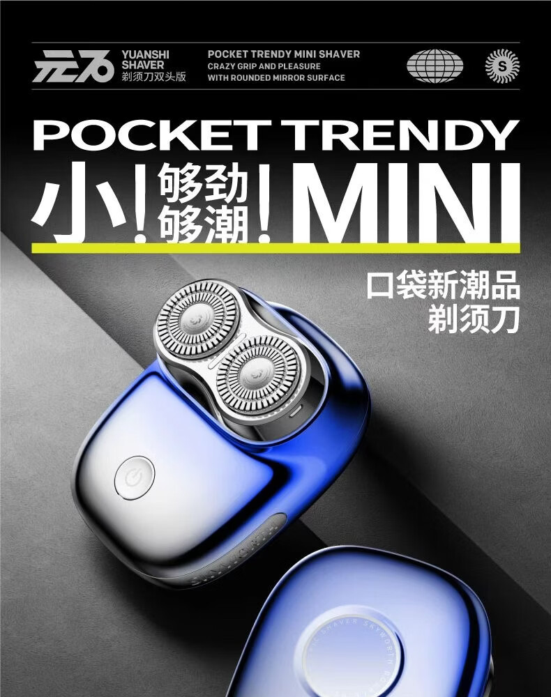 创维元石mini剃须刀男士电动剃须刀旋转式刮胡刀便携剃胡须刀全身水洗新年生日情人节礼物送男友送父亲 镜湖蓝【爆款便携】元石nimi