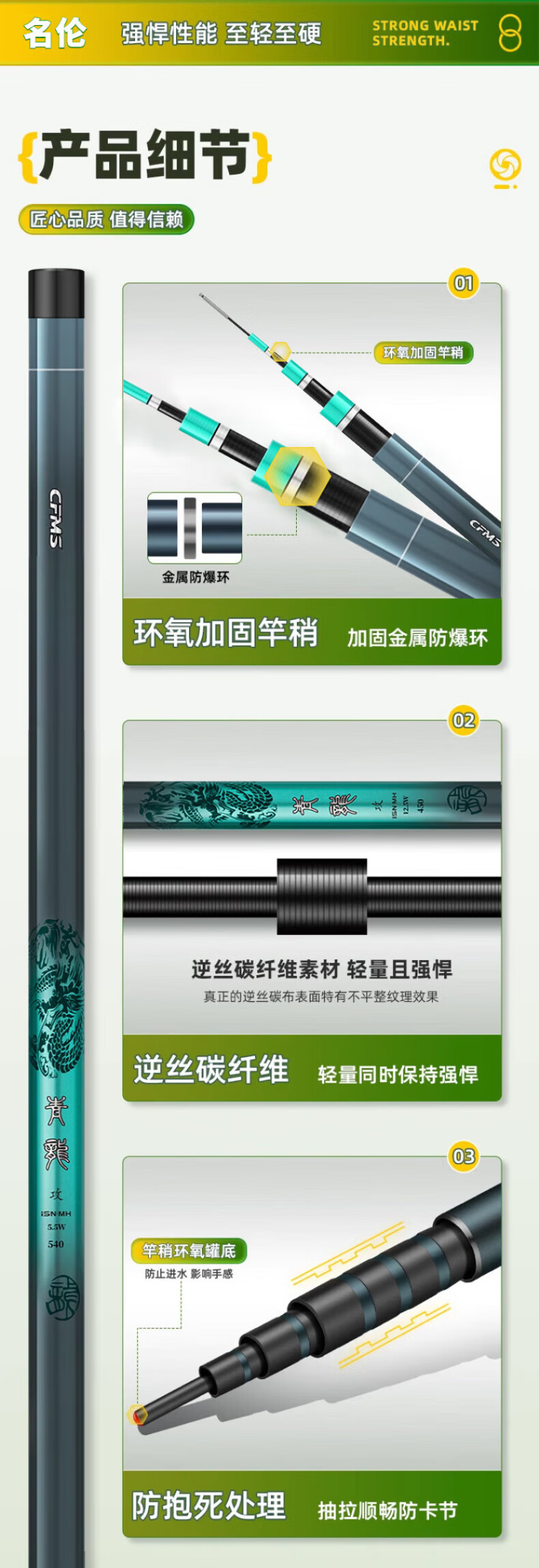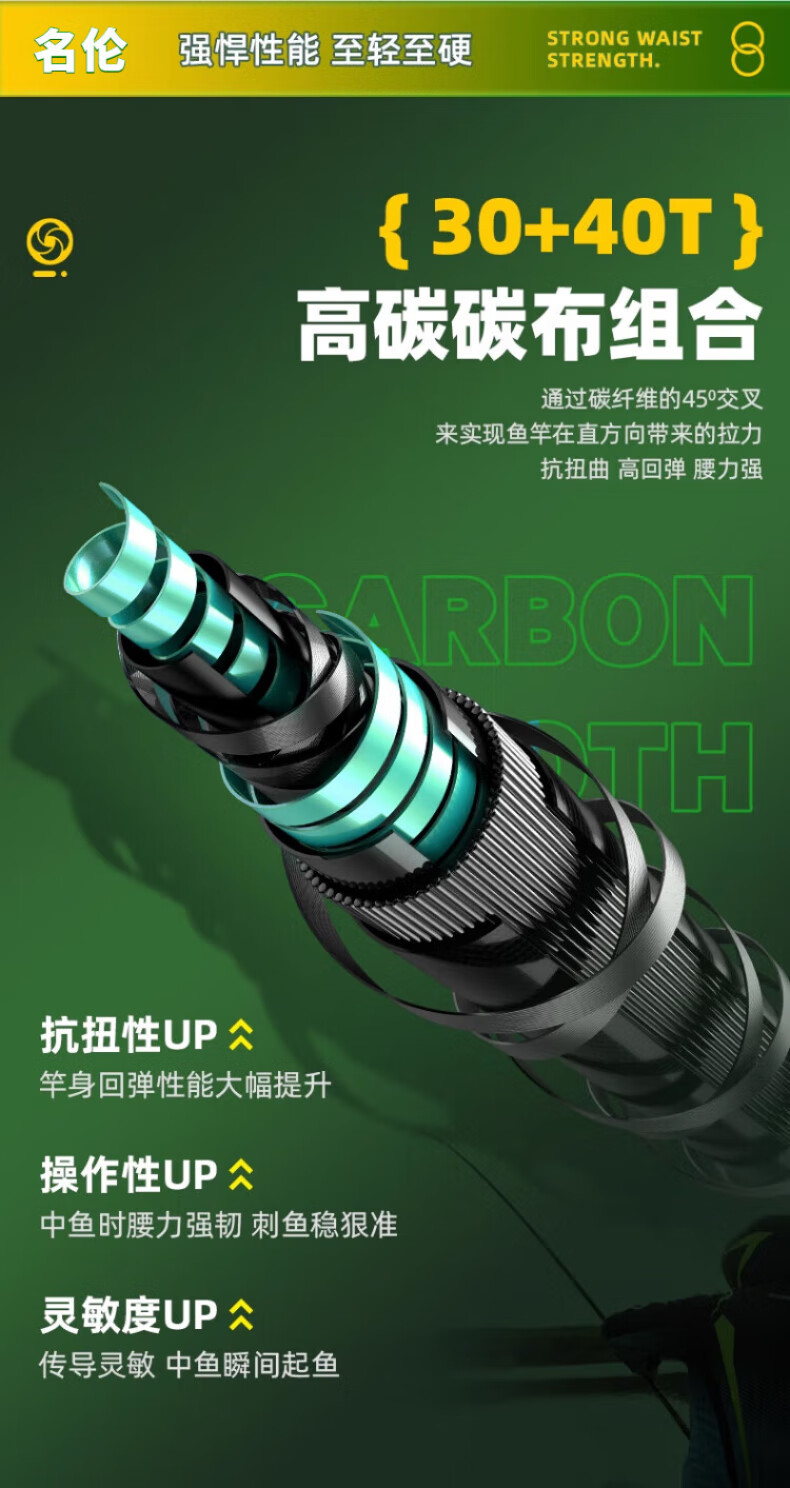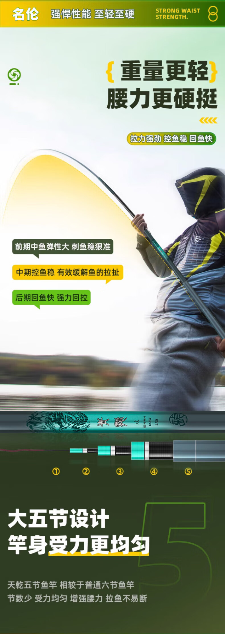名伦岚官方香港名伦青龙攻鱼竿手竿十大旗舰渔具品牌超轻硬大物台钓鱼竿 5.7m 【6H19调大物版】+竿稍+礼包