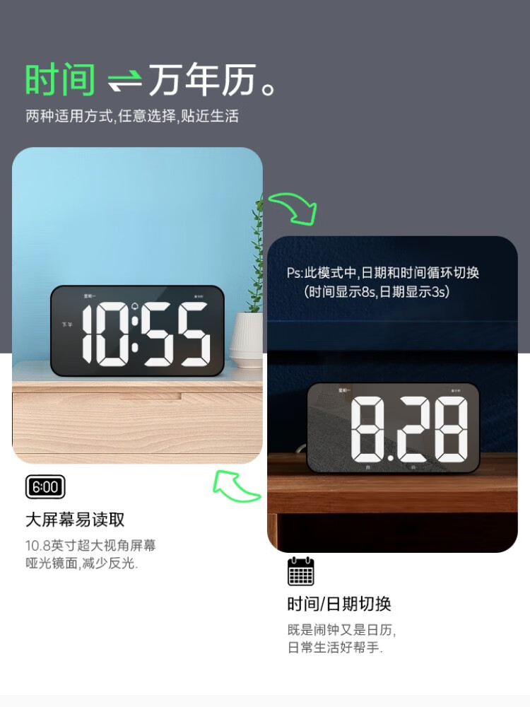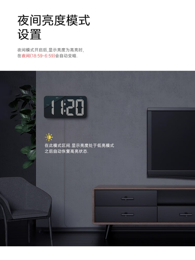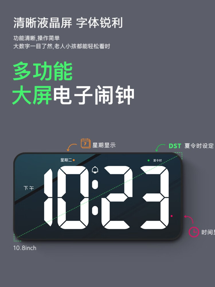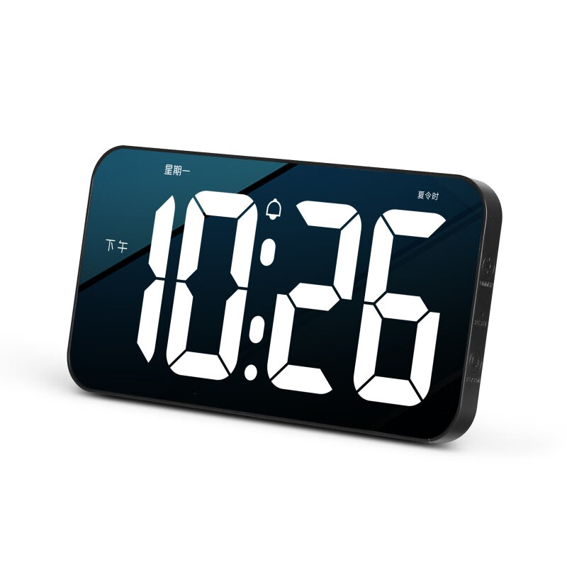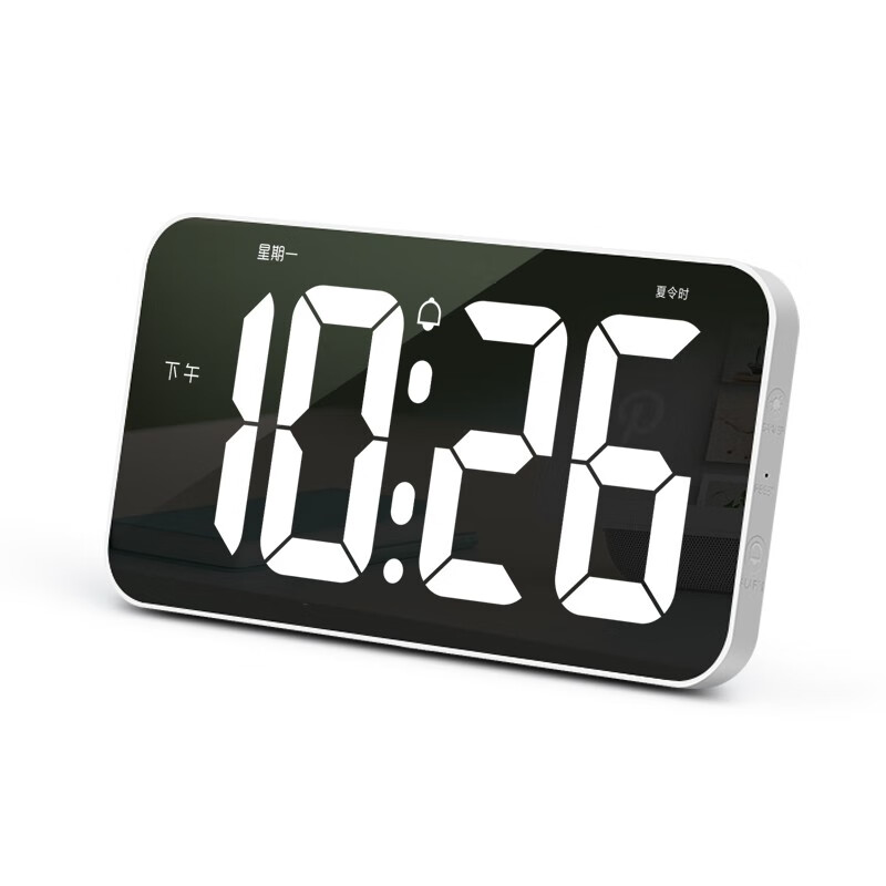 智能大屏数字闹钟 LED镜面大尺寸挂钟10.8寸数字时钟简约挂墙时钟 白色