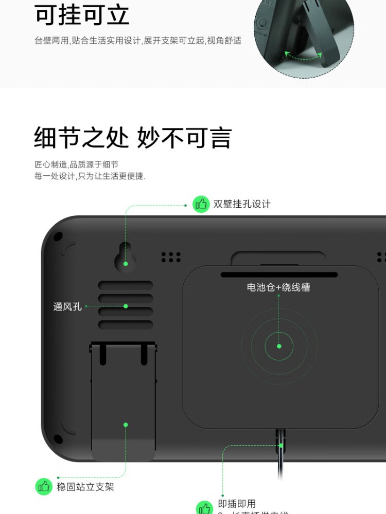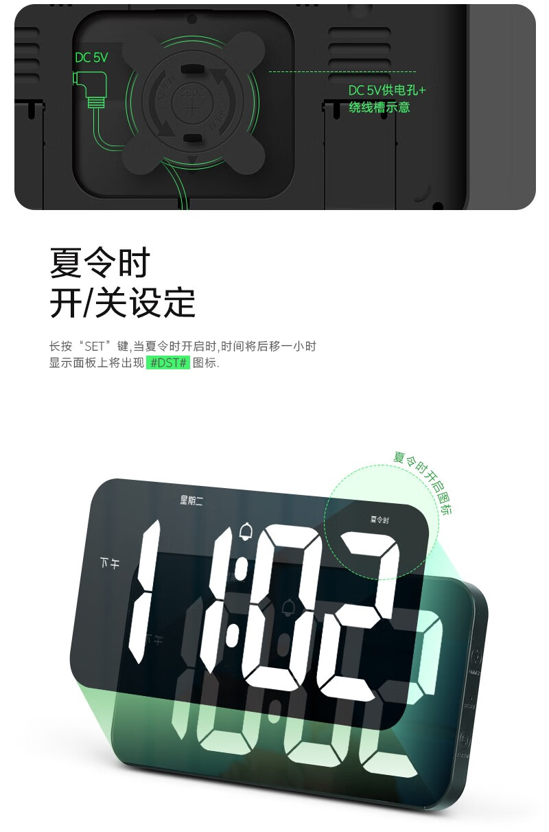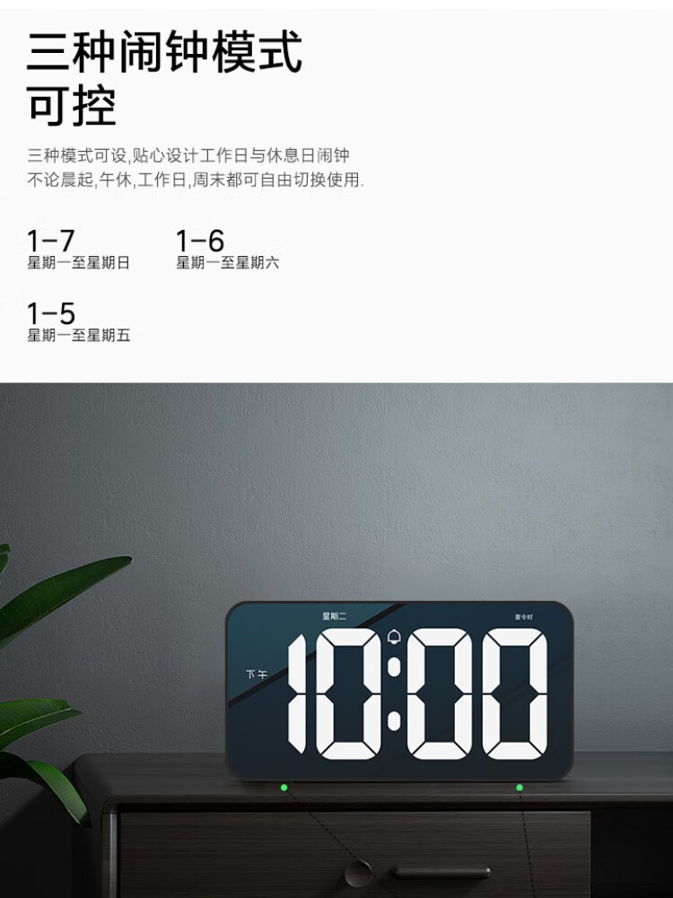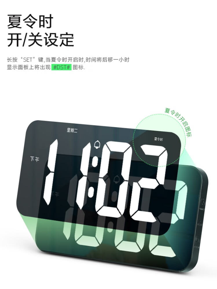 智能大屏数字闹钟 LED镜面大尺寸挂钟10.8寸数字时钟简约挂墙时钟 白色