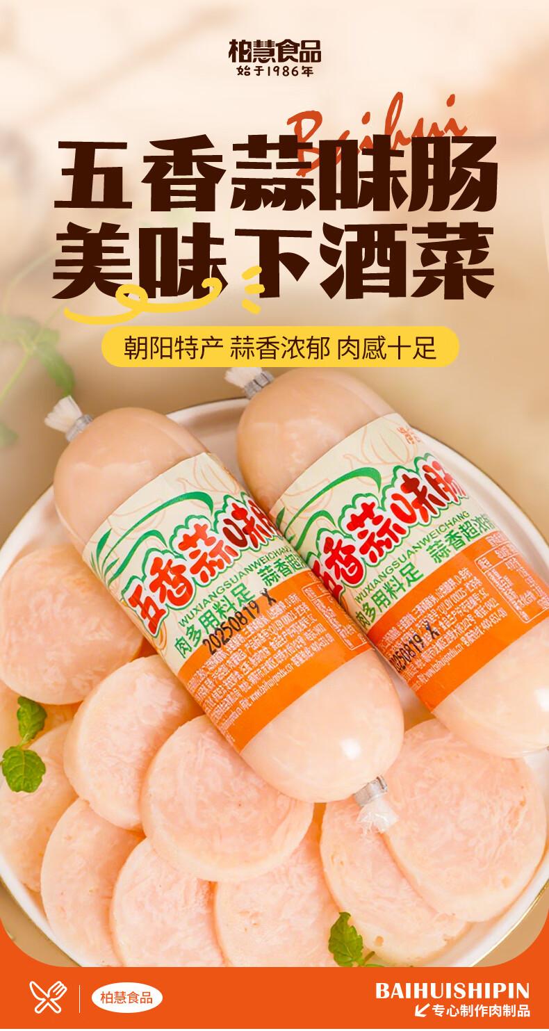 柏慧食品东北白色小蒜肠120g*5根五香蒜肠即食香肠火腿肠下酒菜休闲零食 五香小蒜肠5根