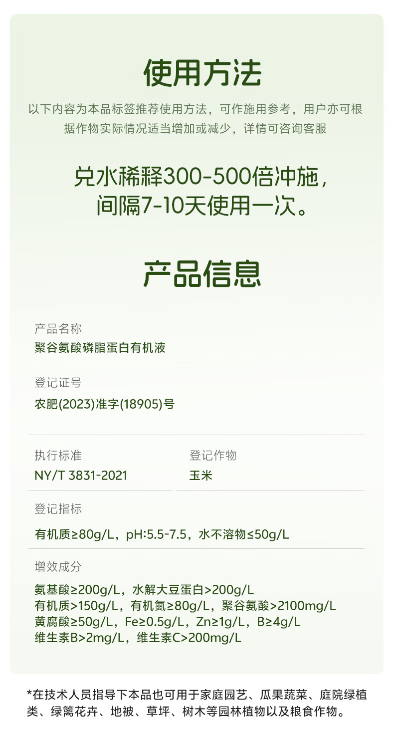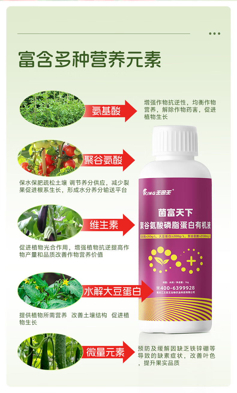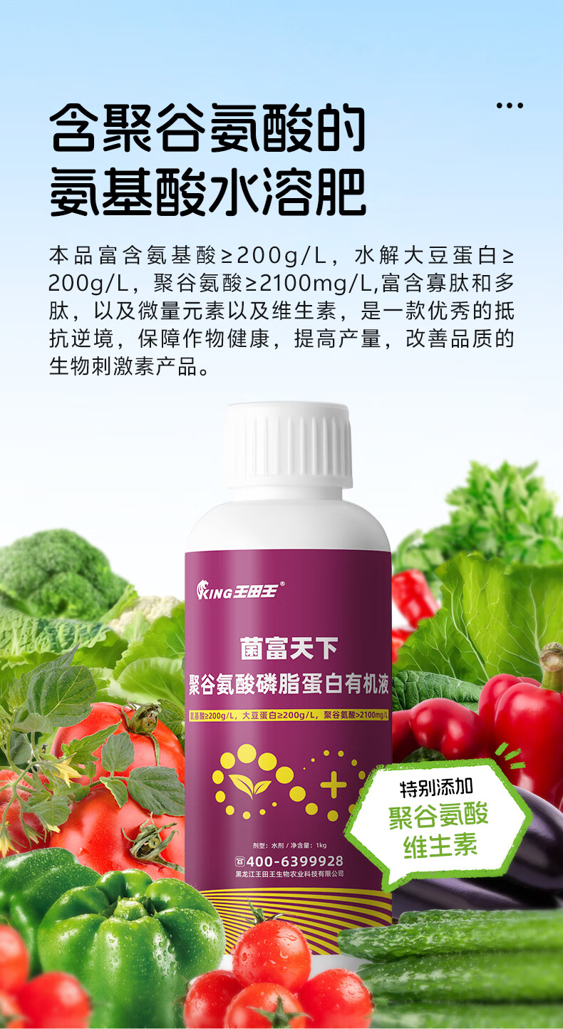 王田王聚谷氨酸氨基酸水溶肥果树蔬菜花卉西红柿肥料 抗病抗逆叶面肥 聚谷氨酸磷脂蛋白有机液1kg*1瓶
