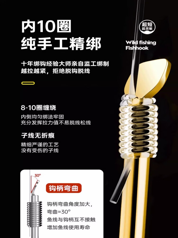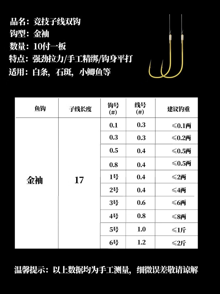 元族【严选好物】短子线双钩金袖0.5小号袖钩小鱼通用款溪流野钓小鱼 0.5号小鱼通用金色袖钩50付