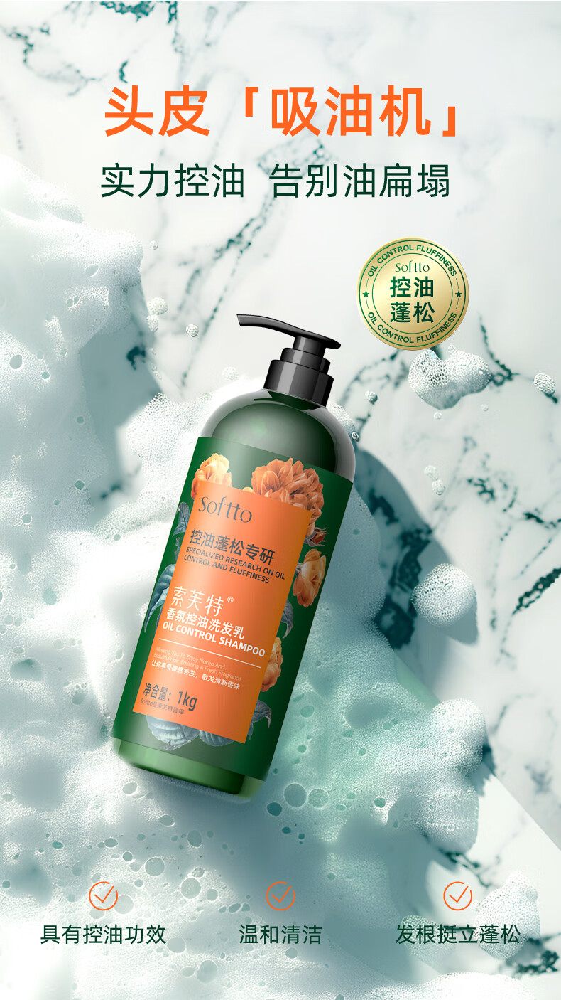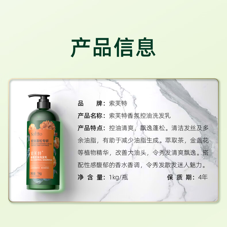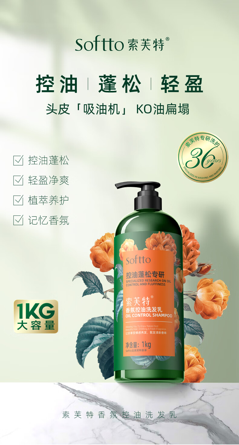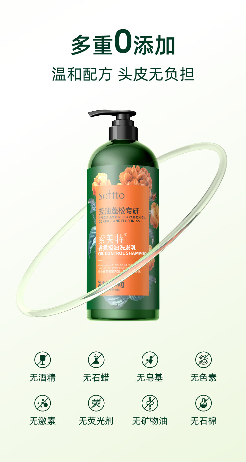 索芙特洗发水控油去屑洗发露蓬松清爽洗头膏 香氛去屑净爽洗发乳1kg+ 8g*5袋