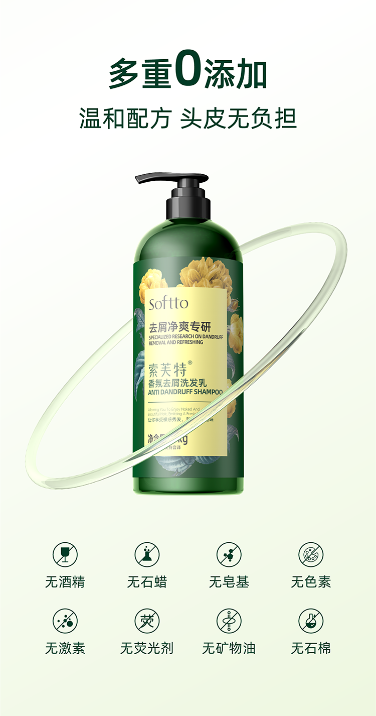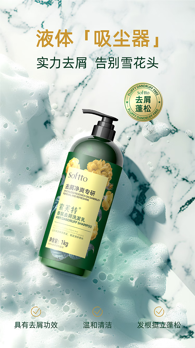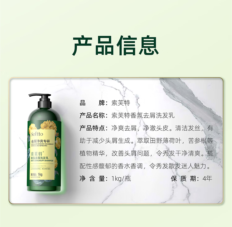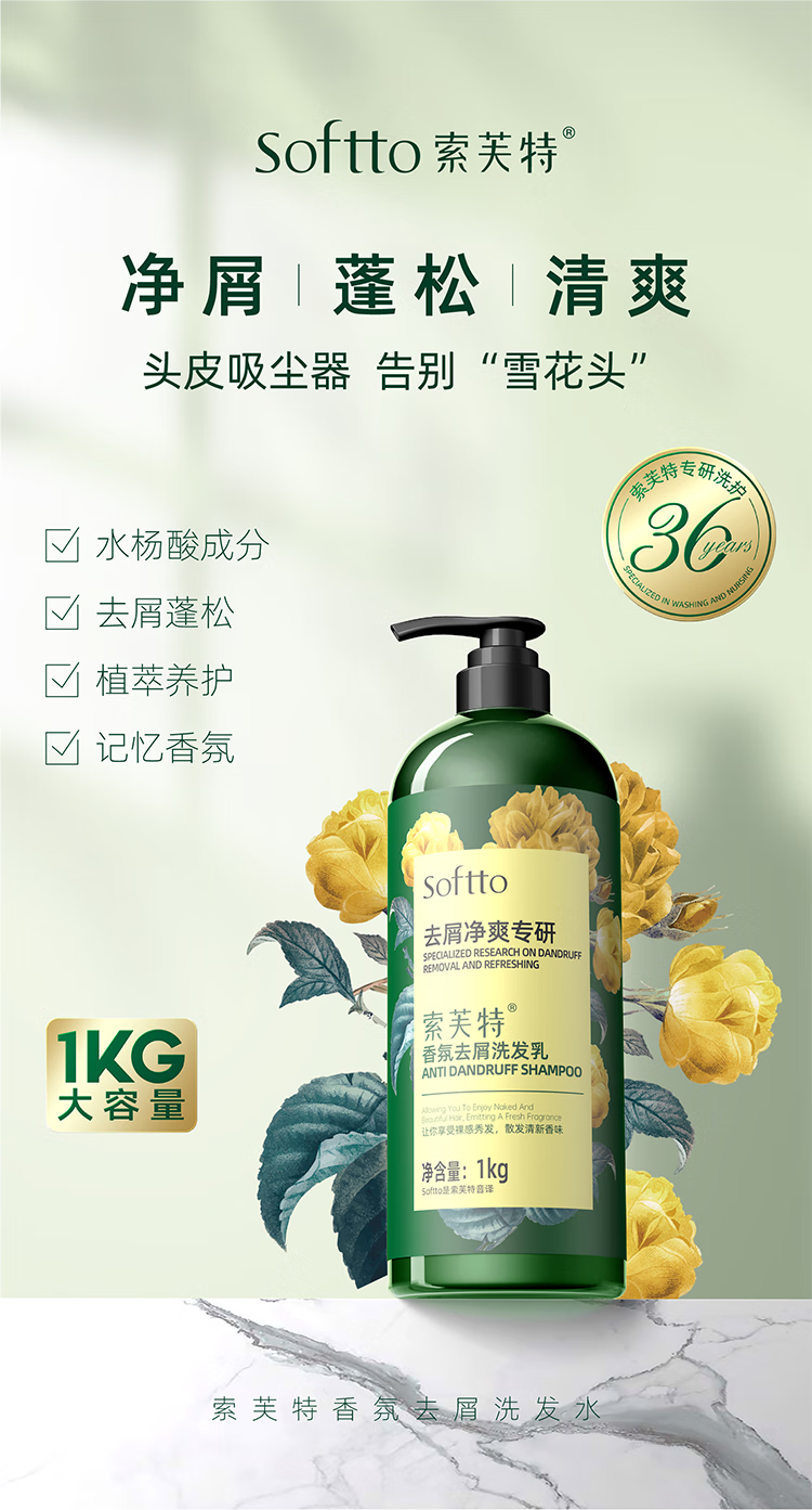 索芙特洗发水控油去屑洗发露蓬松清爽洗头膏 香氛去屑净爽洗发乳1kg+ 8g*5袋