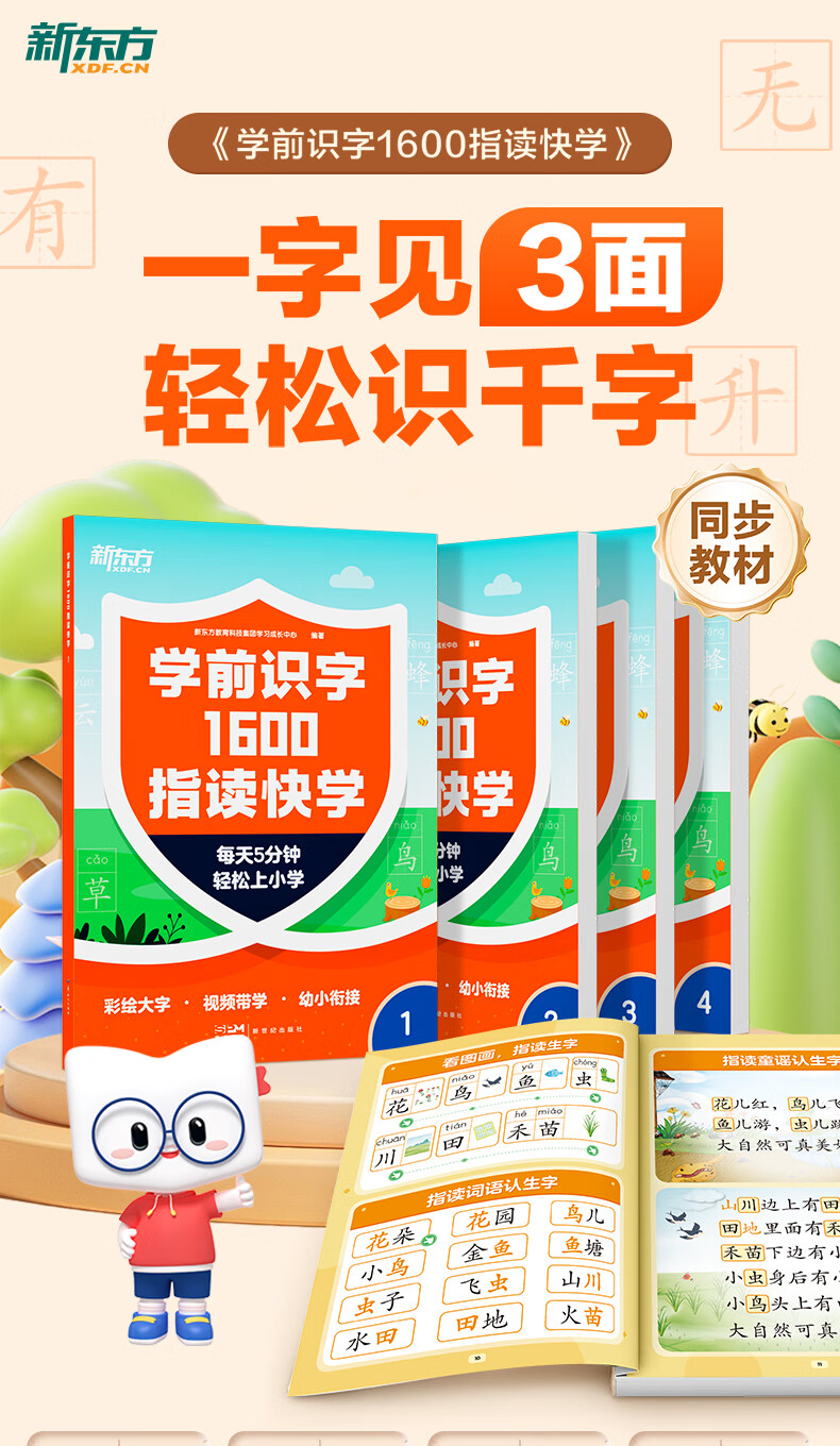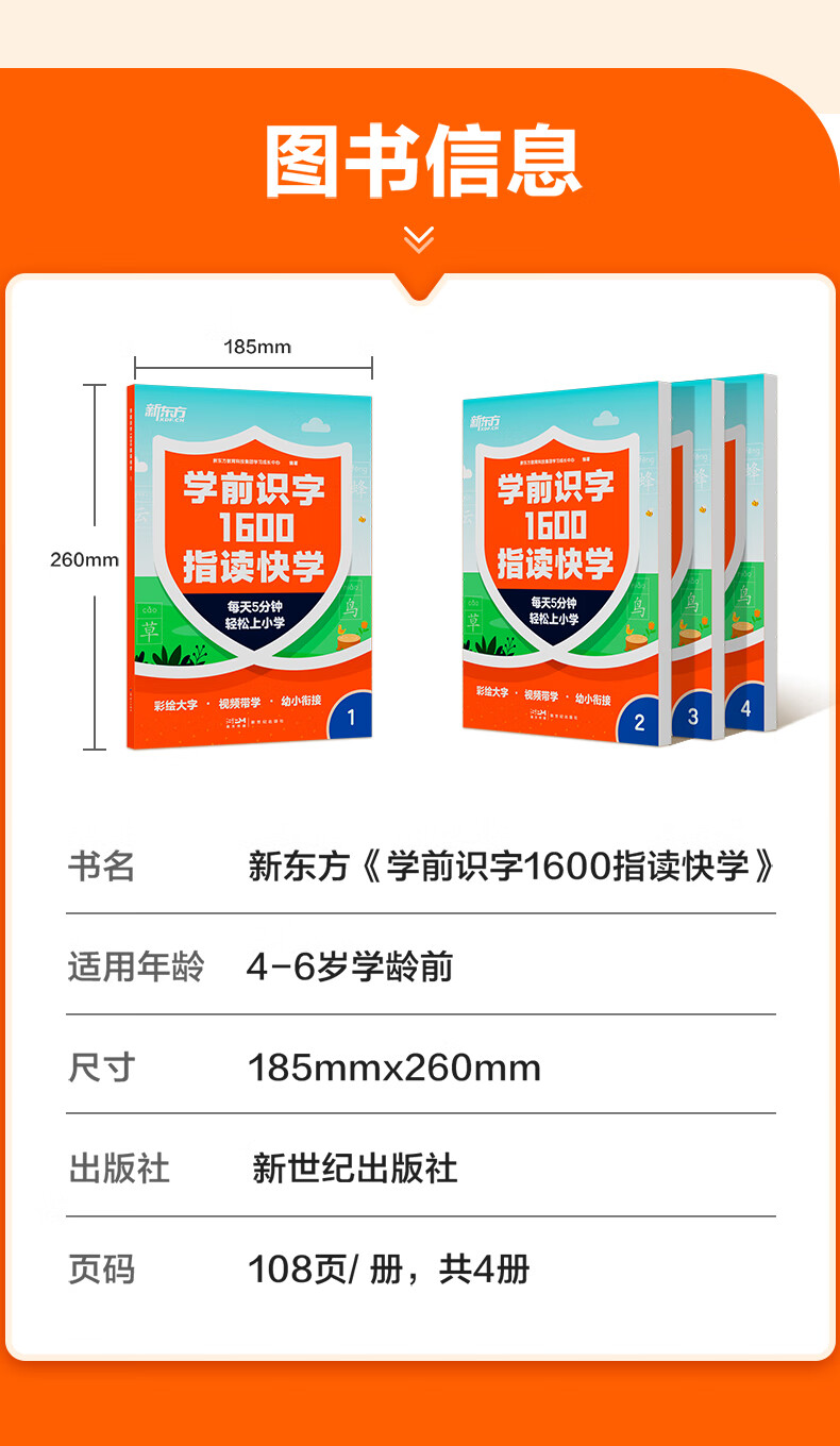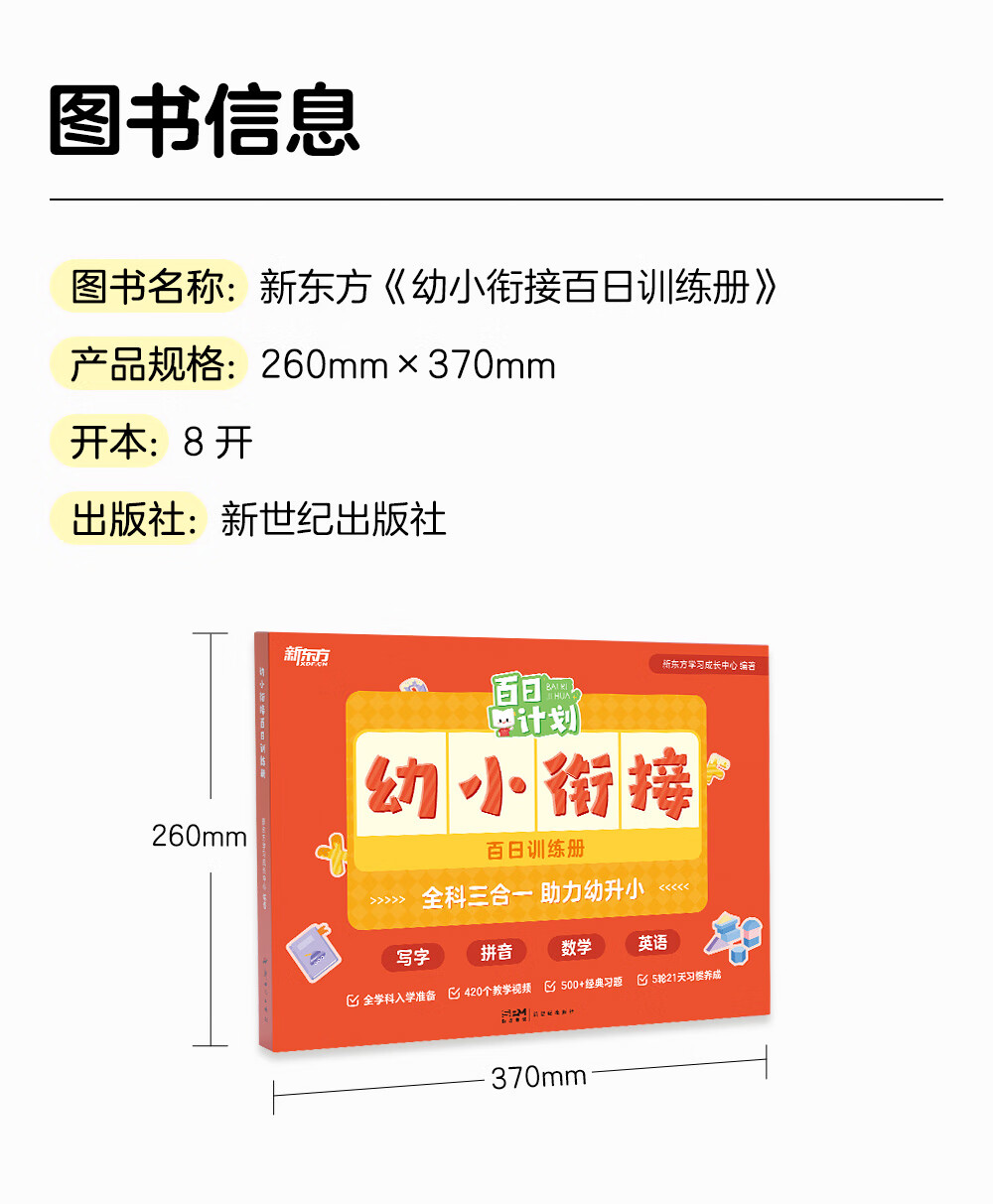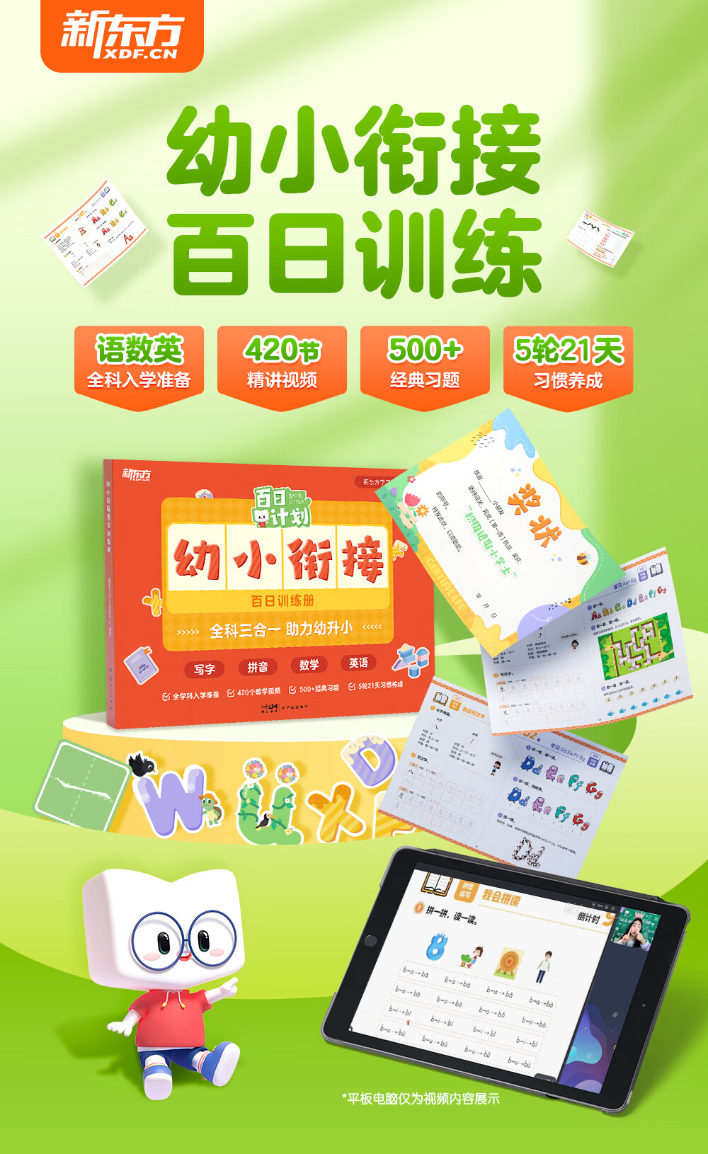 新东方 幼小衔接百日训练册 衔接一年级写字 拼音 数学 英语 英文字母视频讲解 幼升小阶段 学前识字1600指读快学 幼小衔接