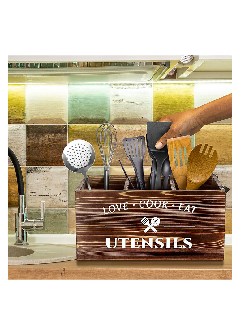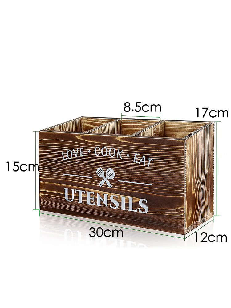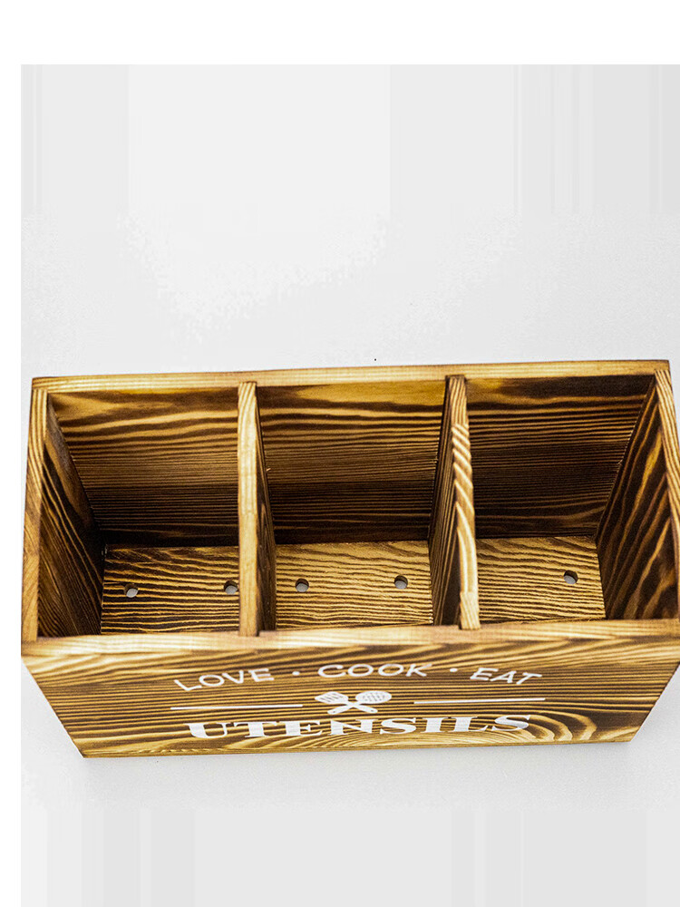 欧式刀叉收纳盒 家用厨房分格分类木质整理盒 筷子勺子餐具置物架 灰色(长30CM,宽12CM,高17CM)