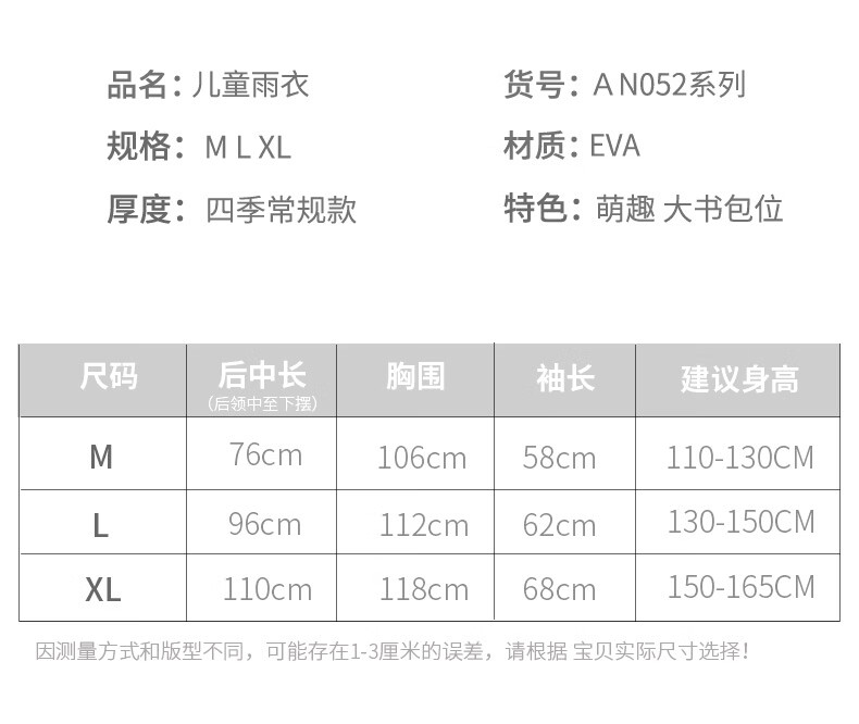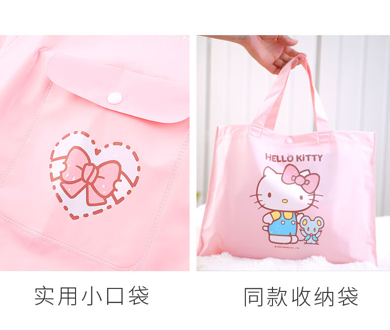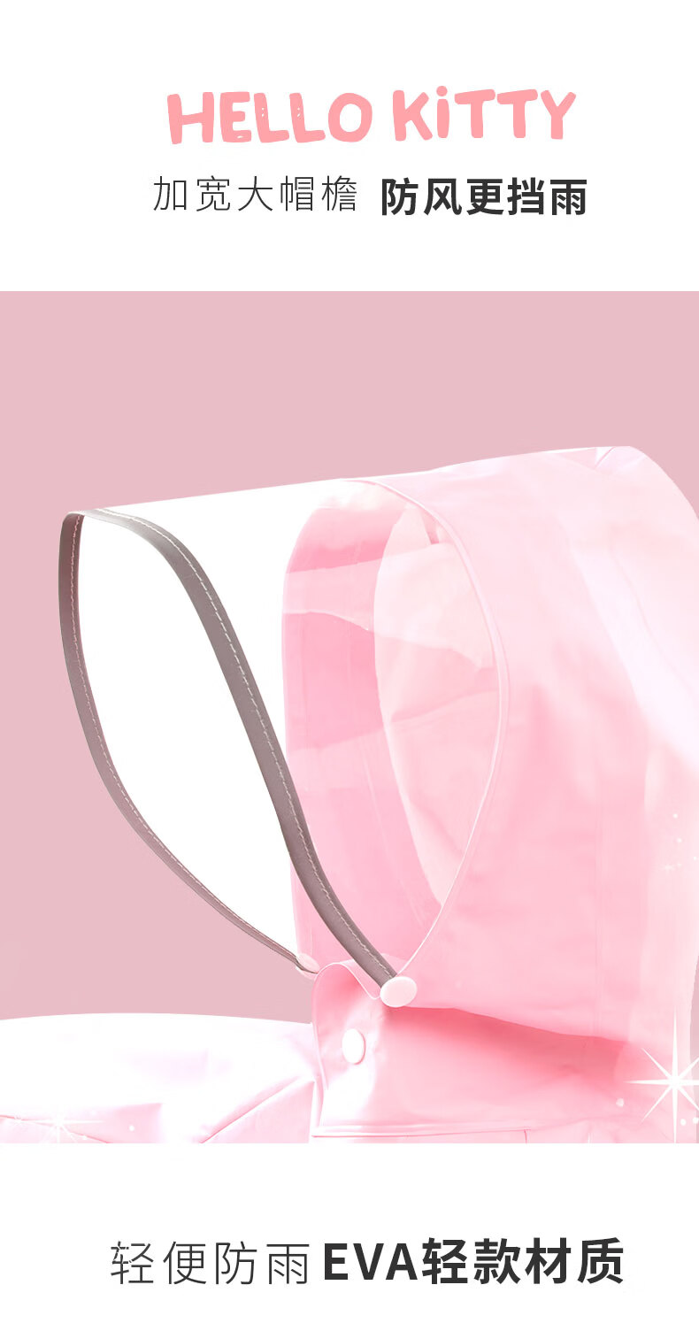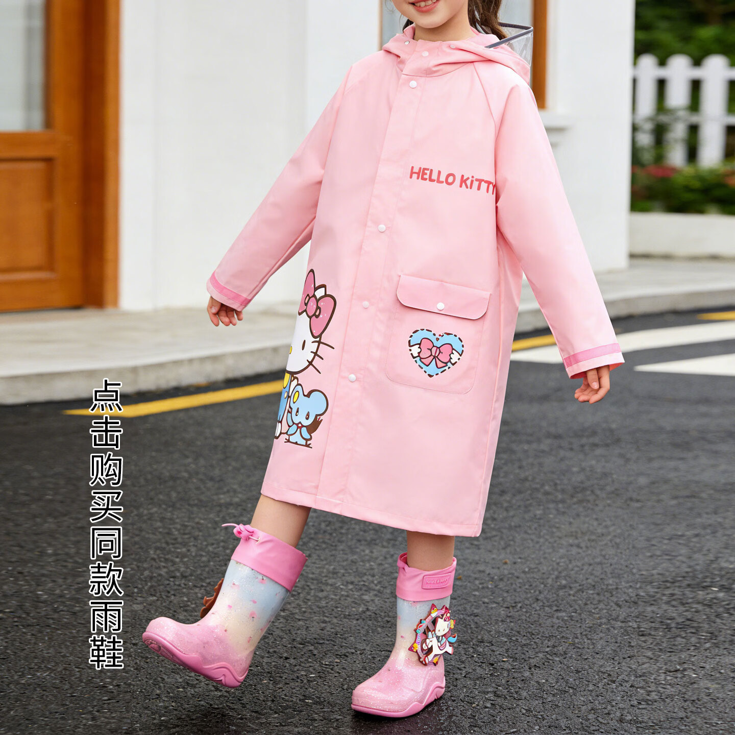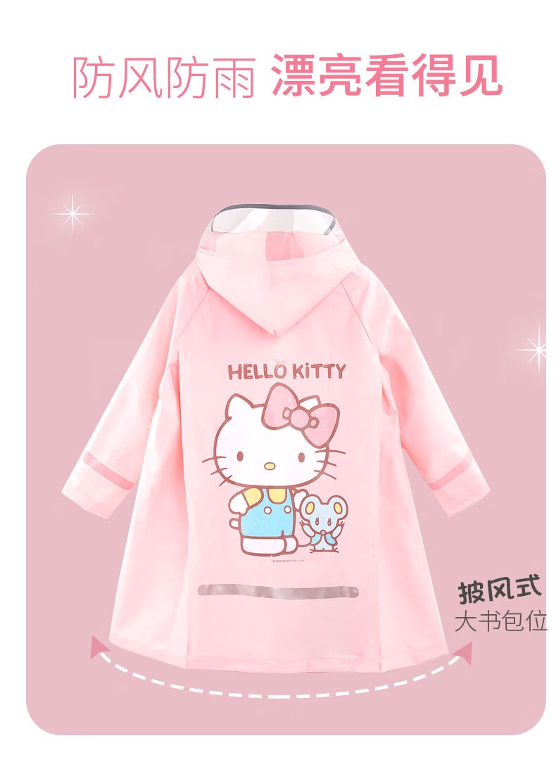 Hello Kitty儿童雨衣女童带书包位学生上学专用拉链披风式雨披女孩防水幼儿园 凯蒂猫粉色 升级拉链款 052 XL码/建议身高150-165cm