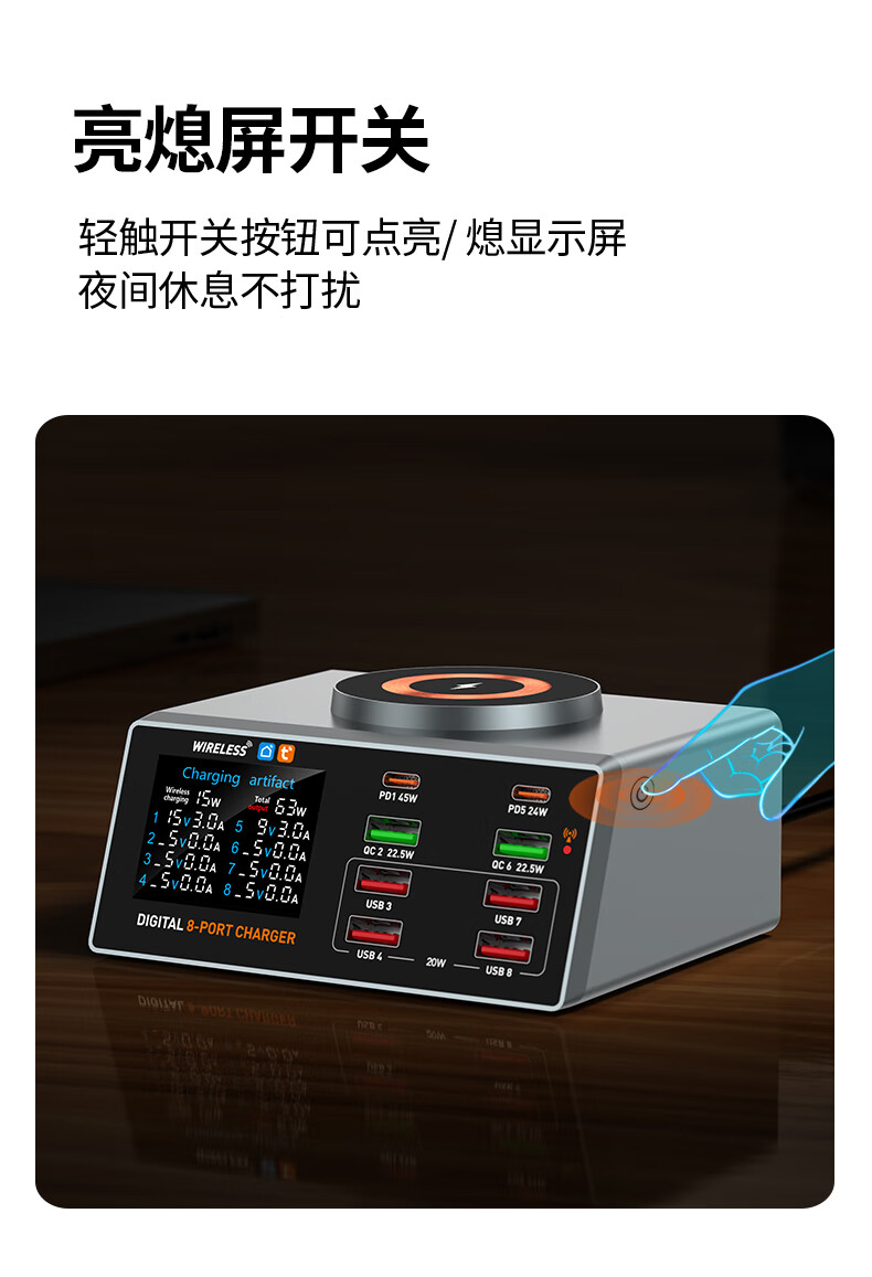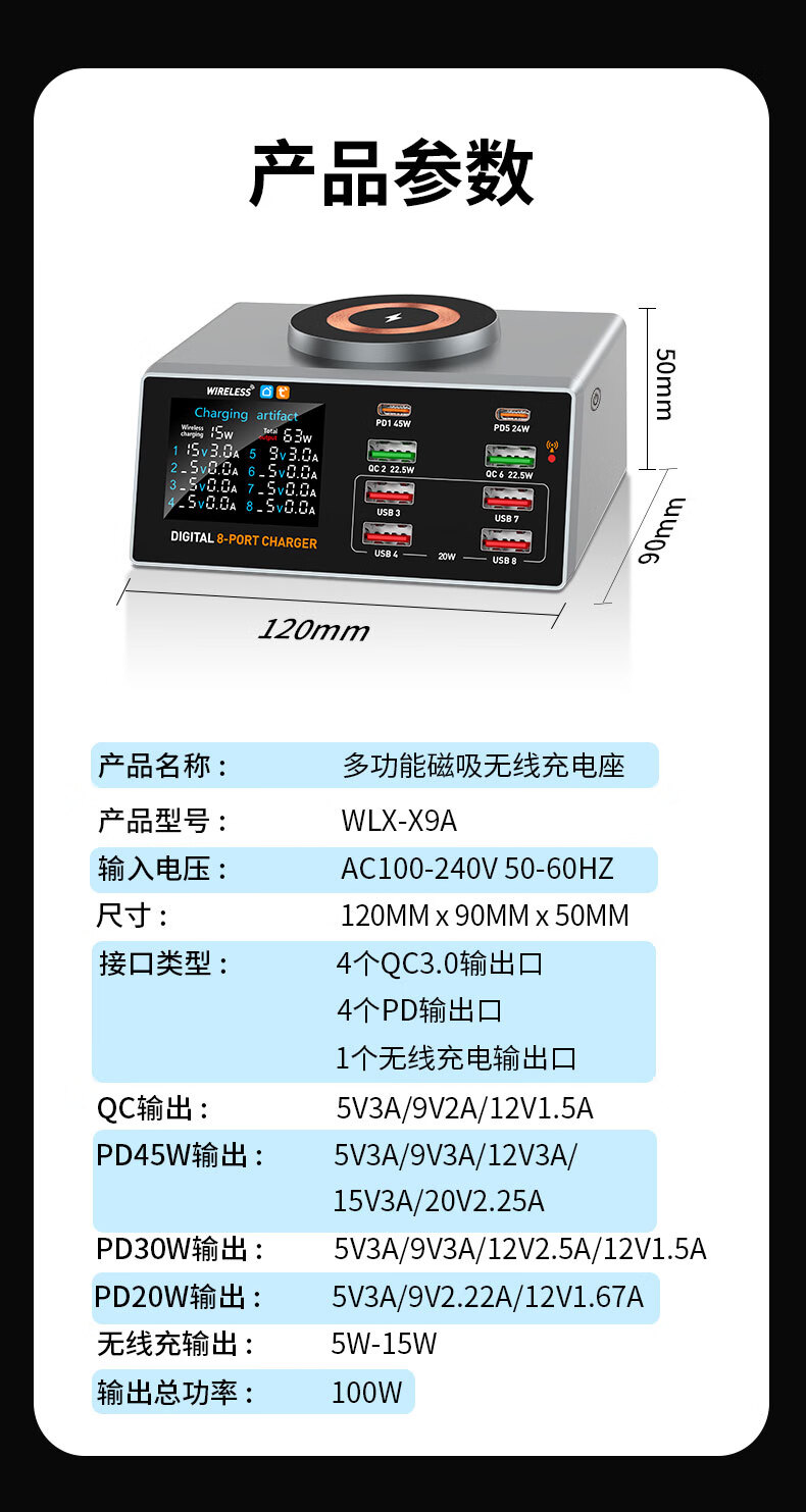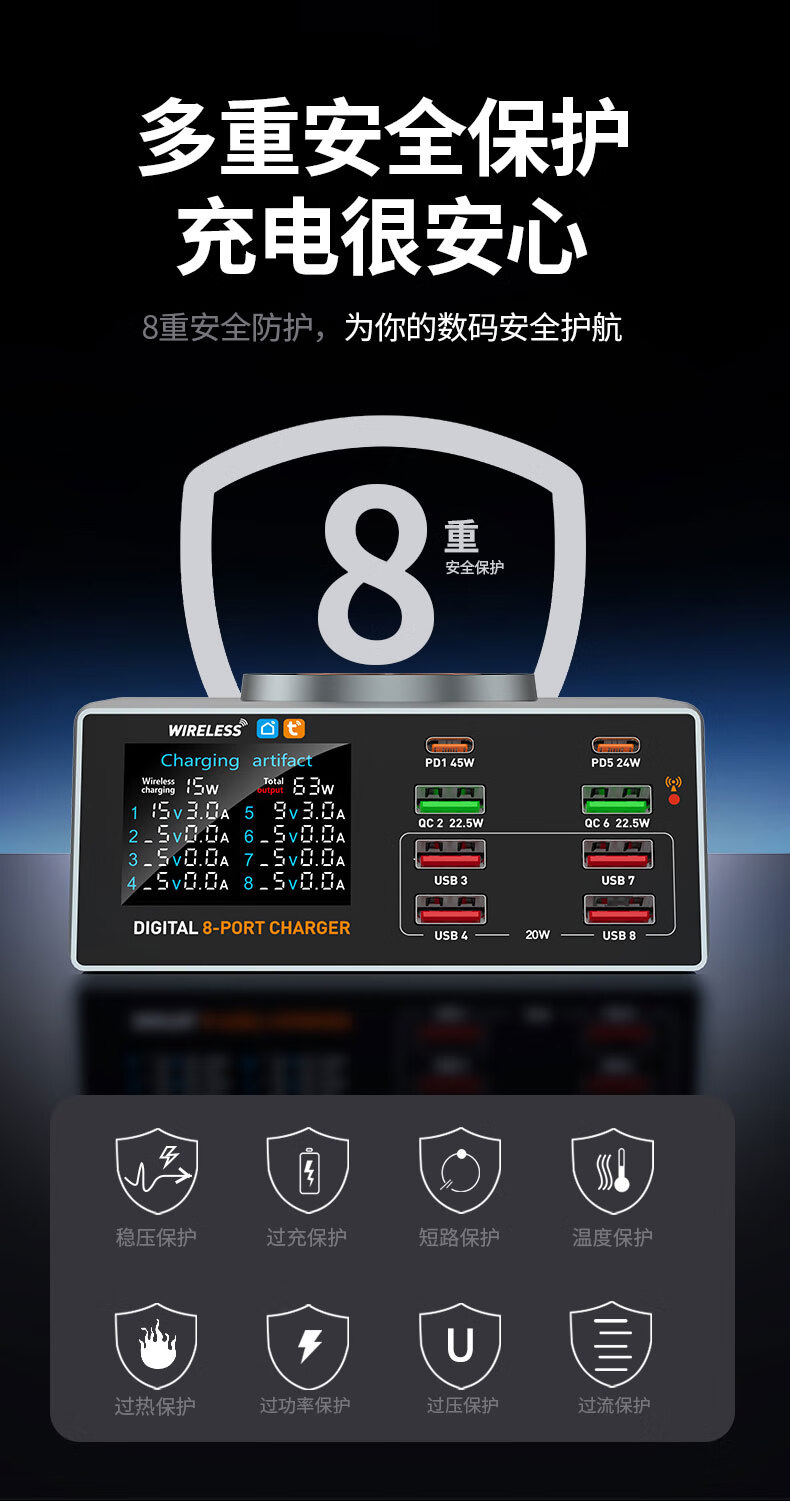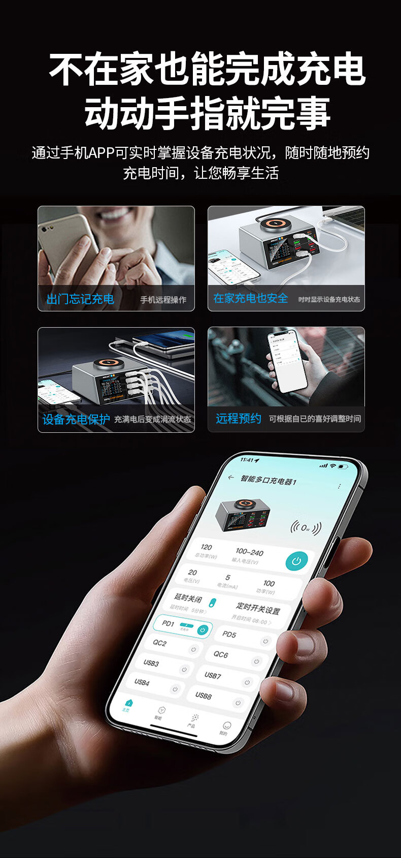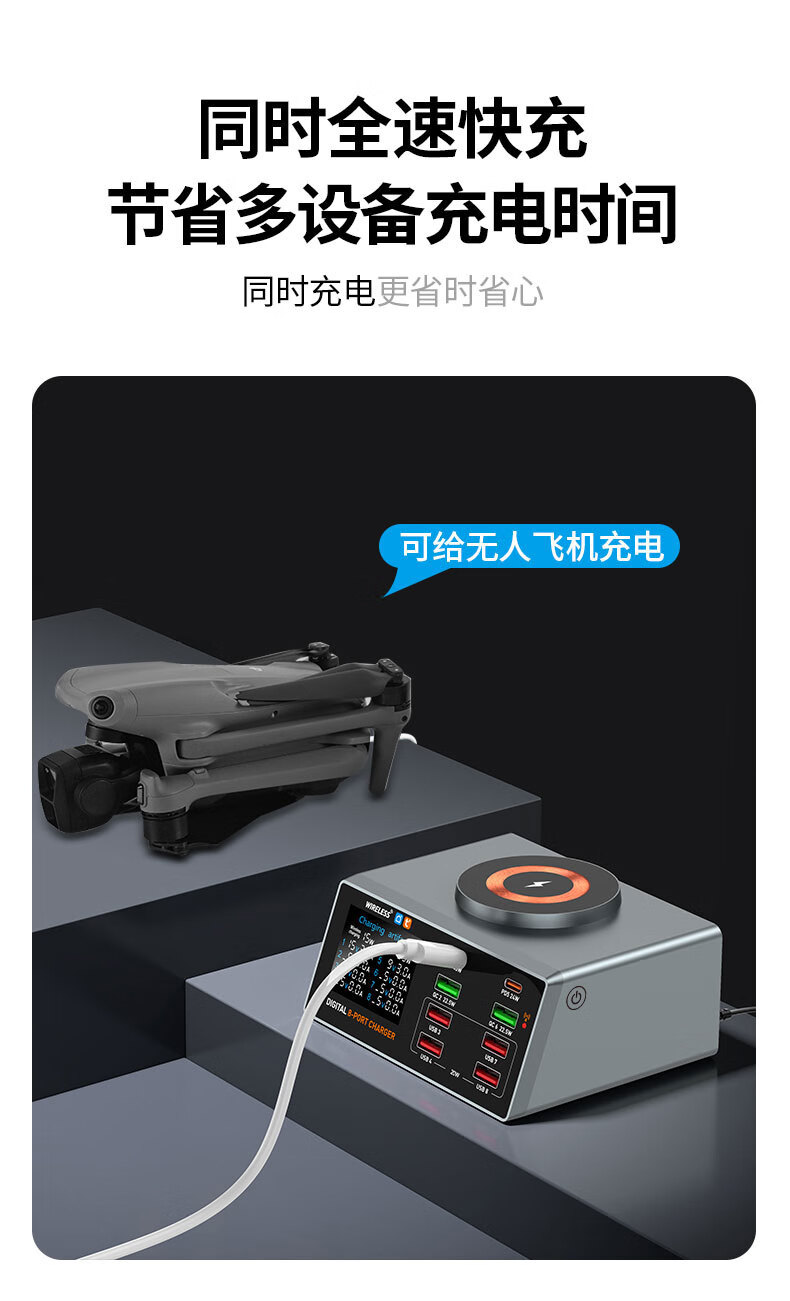 万隆欣桌面充电站多口usb快充PD100W大功率智能屏显闪充坞适用苹果华为手机笔记本通用插座 【APP控制款】充电器无线充磁吸定位【100W】