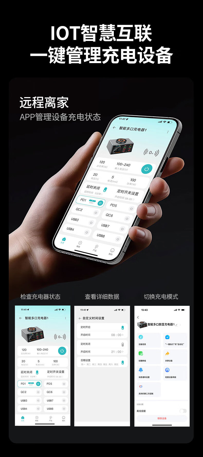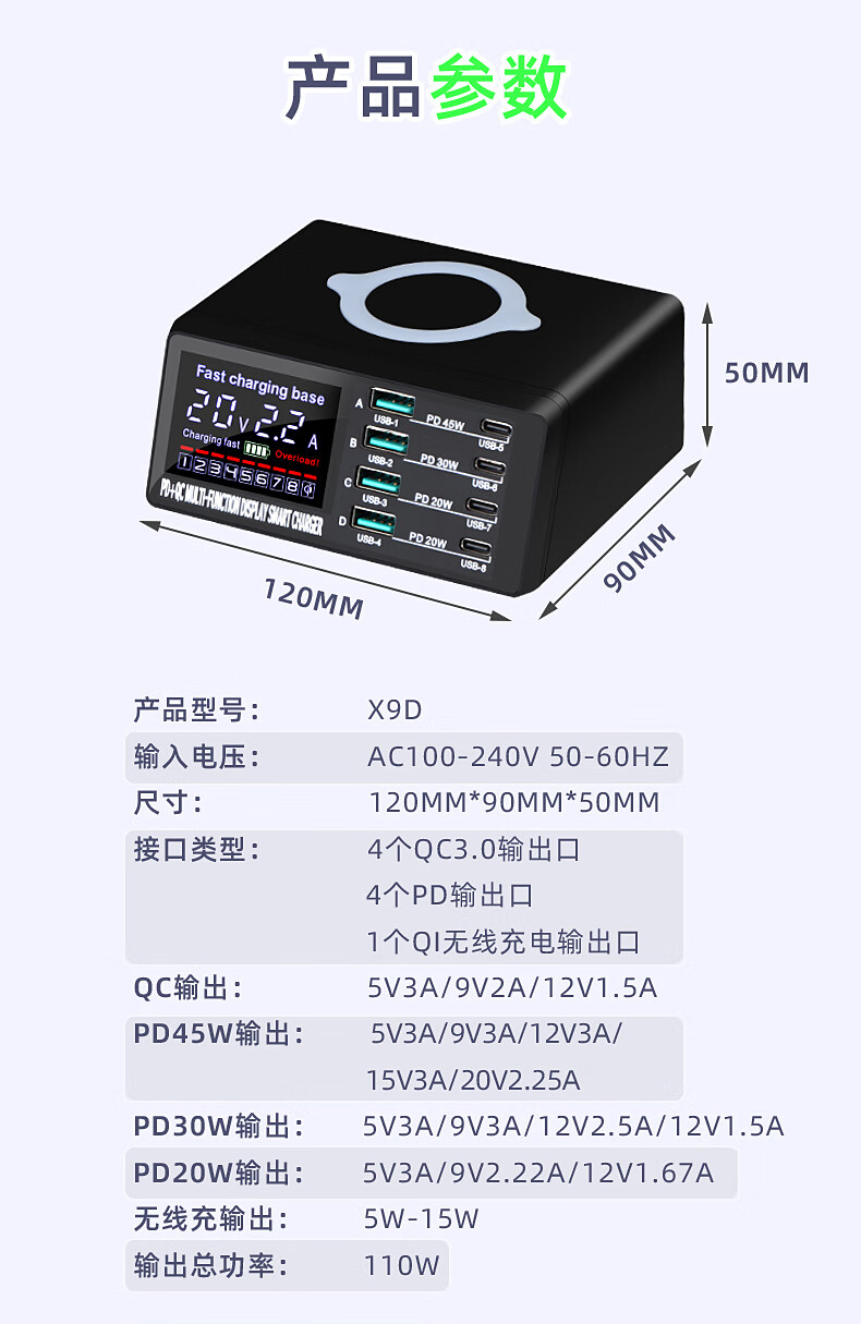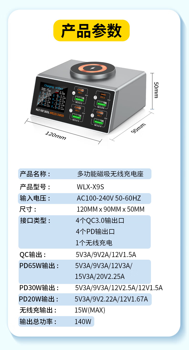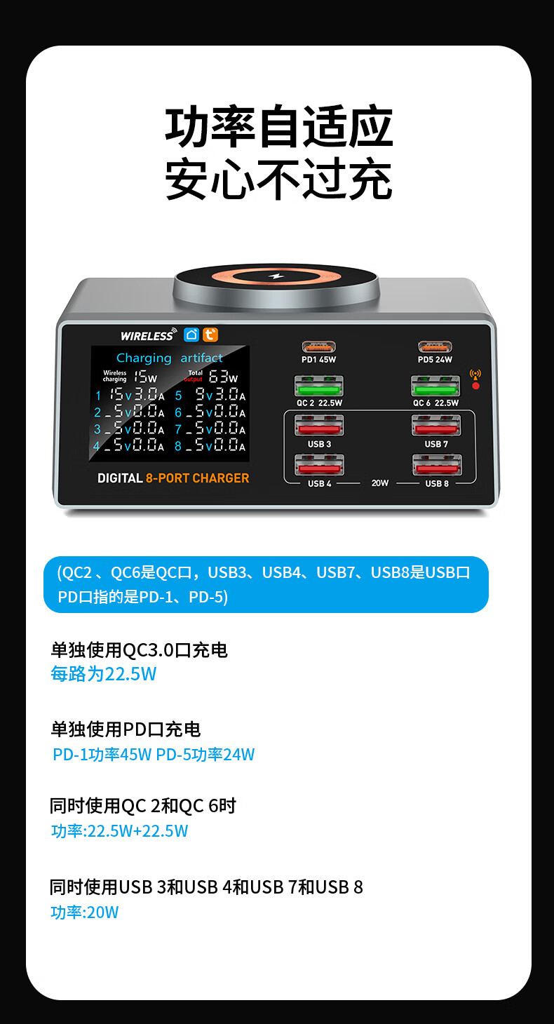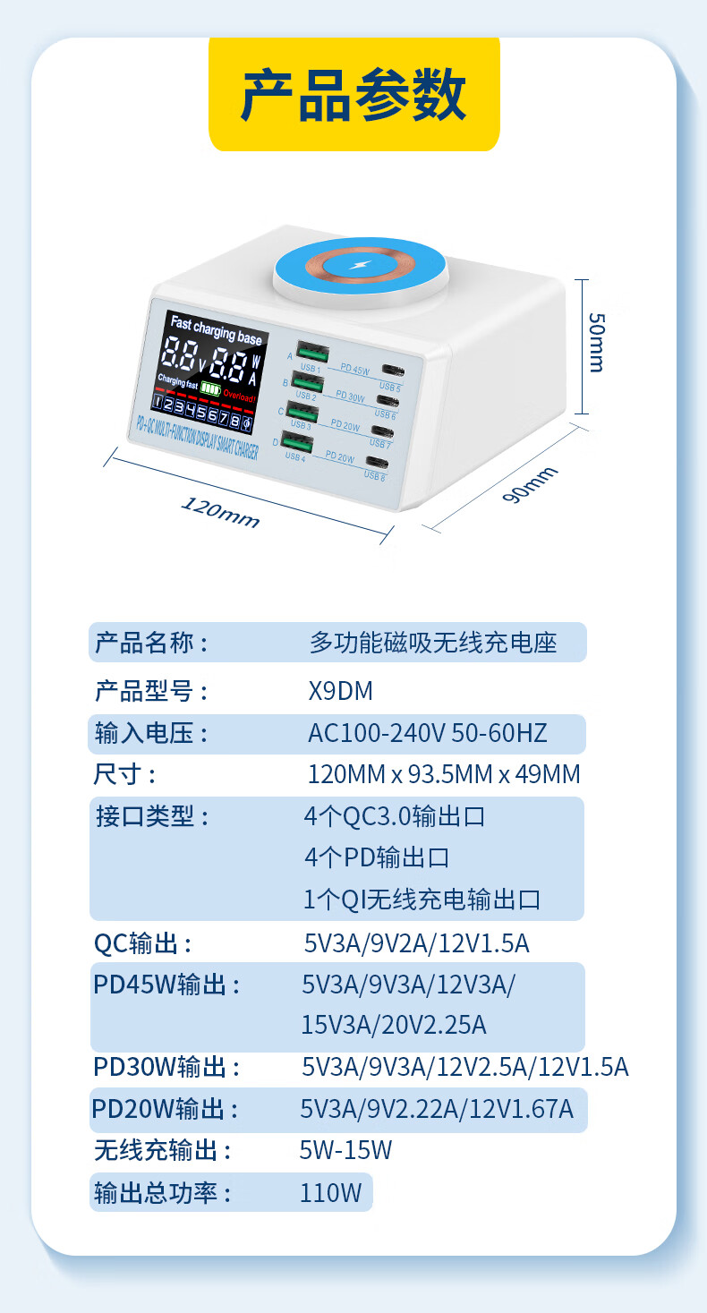 万隆欣桌面充电站多口usb快充PD100W大功率智能屏显闪充坞适用苹果华为手机笔记本通用插座 【APP控制款】充电器无线充磁吸定位【100W】