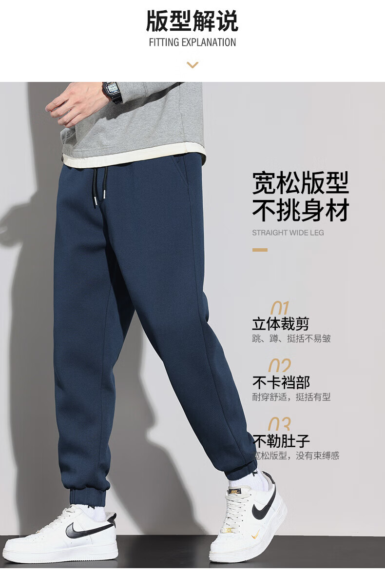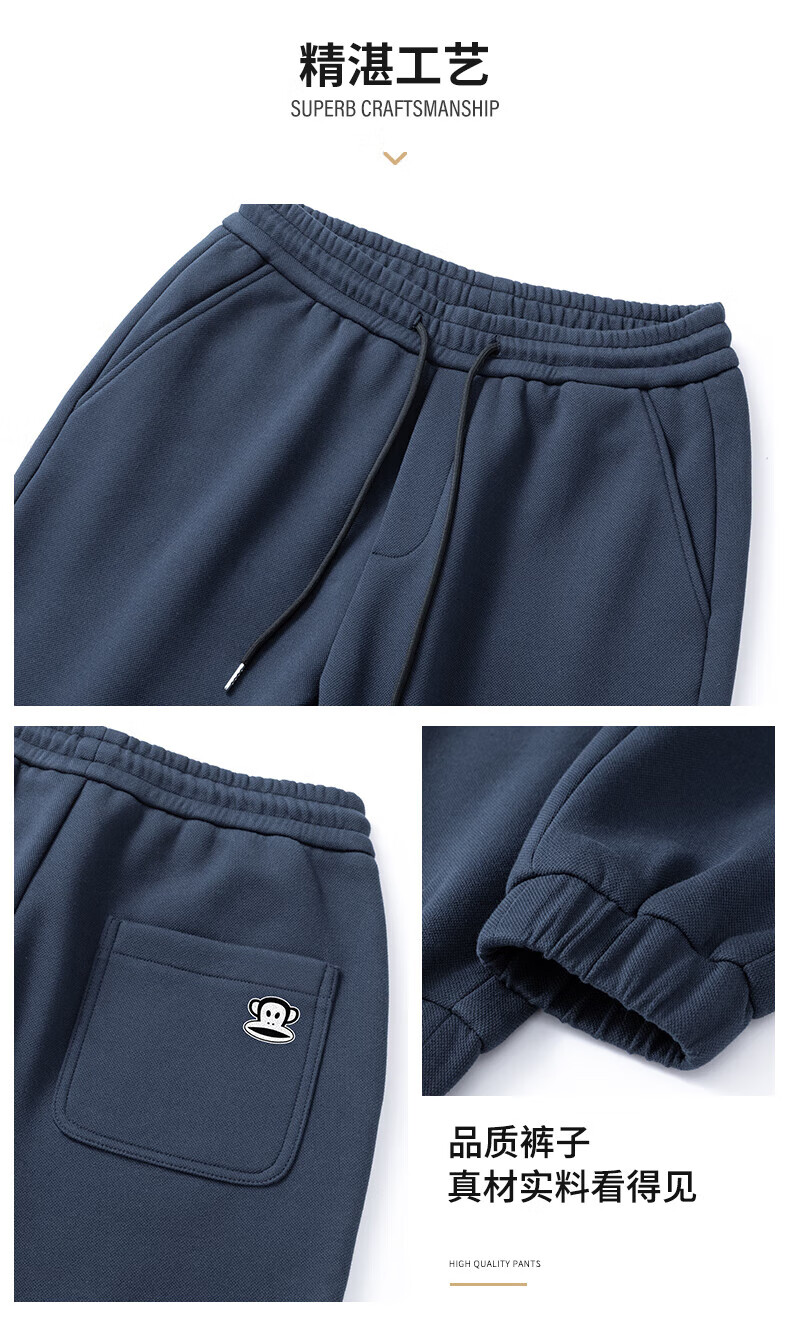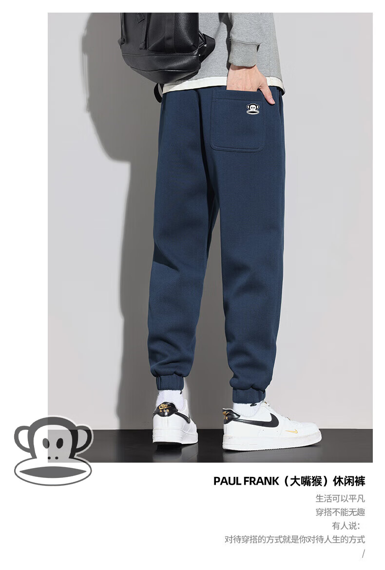 大嘴猴(paul frank)美式九分休闲裤男士秋春季宽松潮牌运动工作束脚卫裤高端裤子男装 藏青色【官方正品】 XL 【建议130-145斤】