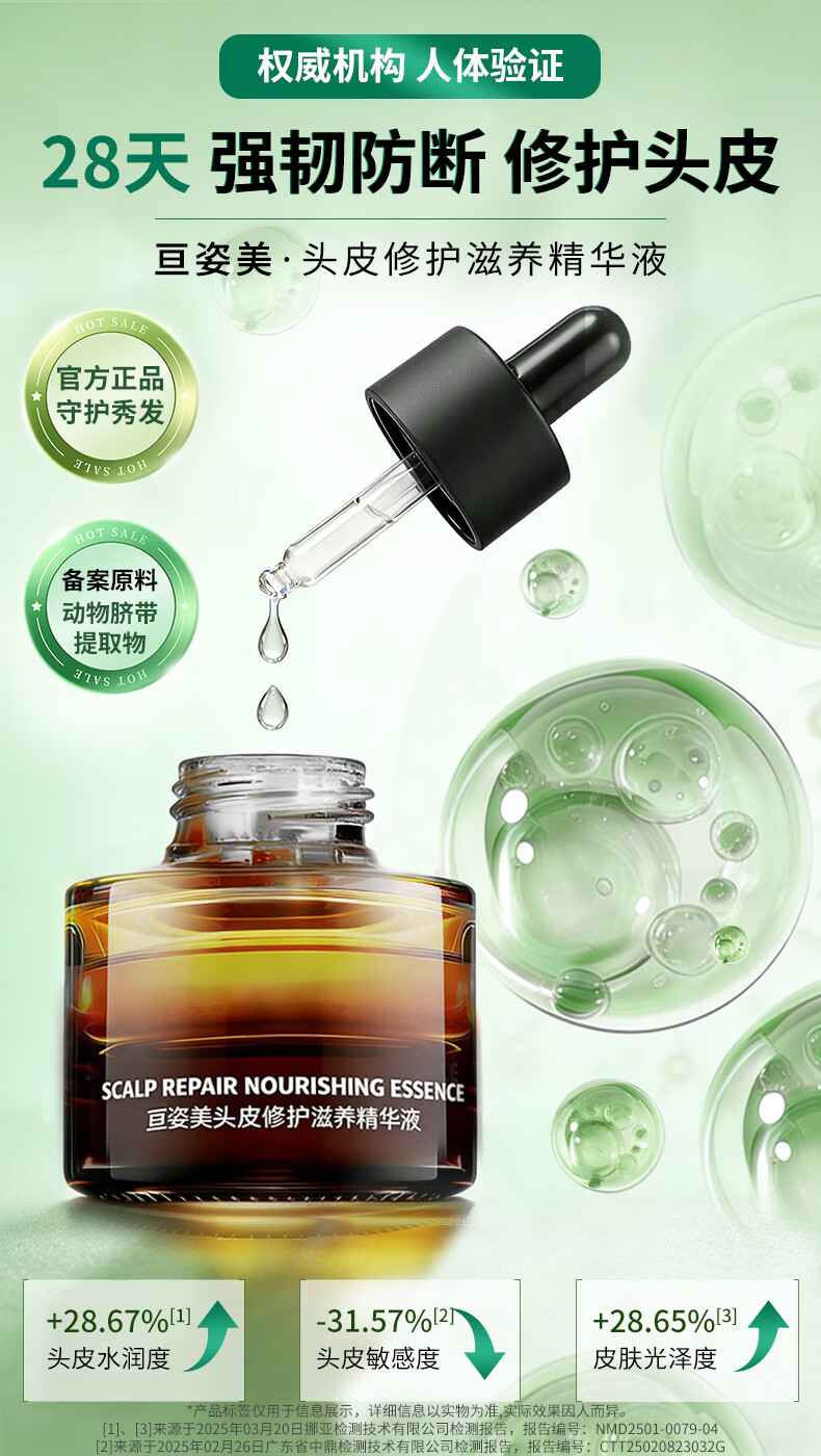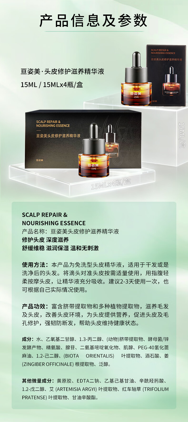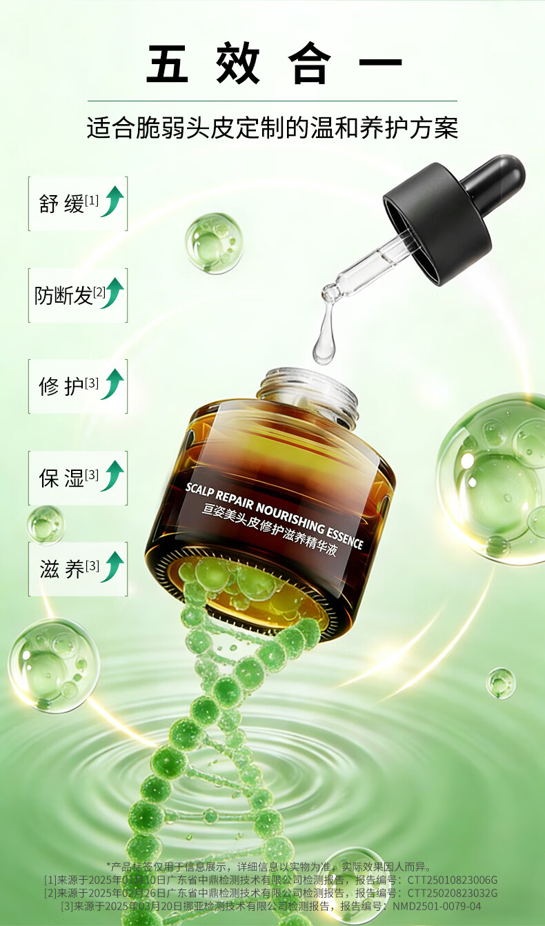 亘姿美头皮营养液保湿精华液温和修护防断滋养头发舒缓头皮干燥补水精华 15ml头皮精华液 1瓶2周用量:清爽体验/质地感知
