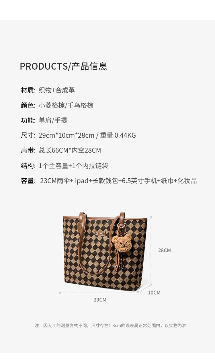 奥康(Aokang)包包女包托特单肩包经典复古斜挎包手提包生日礼物高级感实用 艺术拼贴咖啡色BG703175