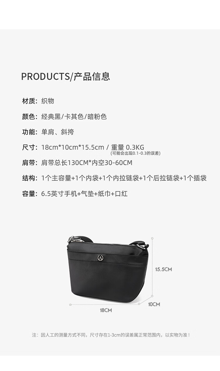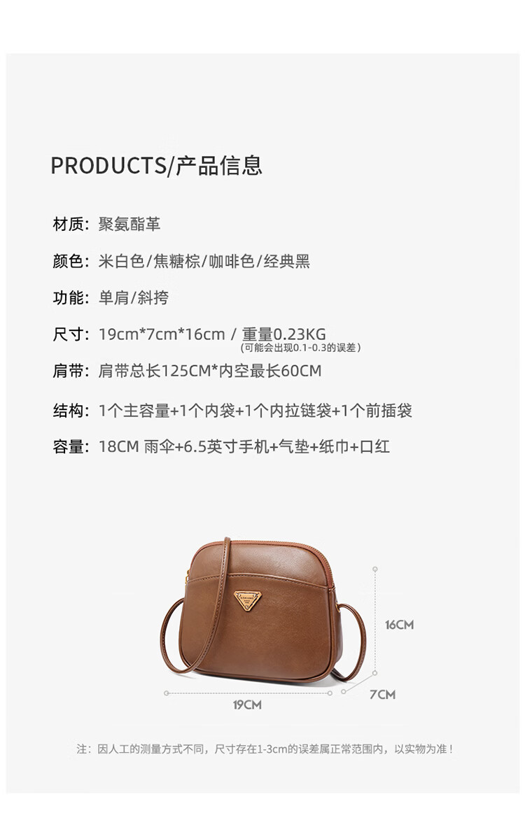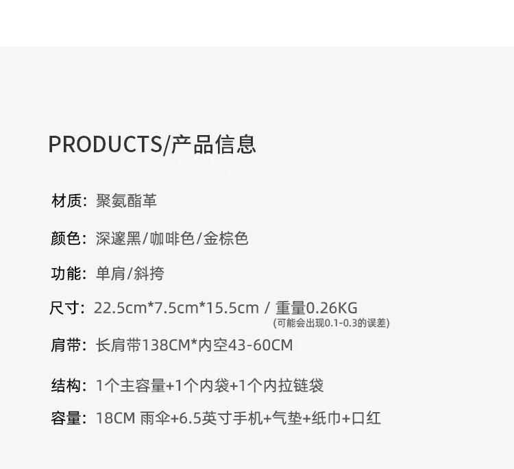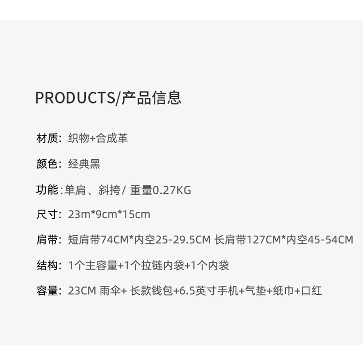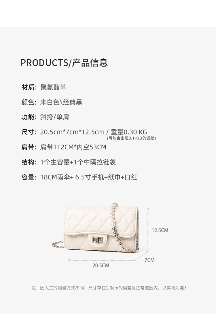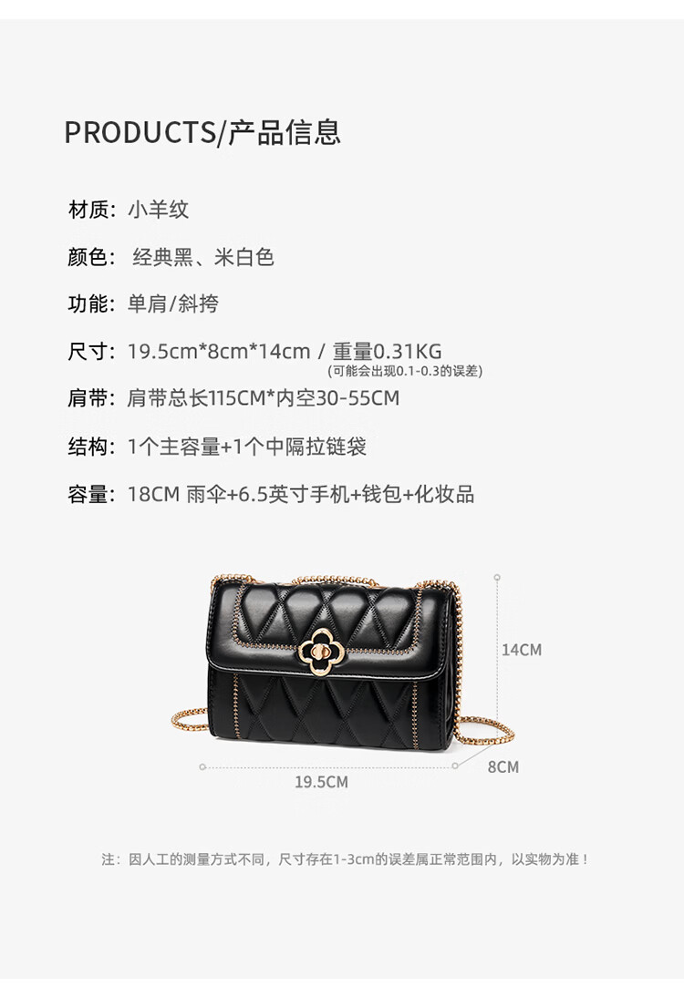 Polene波灵恩Beri 黑色荔枝牛皮(链条款)手提斜挎包 黑色(链条款)