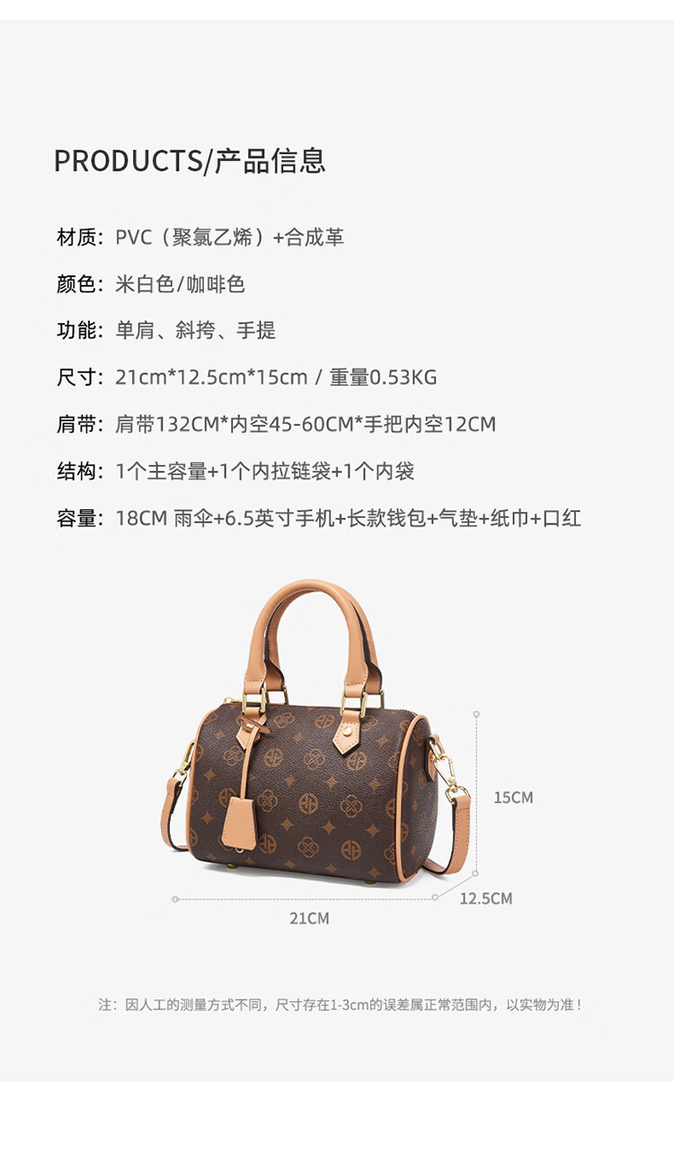 Polene波灵恩【新品】Cyme Mini 荔枝牛皮手提单肩托特包 栗色